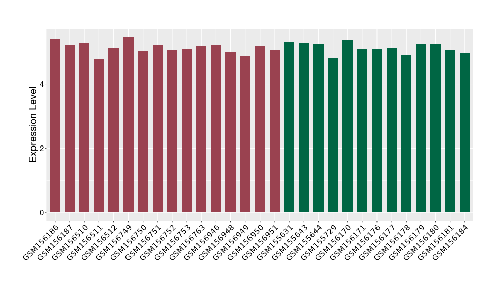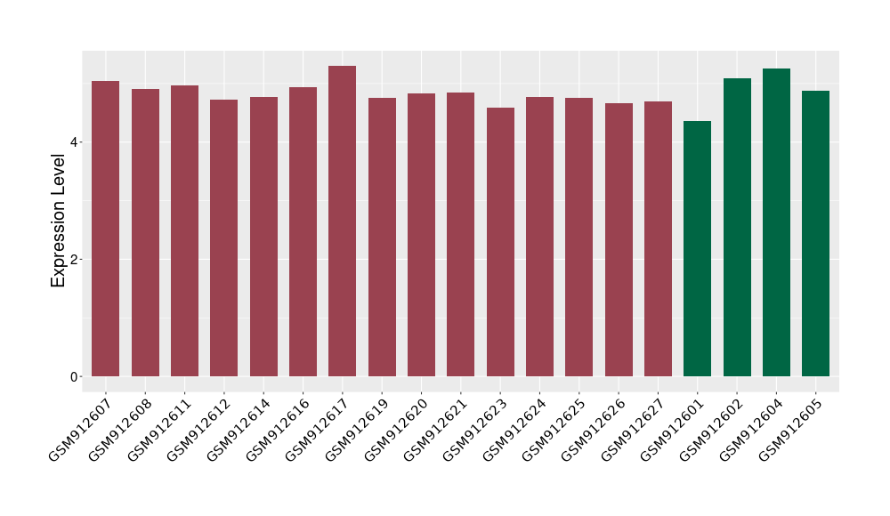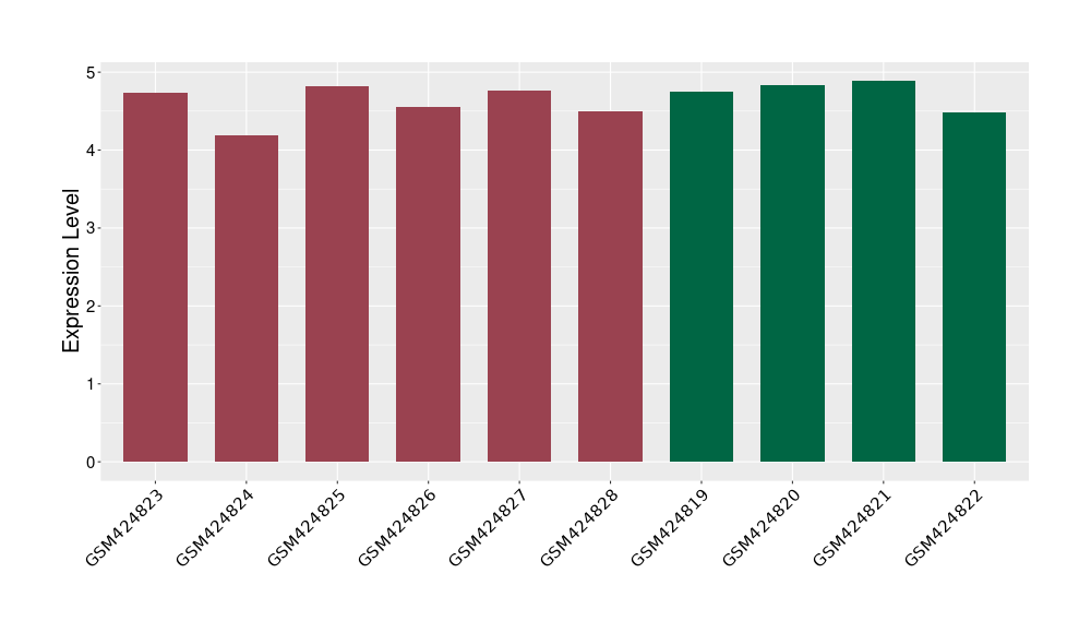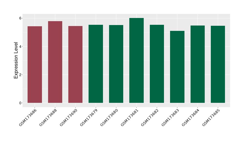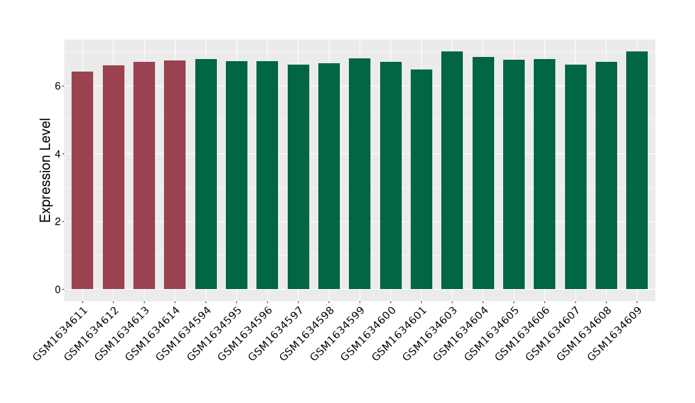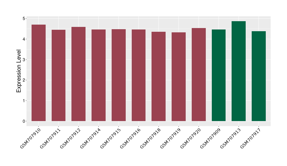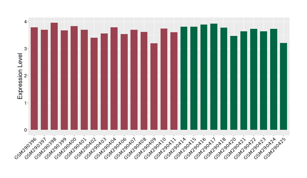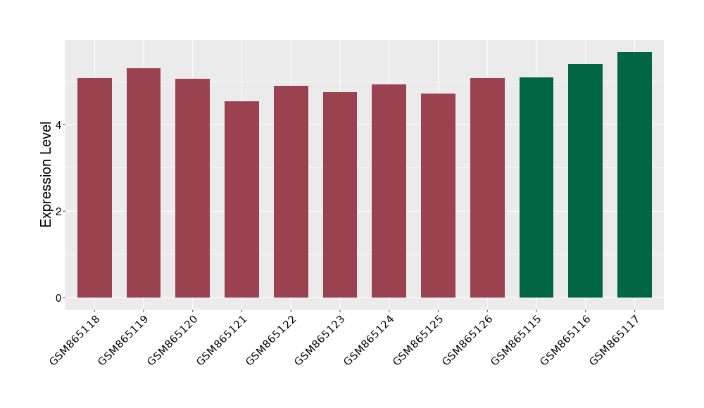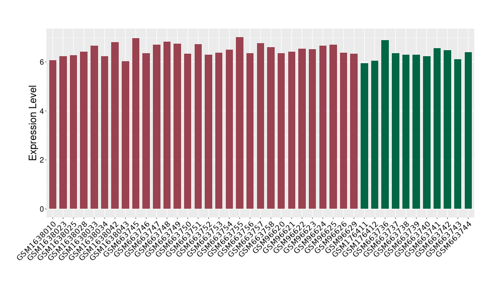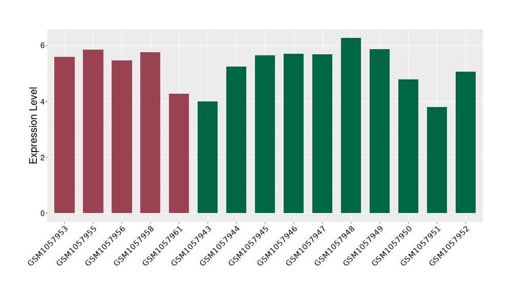 The Expression Level of Disease Section Compare with the Healthy Individual Tissue | p-value:0.11428374; Fold-change:-0.0911083; Z-score:-0.303960483 | ||||