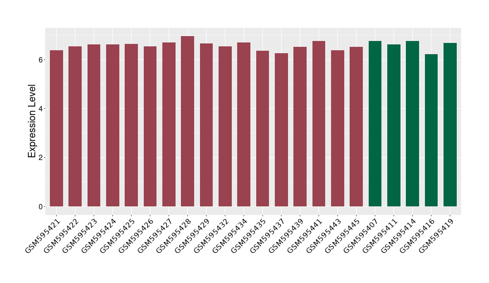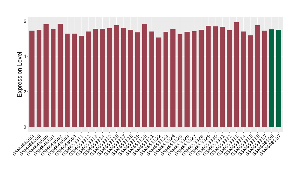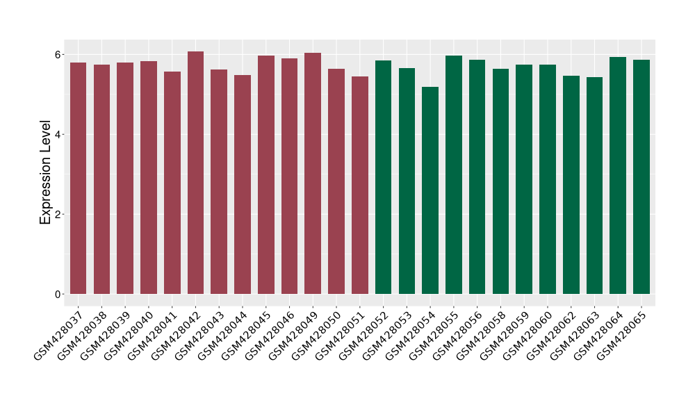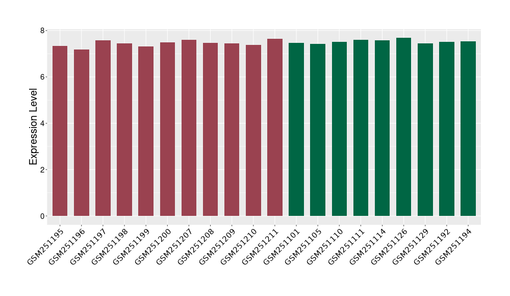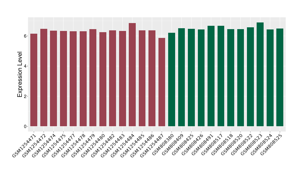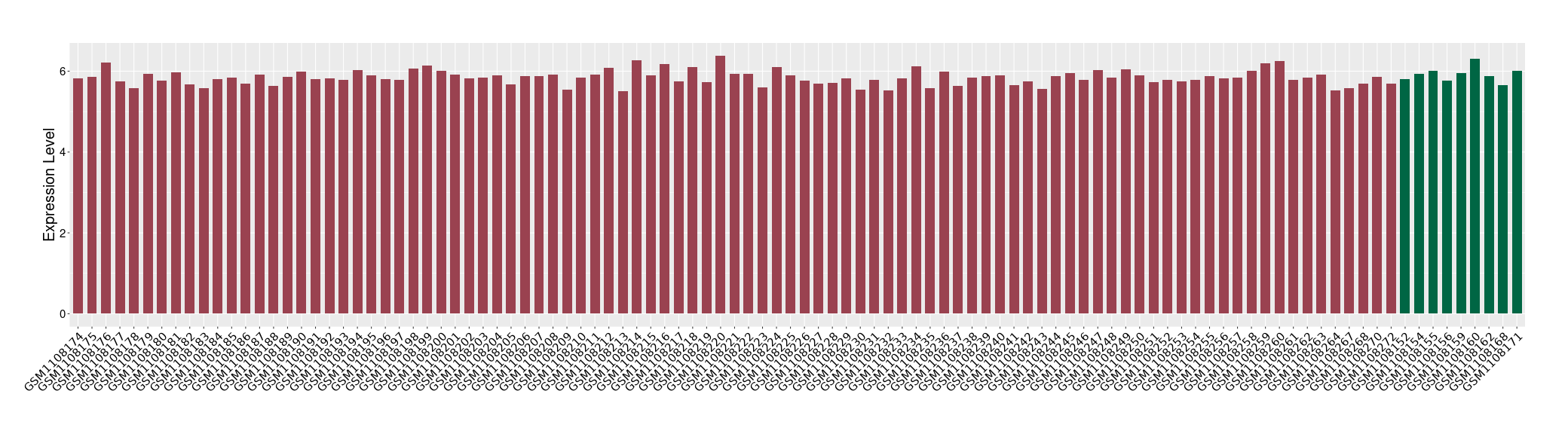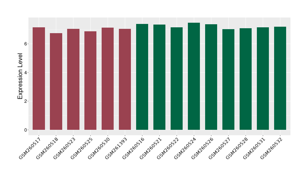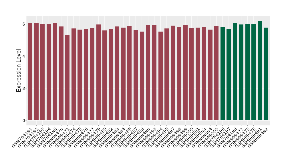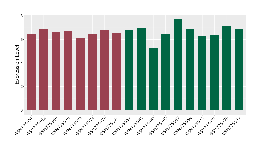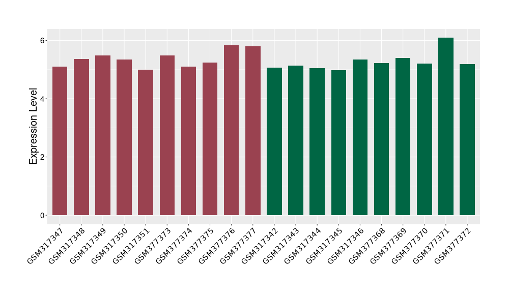The Expression Level of Disease Section Compare with the Healthy Individual Tissue | p-value:0.11428374; Fold-change:-0.0911083; Z-score:-0.303960483 | ||||