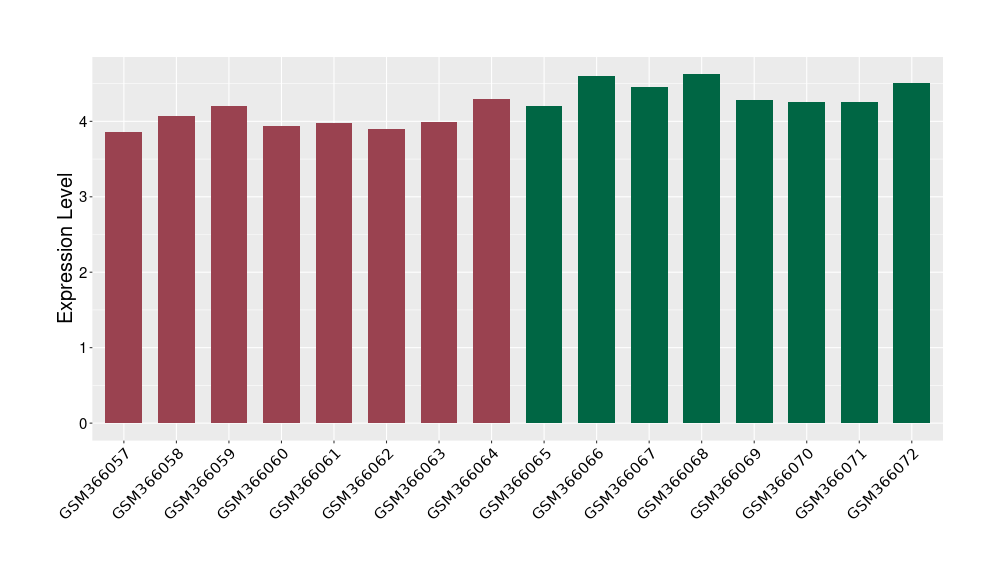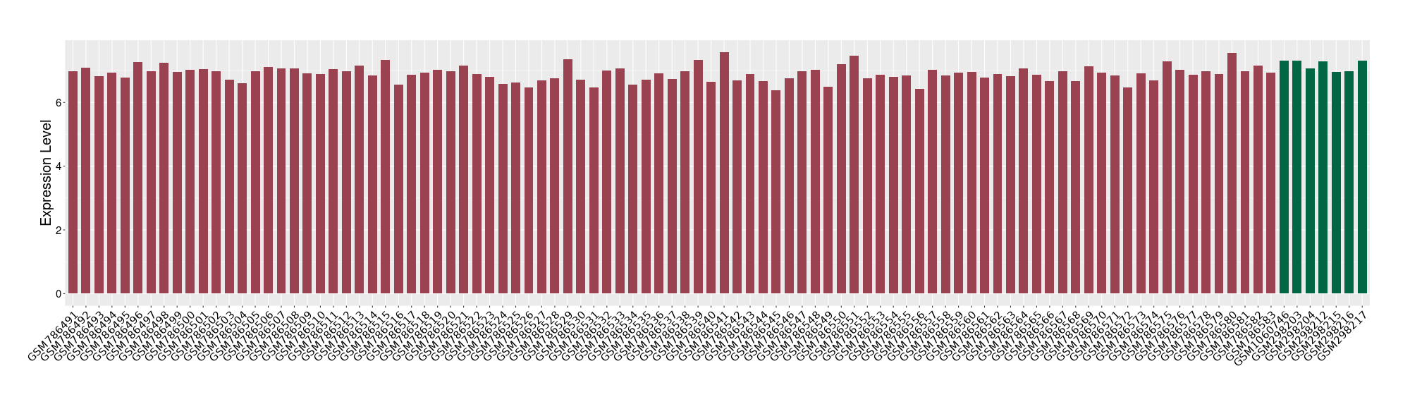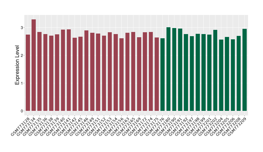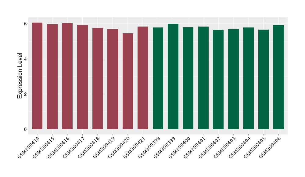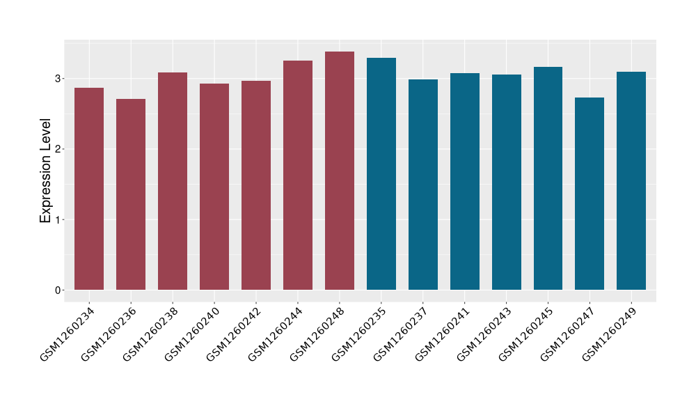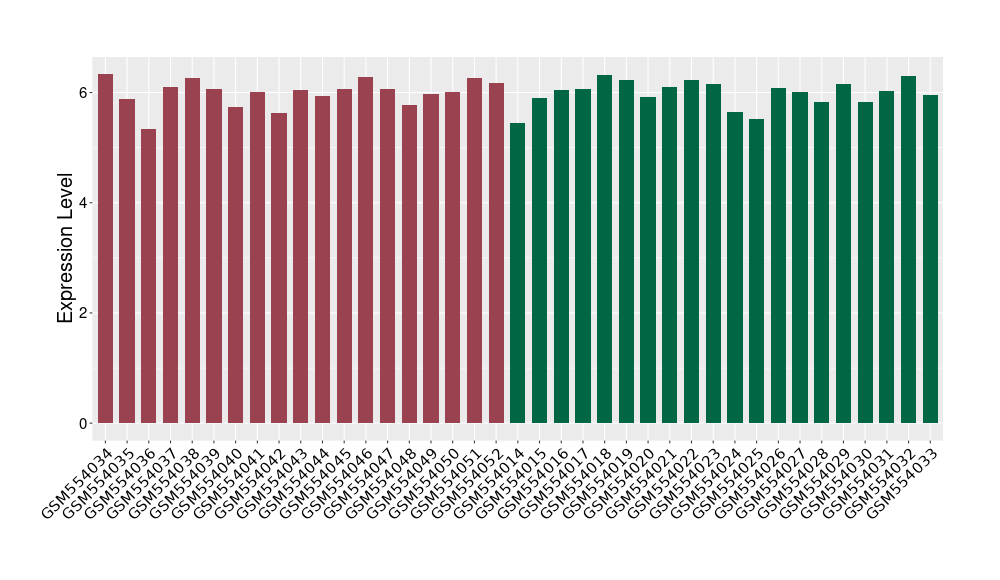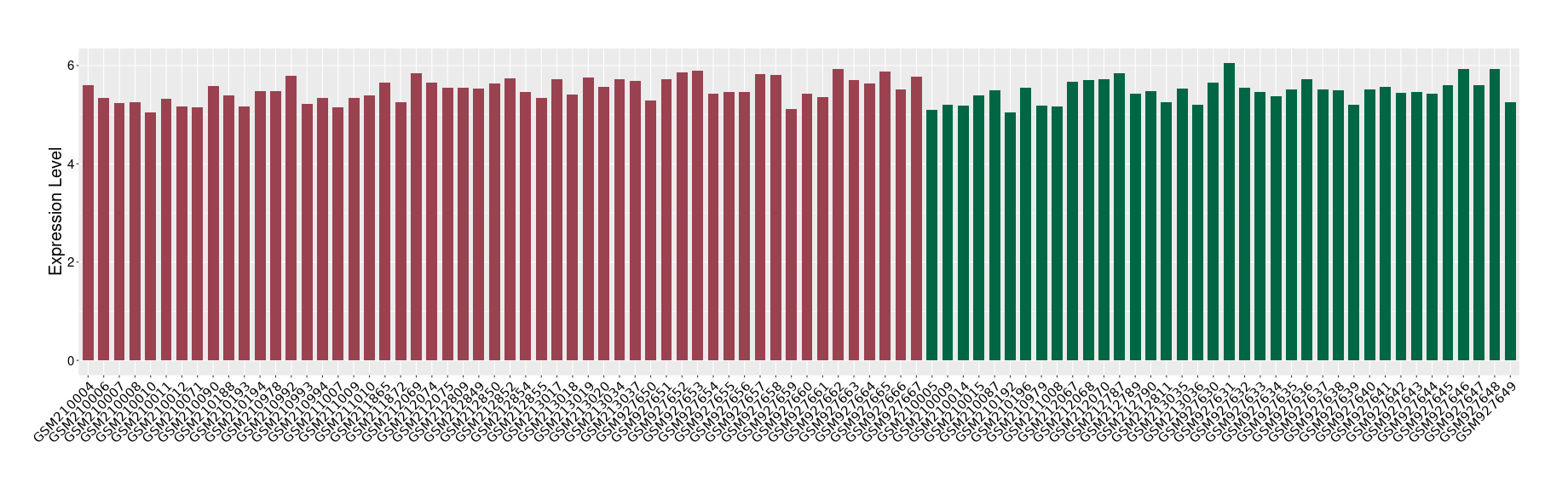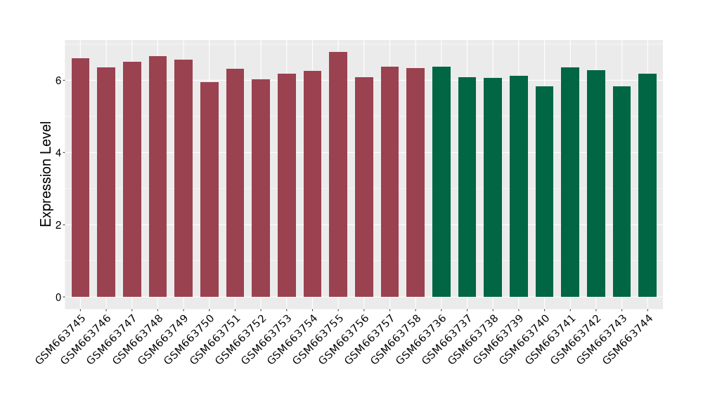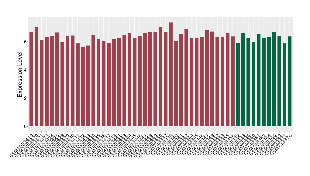 The Expression Level of Disease Section Compare with the Healthy Individual Tissue | p-value:0.11428374; Fold-change:-0.0911083; Z-score:-0.303960483 | ||||