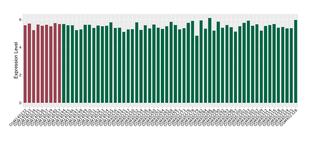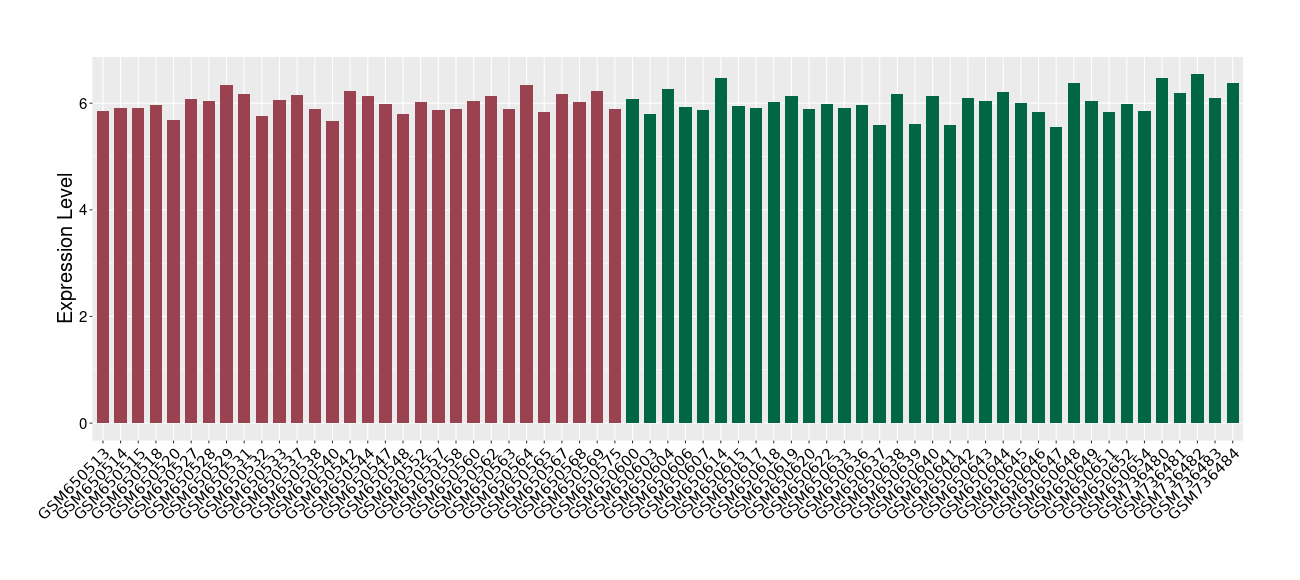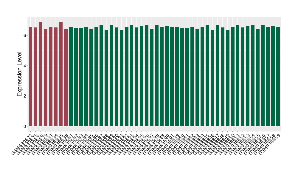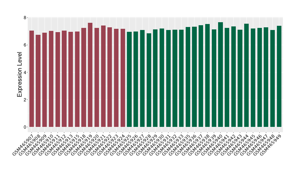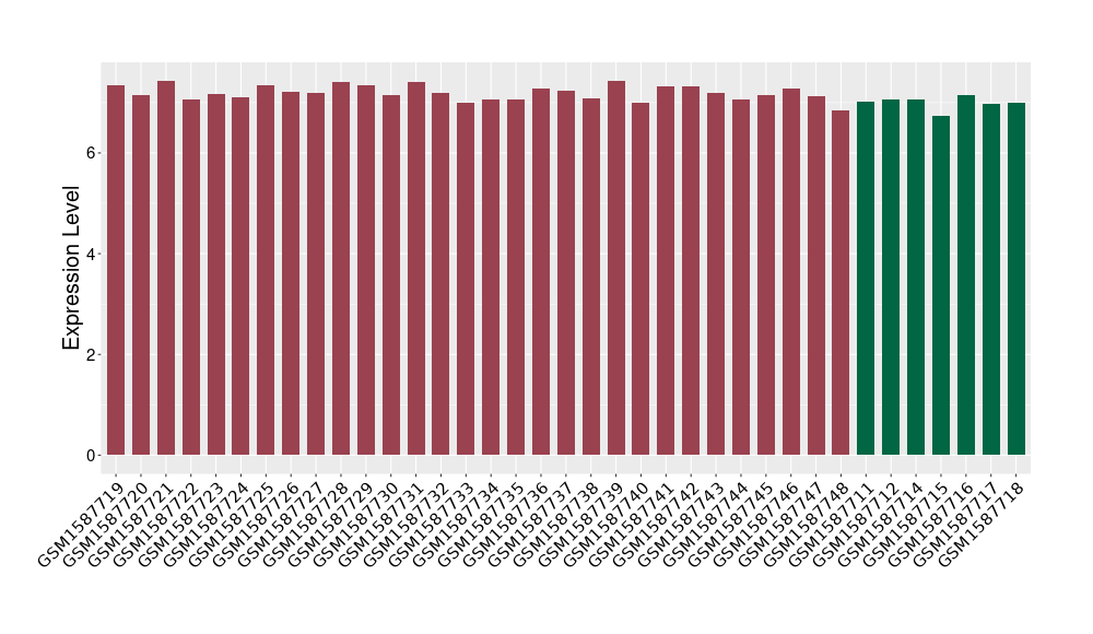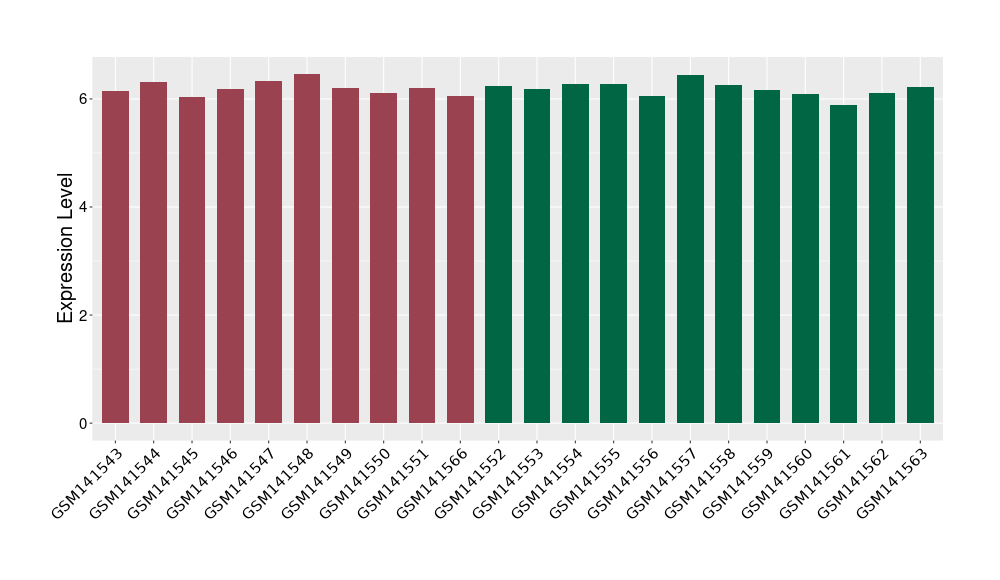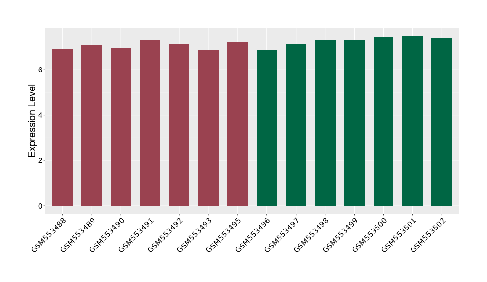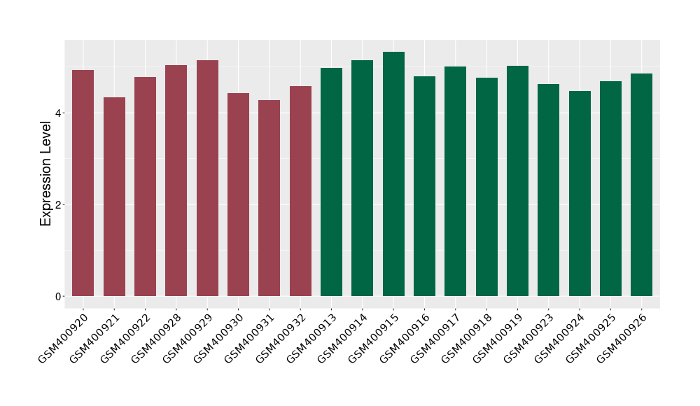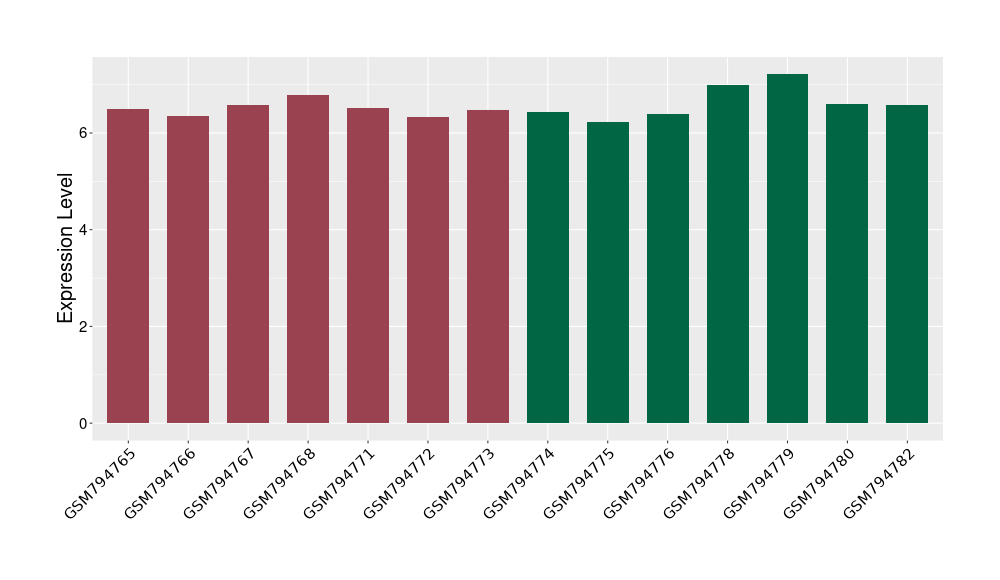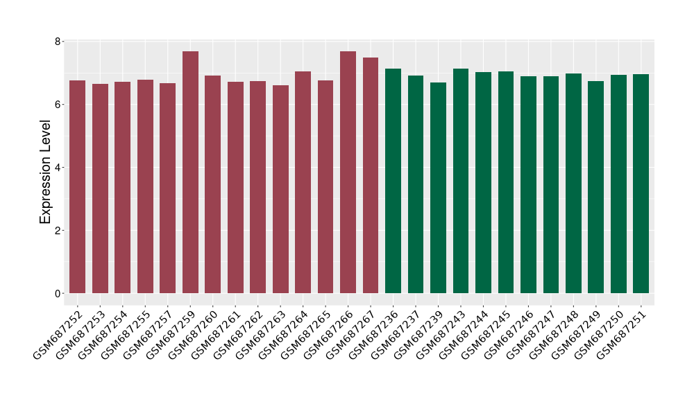 The Expression Level of Disease Section Compare with the Healthy Individual Tissue | p-value:0.11428374; Fold-change:-0.0911083; Z-score:-0.303960483 | ||||