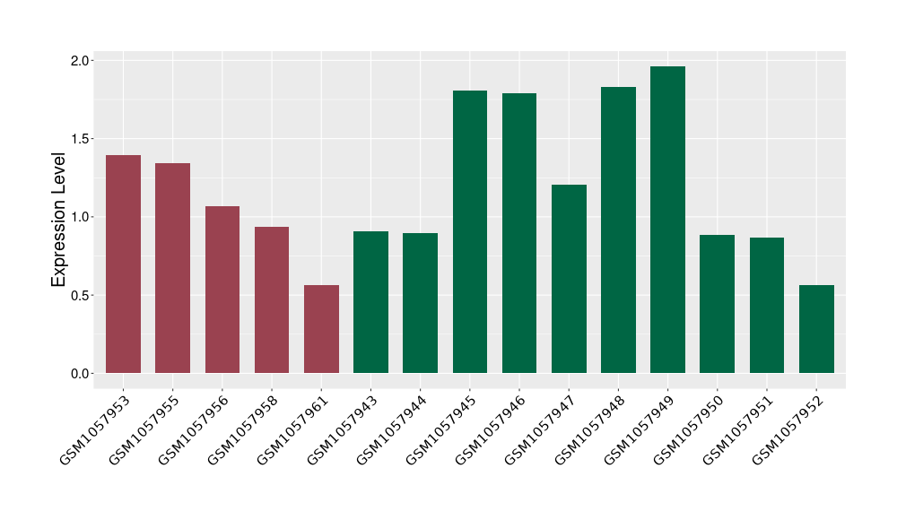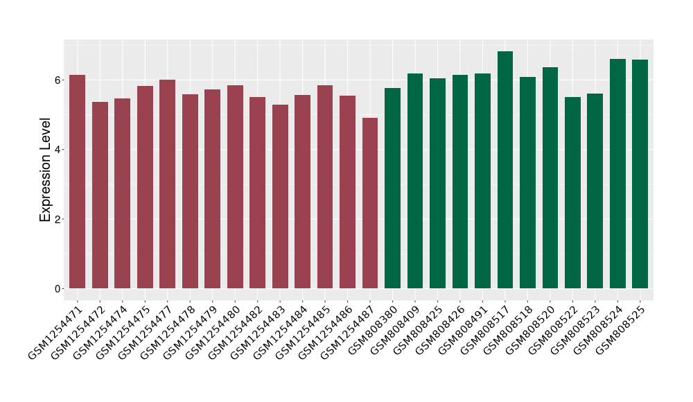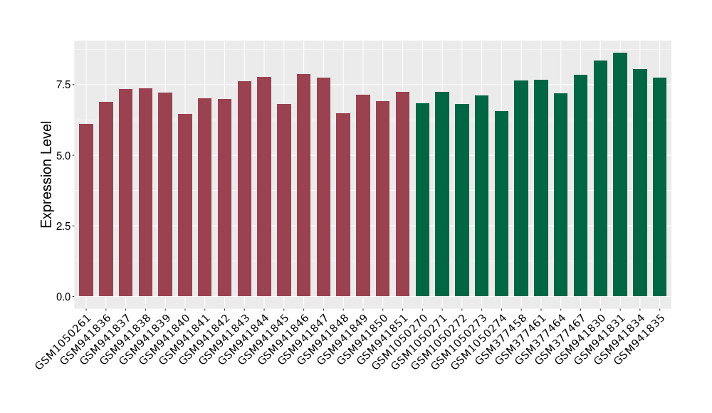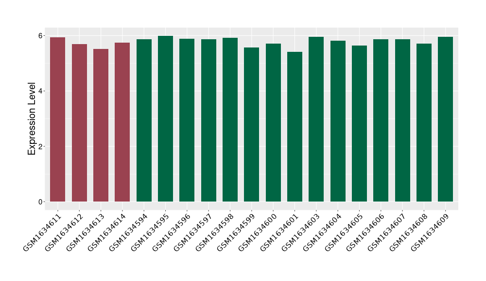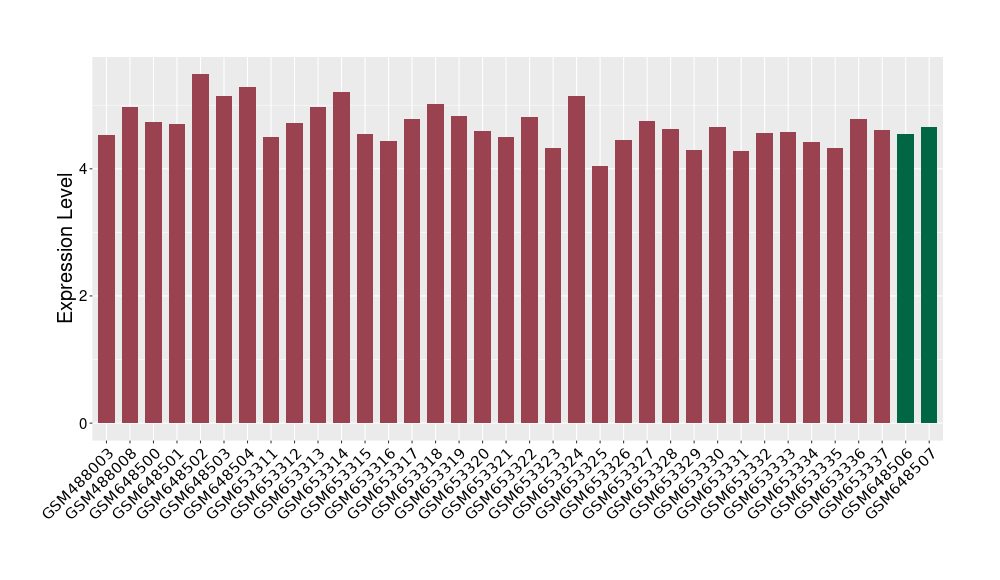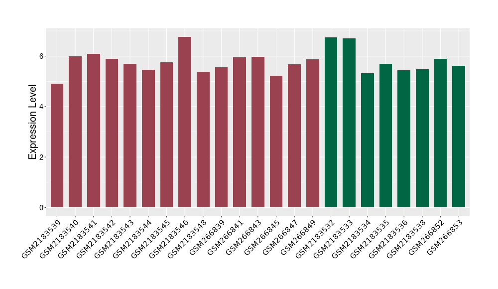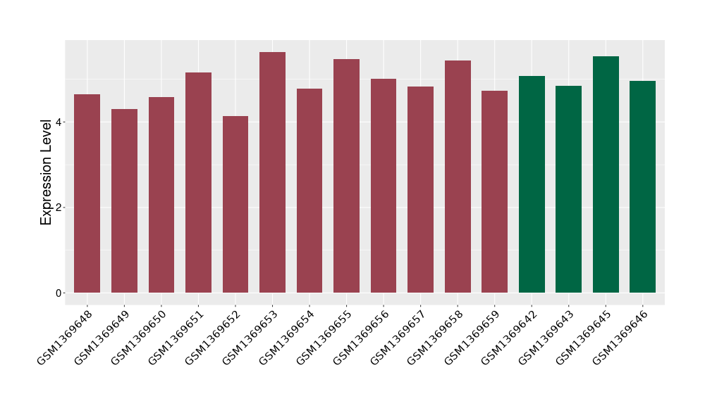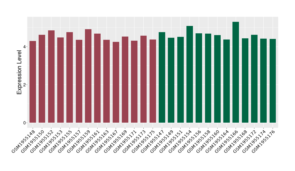 The Expression Level of Disease Section Compare with the Healthy Individual Tissue | p-value:0.02246652; Fold-change:-0.46758813; Z-score:-1.825958928 | ||||