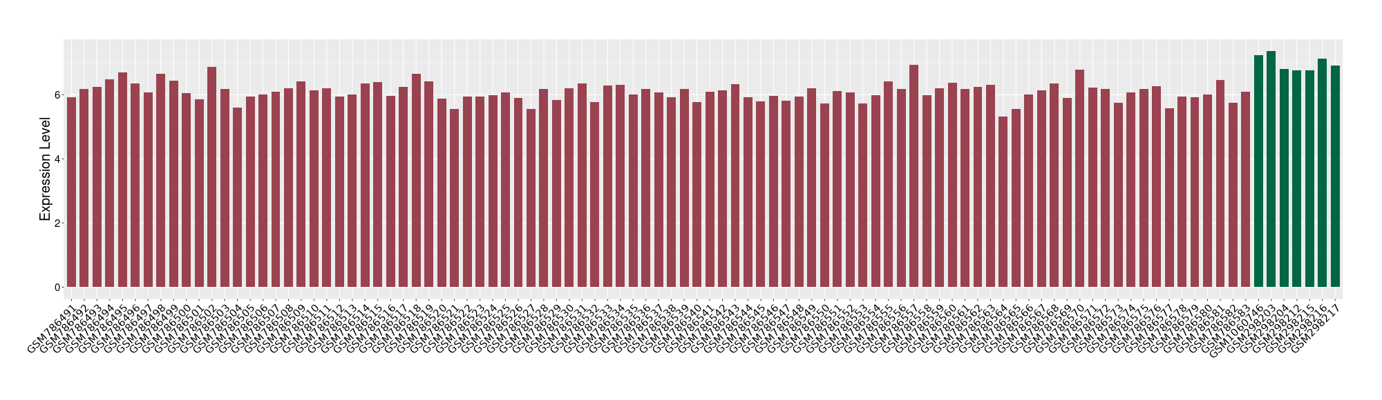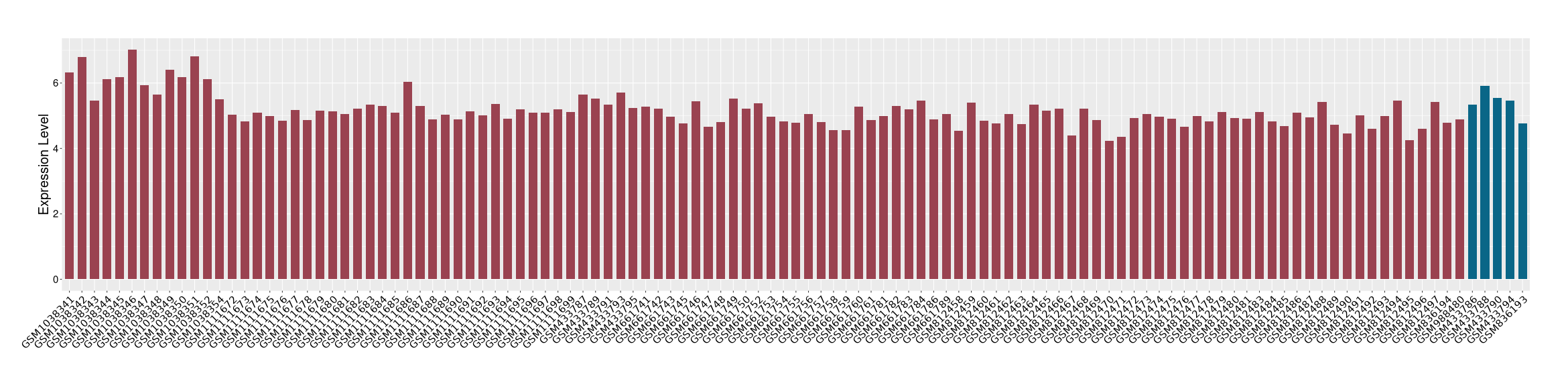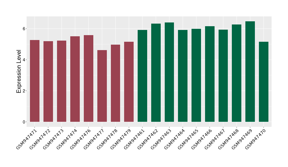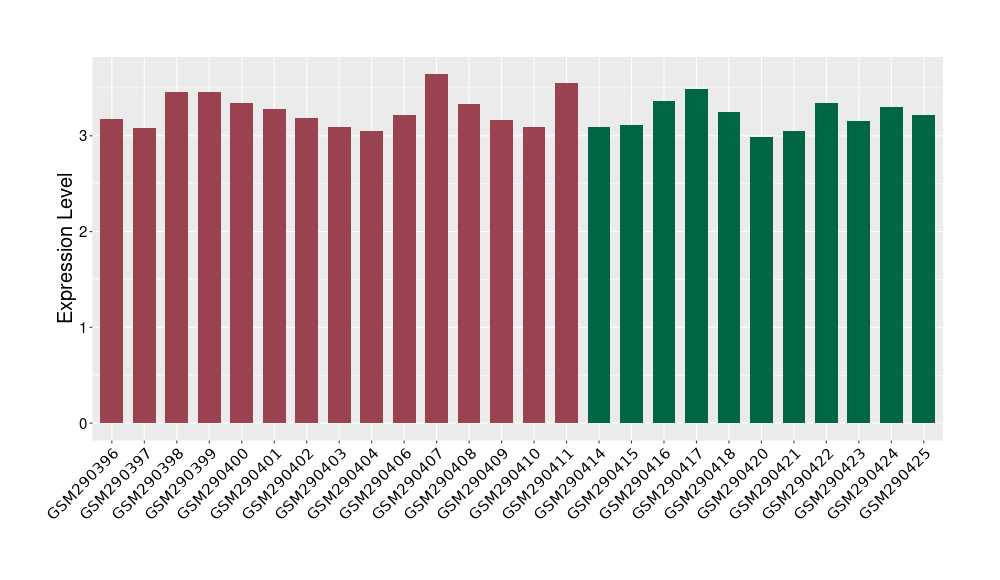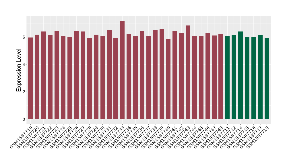 The Expression Level of Disease Section Compare with the Healthy Individual Tissue | p-value:0.02246652; Fold-change:-0.46758813; Z-score:-1.825958928 | ||||