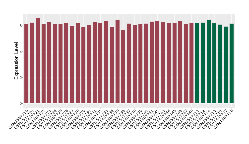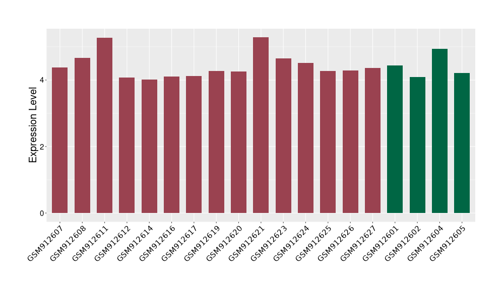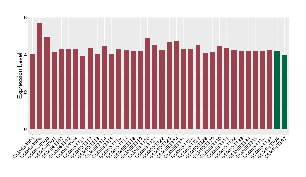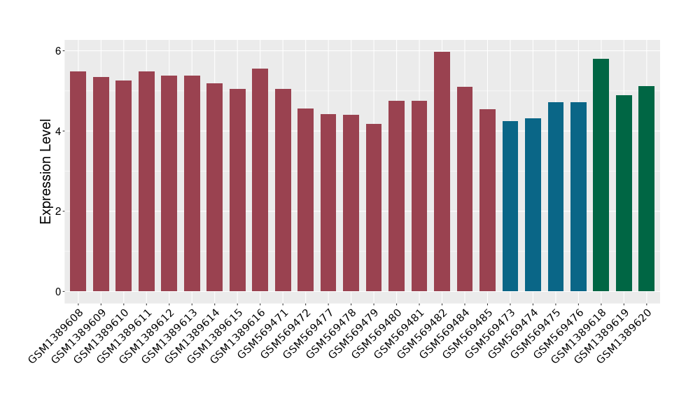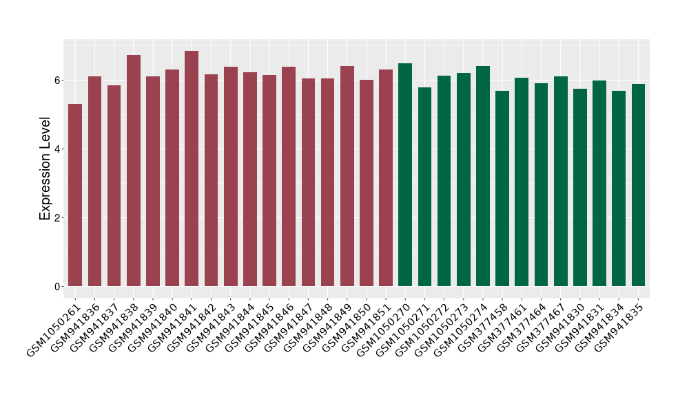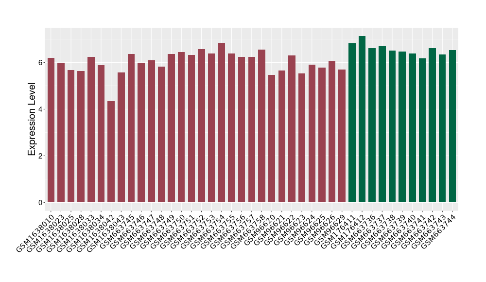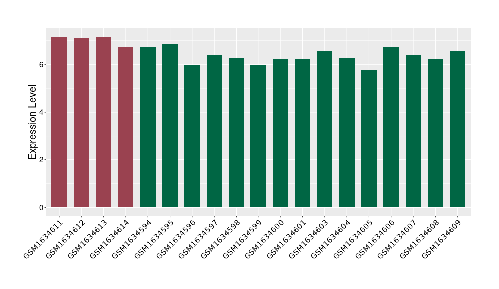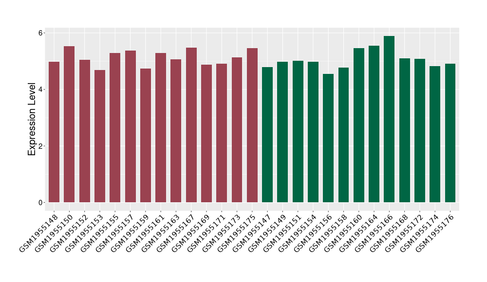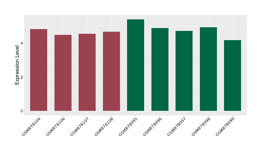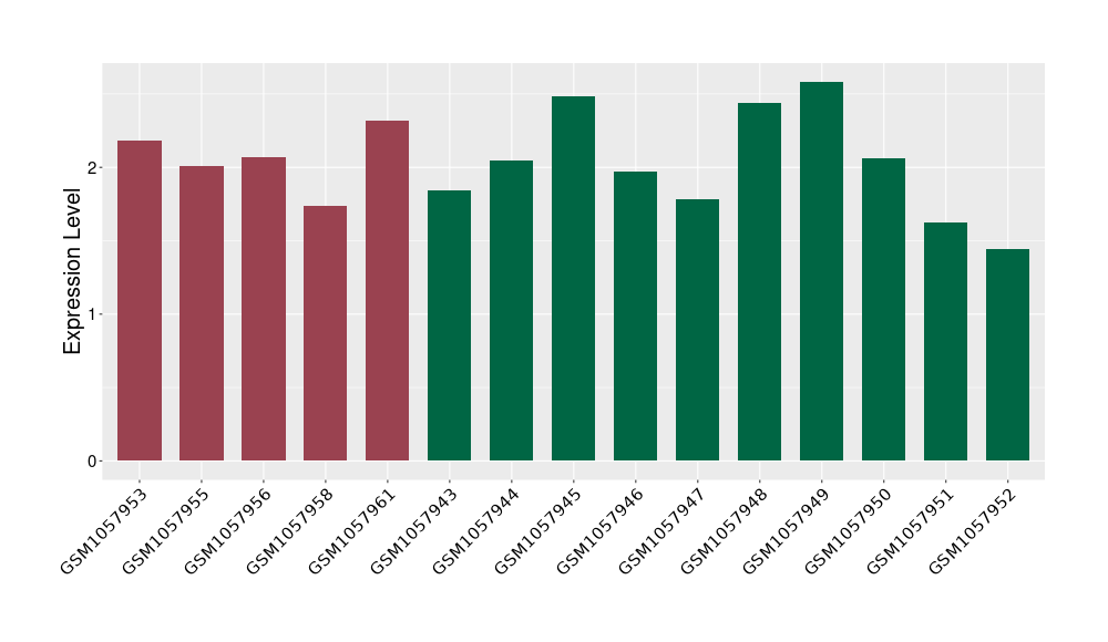 The Expression Level of Disease Section Compare with the Healthy Individual Tissue | p-value:0.009143956; Fold-change:0.252529344; Z-score:1.946448141 | ||||