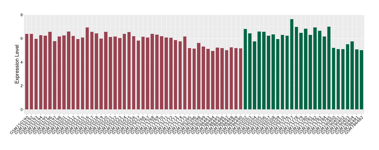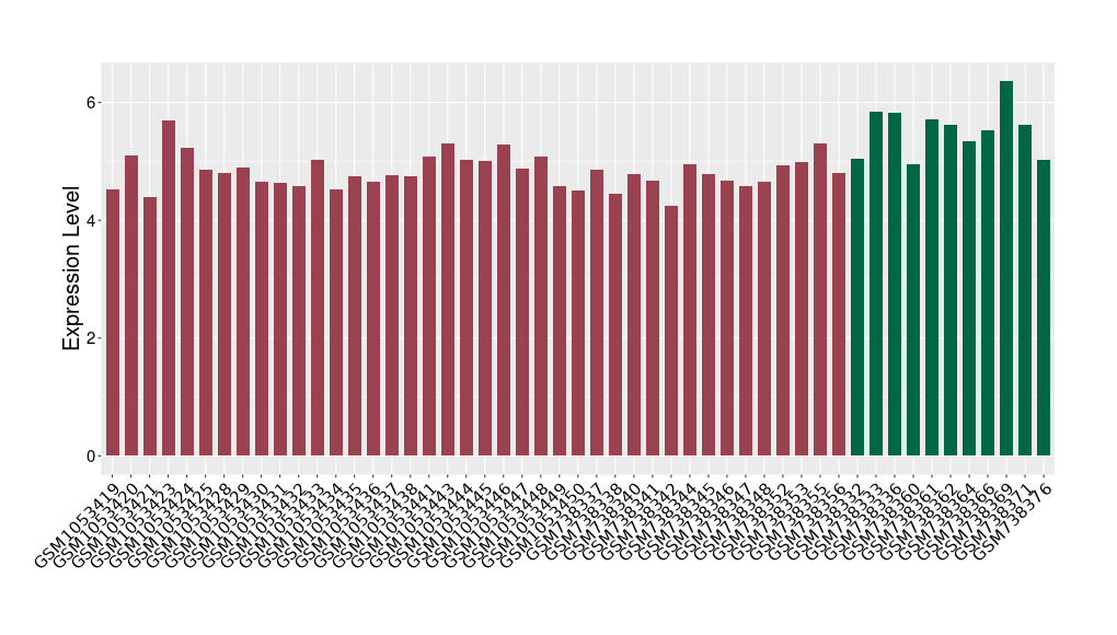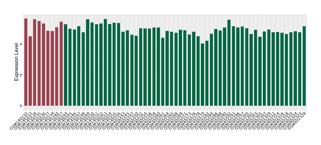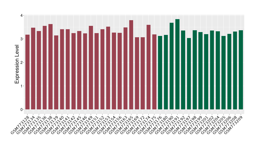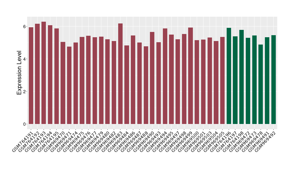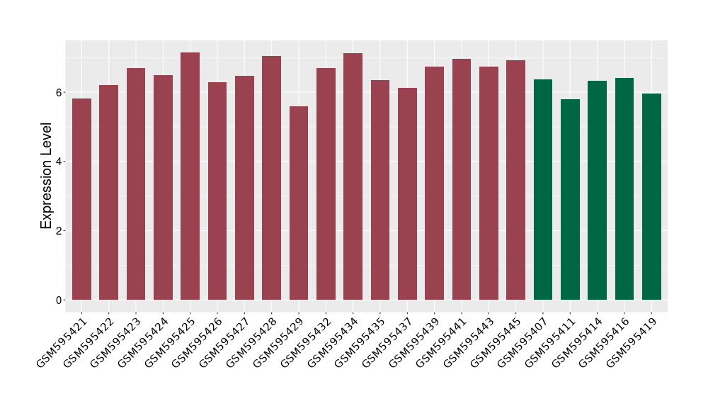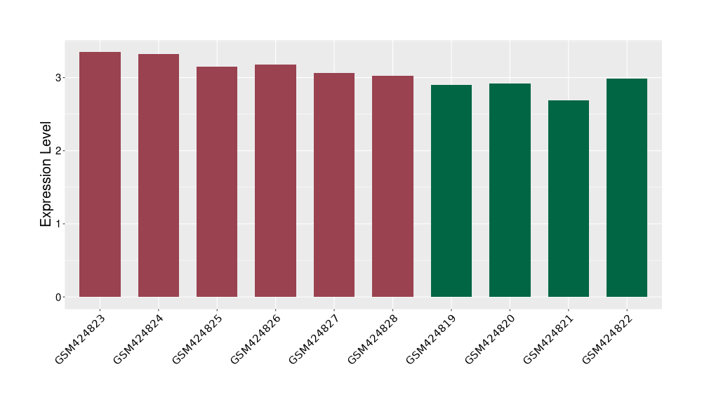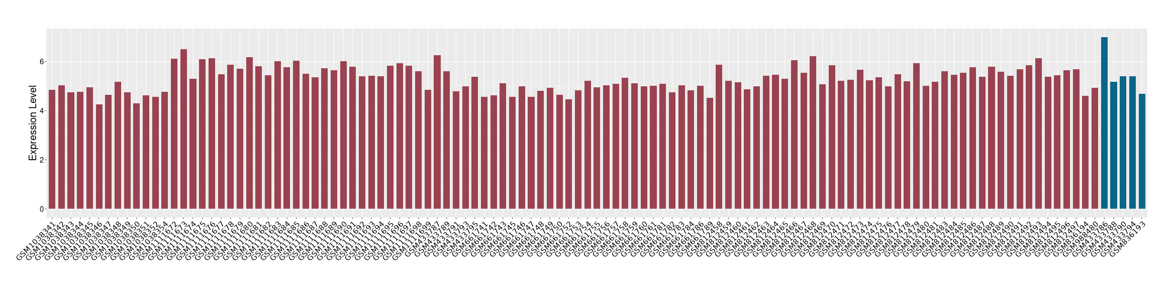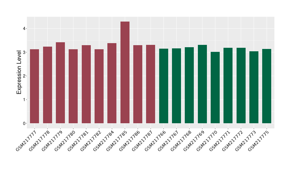 The Expression Level of Disease Section Compare with the Healthy Individual Tissue | p-value:0.009143956; Fold-change:0.252529344; Z-score:1.946448141 | ||||