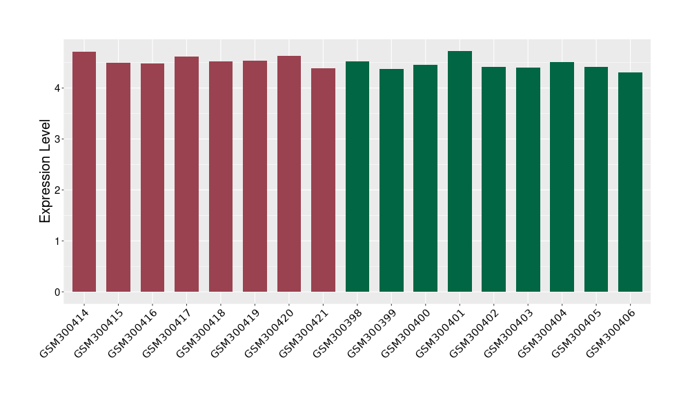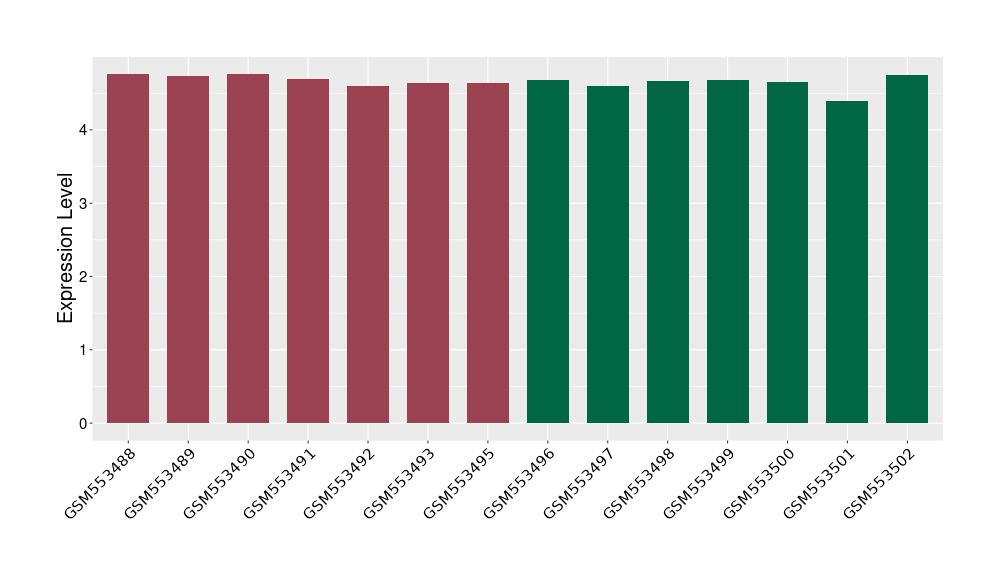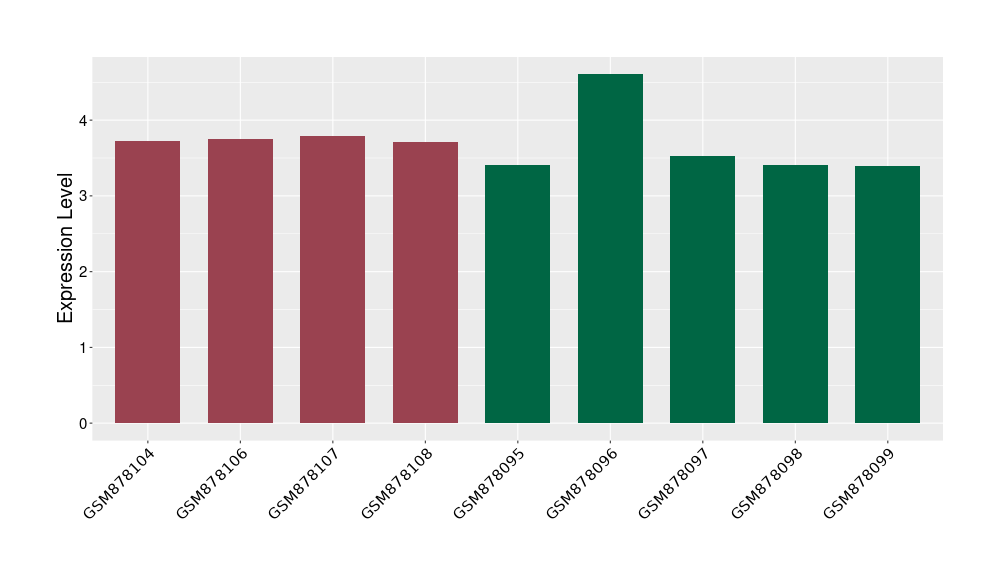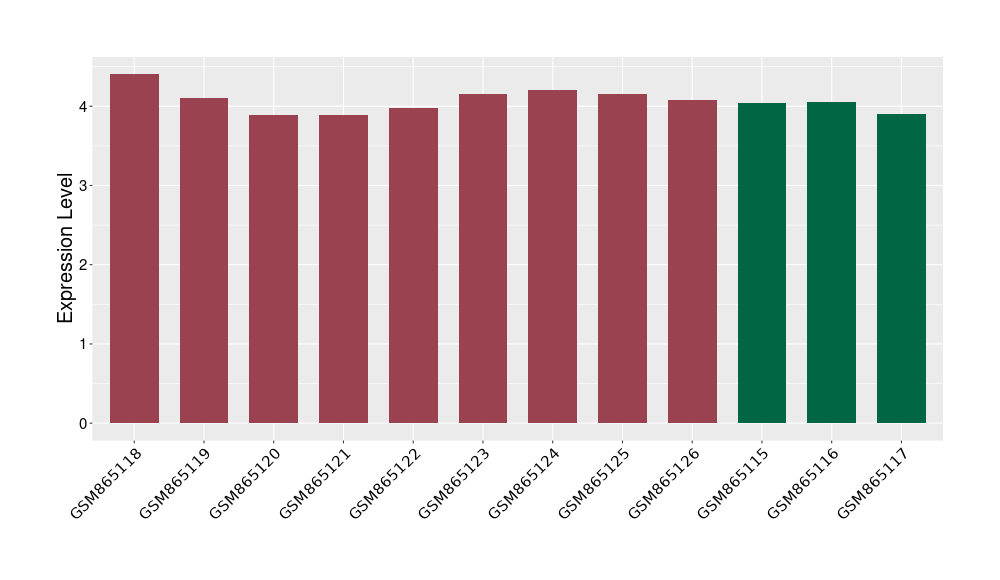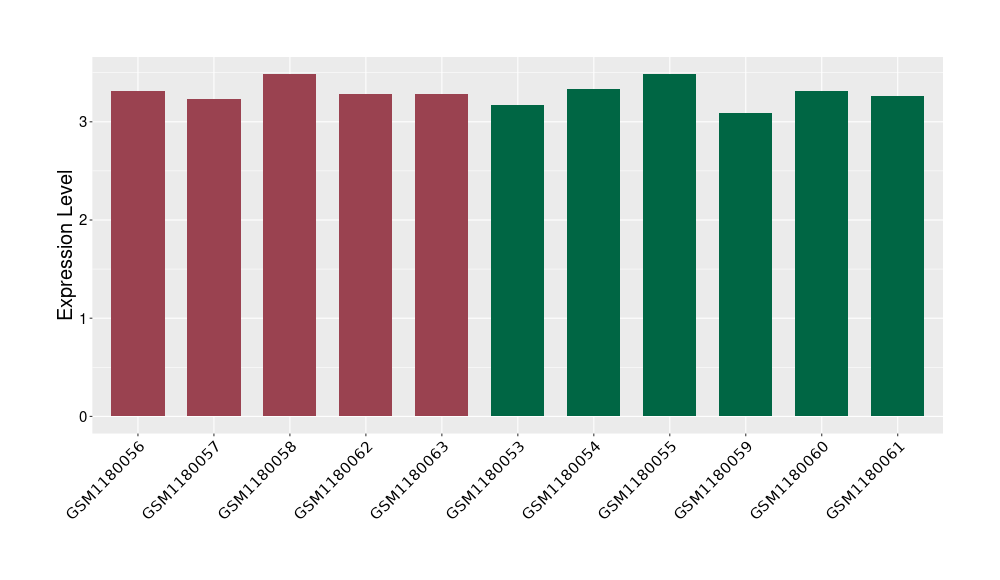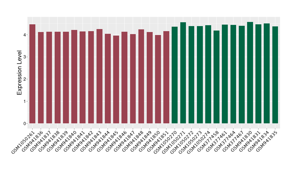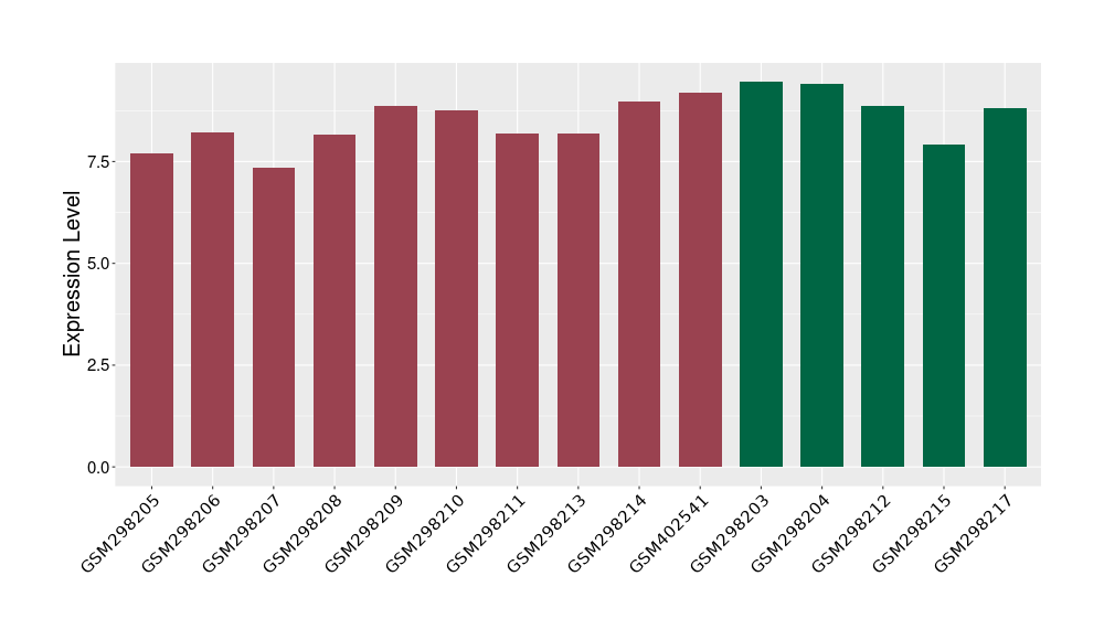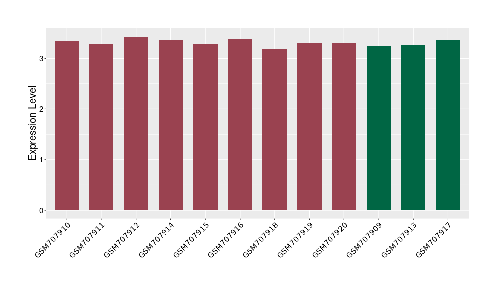 The Expression Level of Disease Section Compare with the Healthy Individual Tissue | p-value:0.01076945; Fold-change:-0.076188774; Z-score:-0.326715877 | ||||