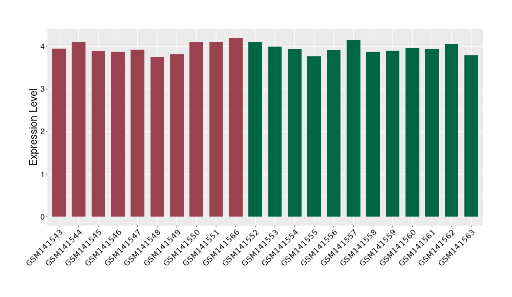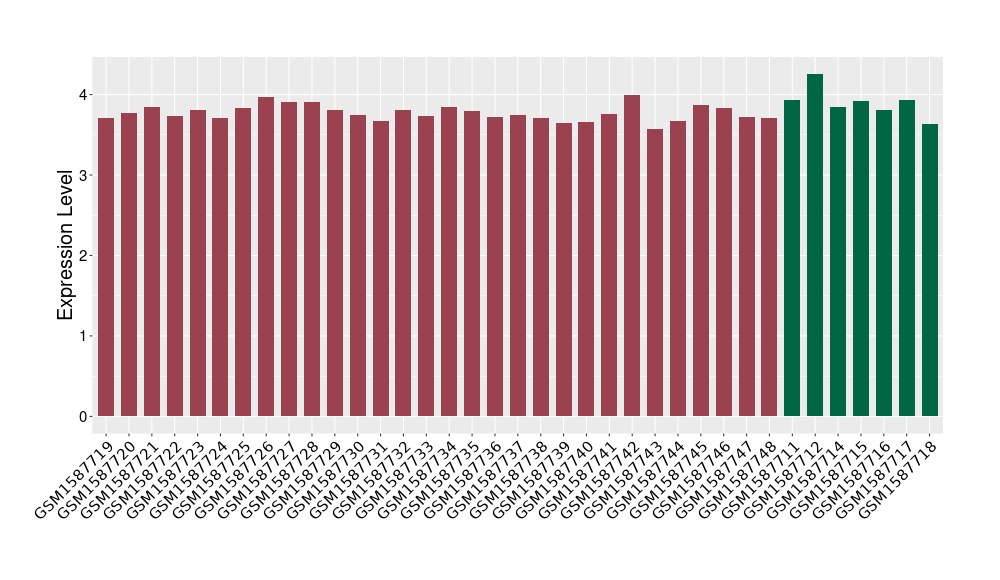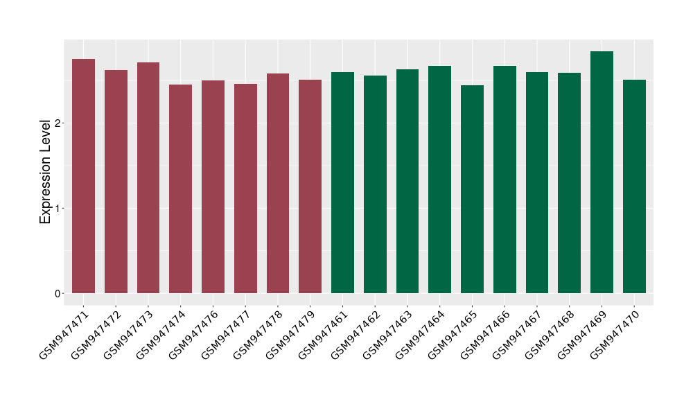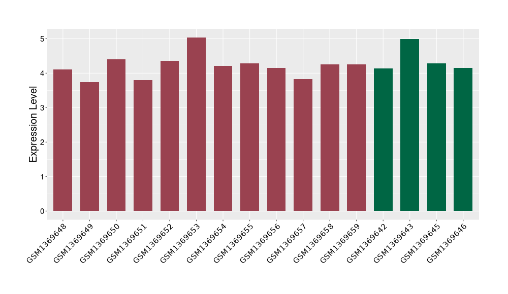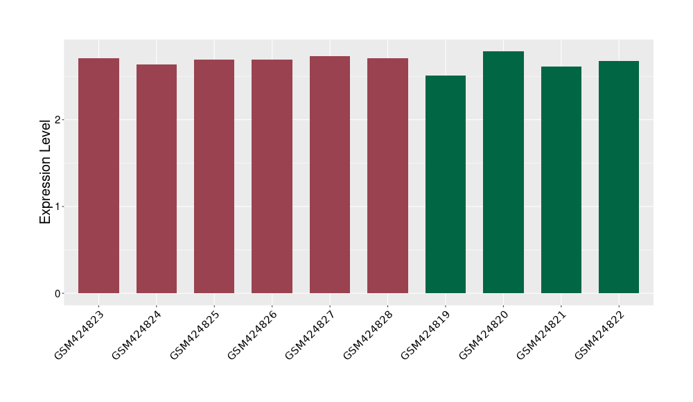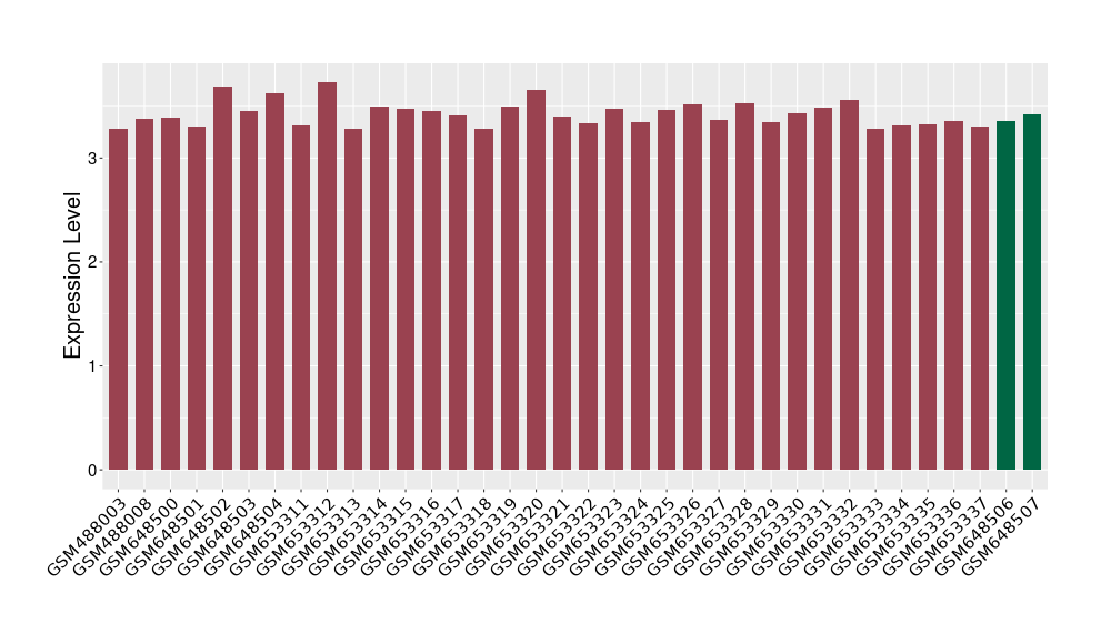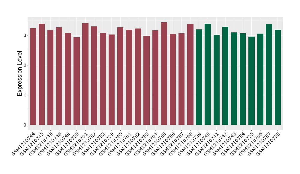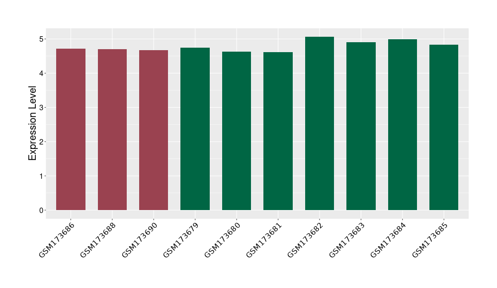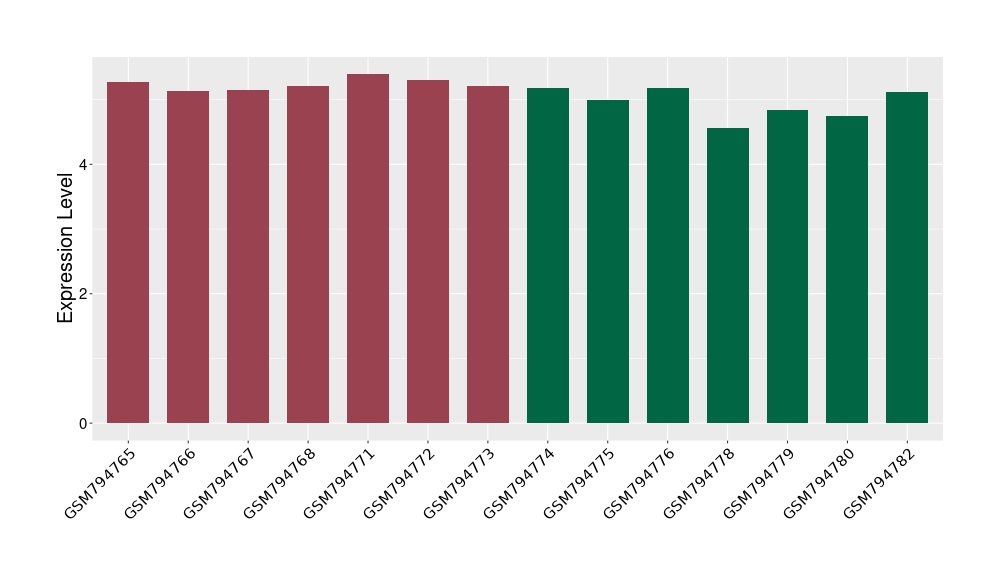 The Expression Level of Disease Section Compare with the Healthy Individual Tissue | p-value:0.01076945; Fold-change:-0.076188774; Z-score:-0.326715877 | ||||