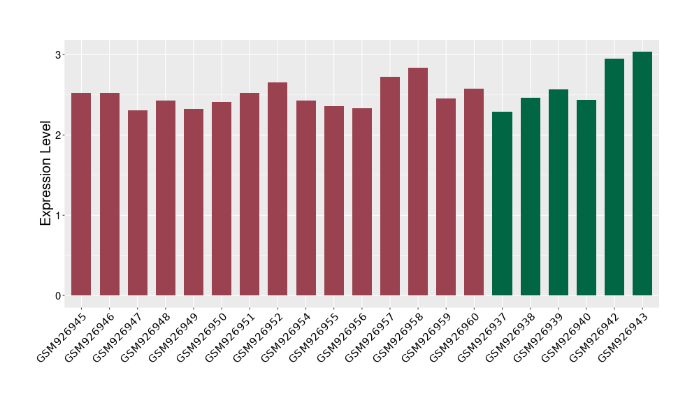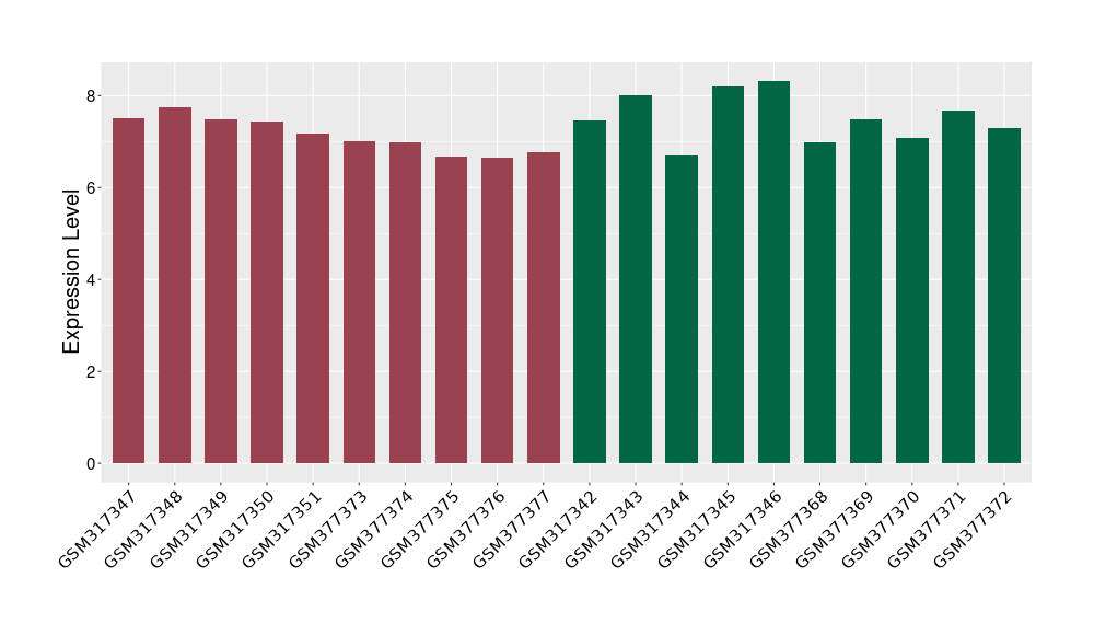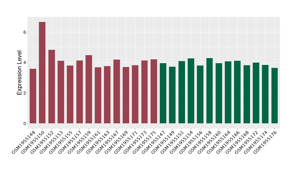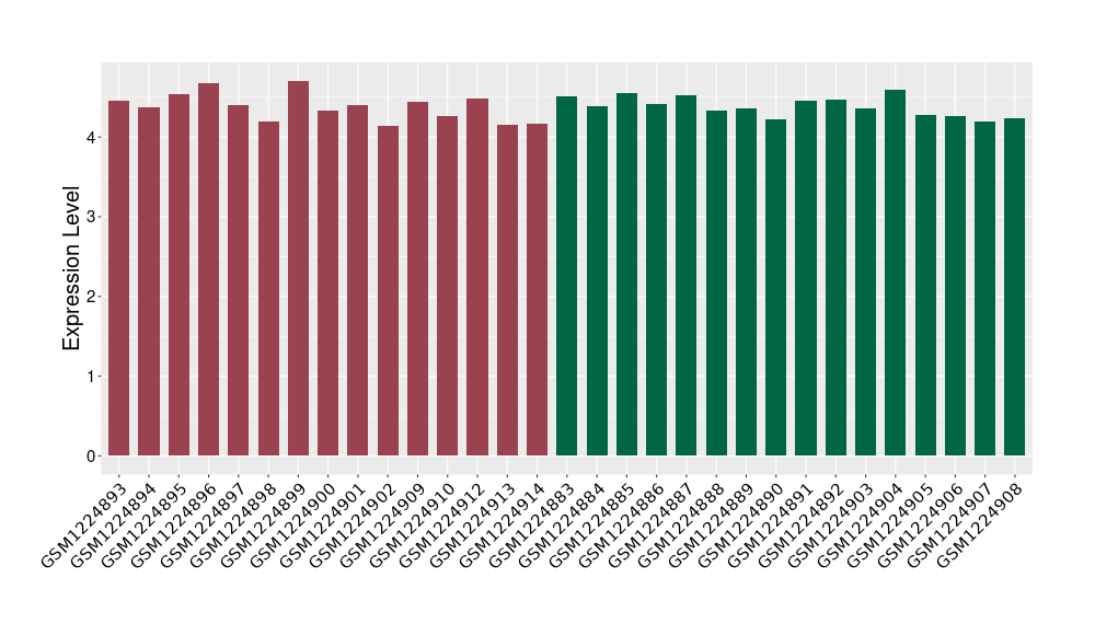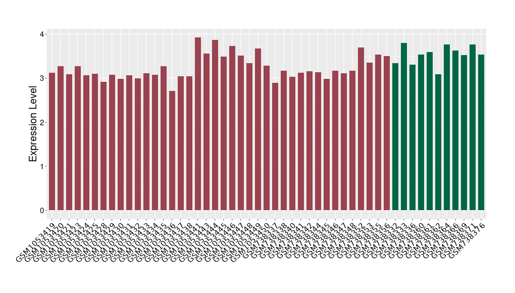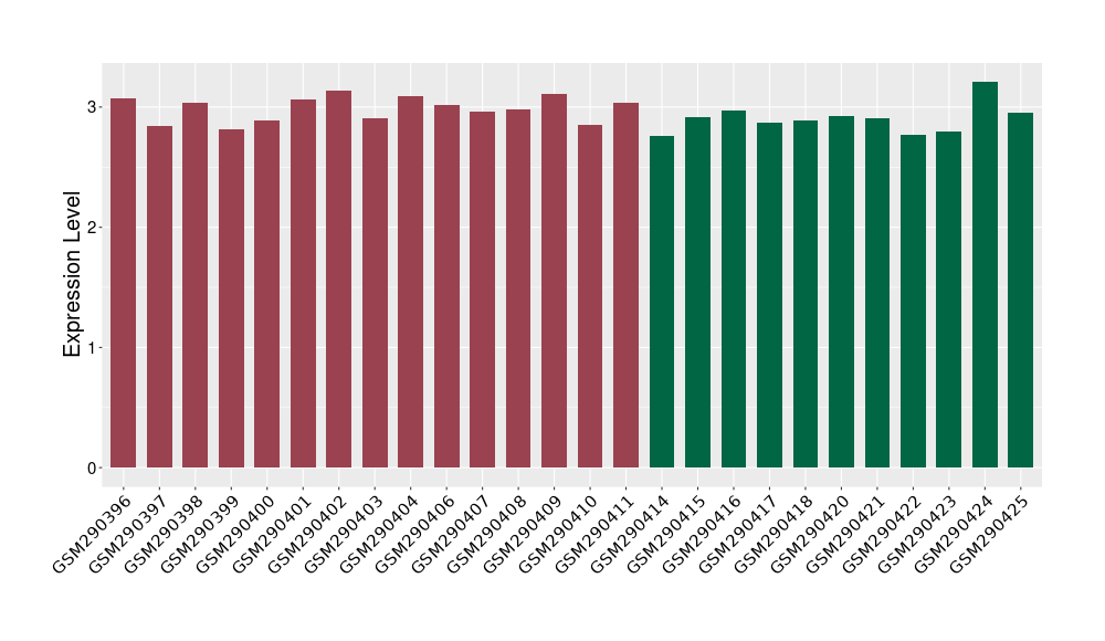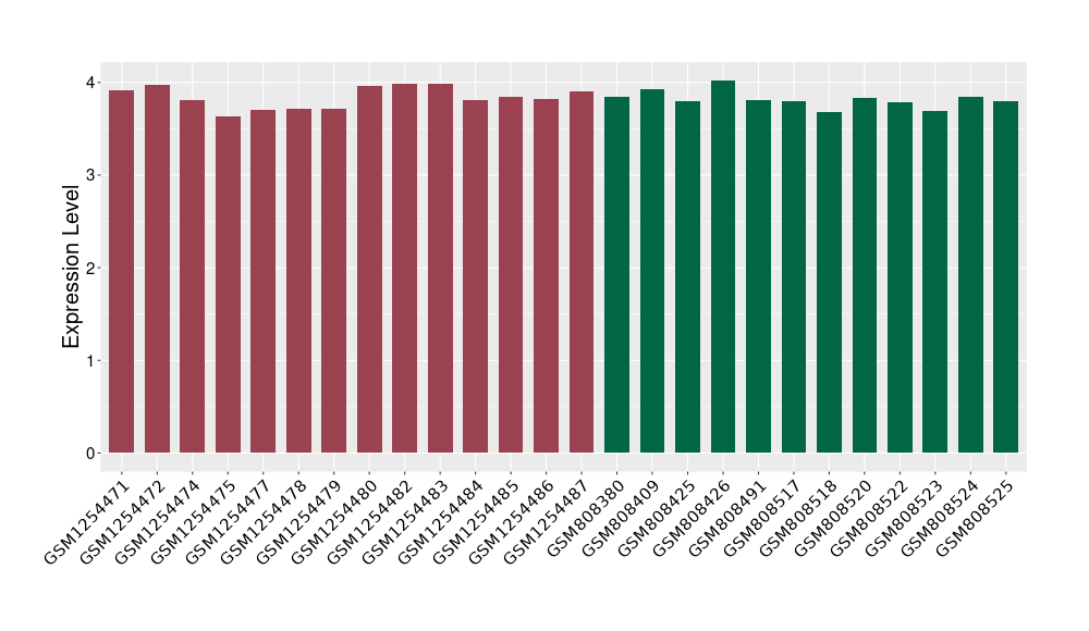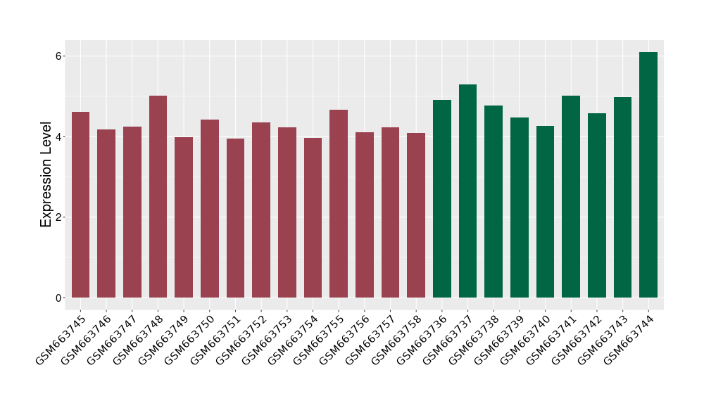 The Expression Level of Disease Section Compare with the Healthy Individual Tissue | p-value:0.01076945; Fold-change:-0.076188774; Z-score:-0.326715877 | ||||
