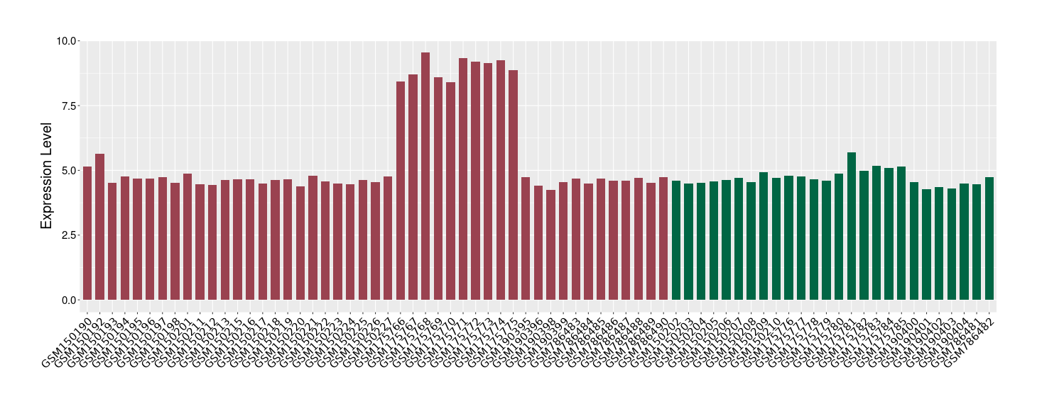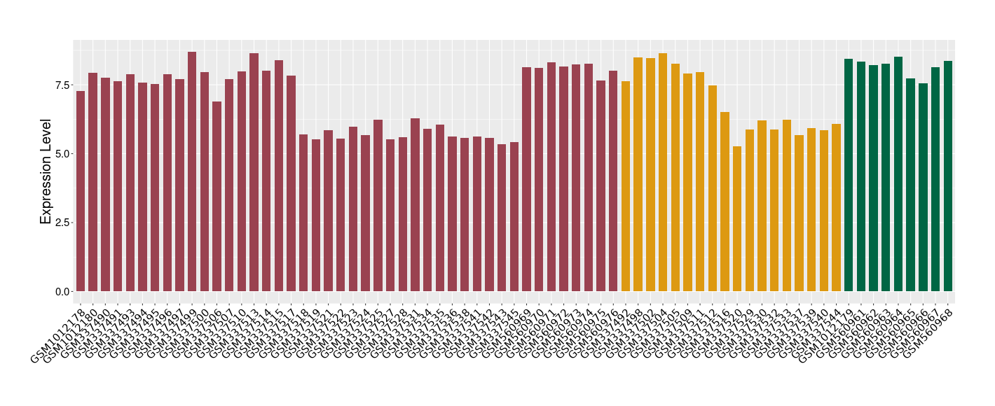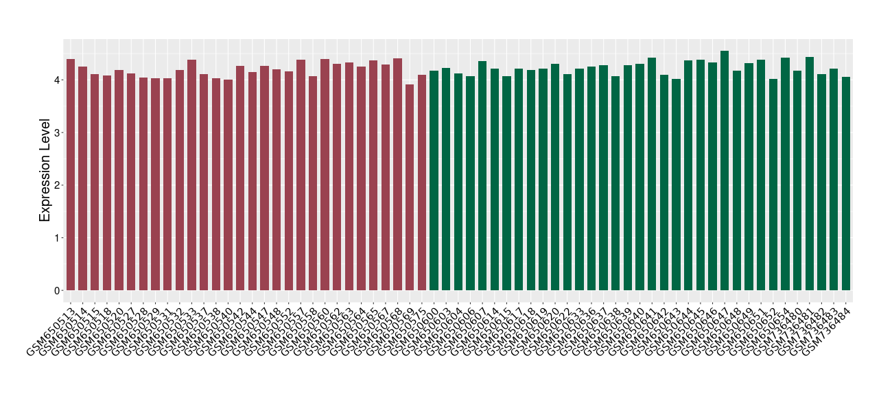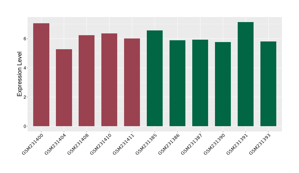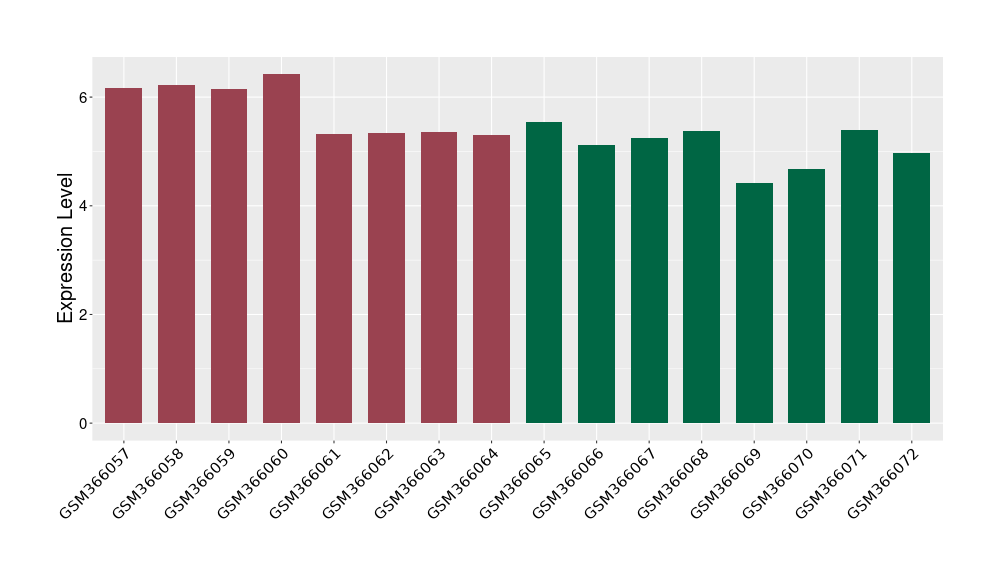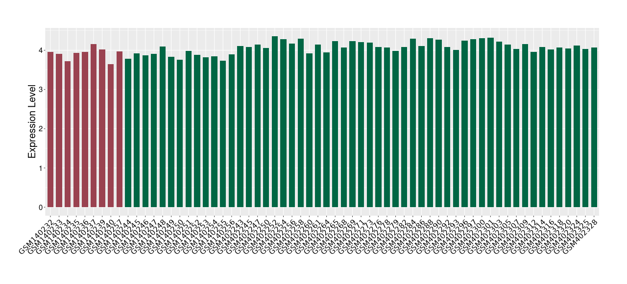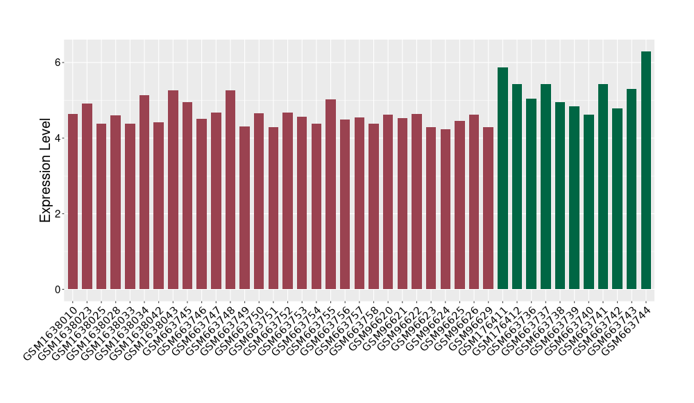 The Expression Level of Disease Section Compare with the Healthy Individual Tissue | p-value:0.01076945; Fold-change:-0.076188774; Z-score:-0.326715877 | ||||