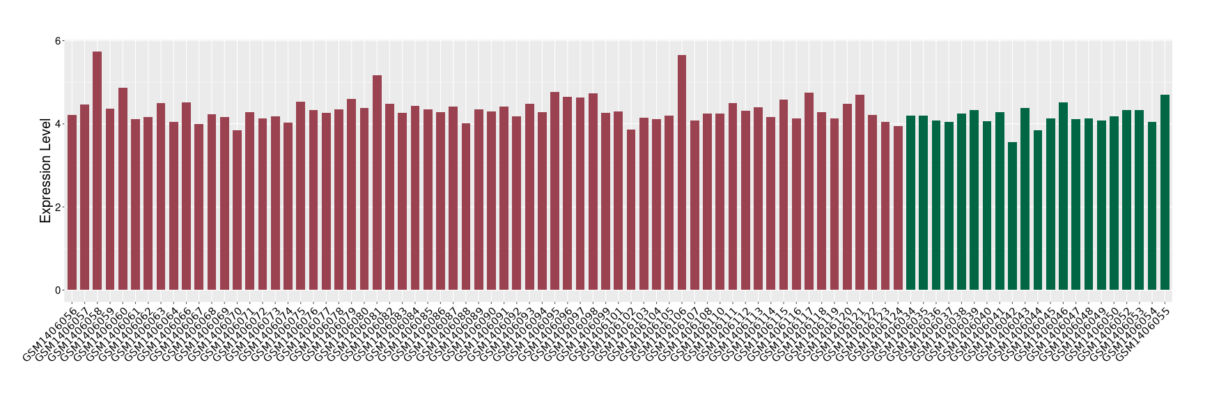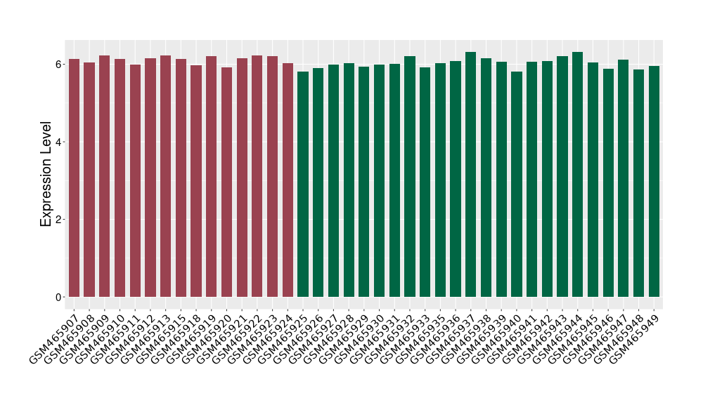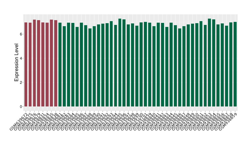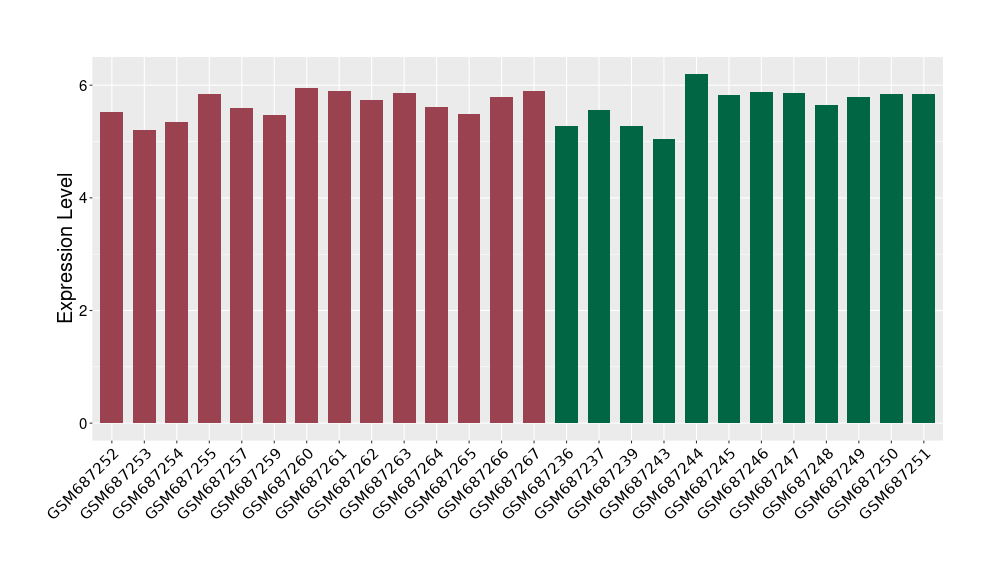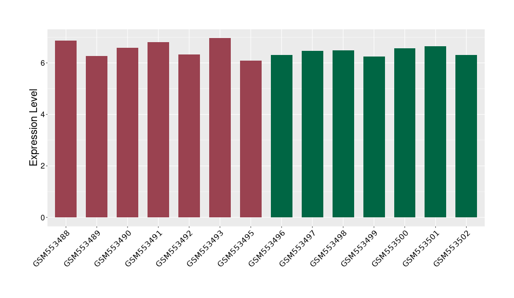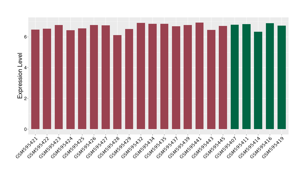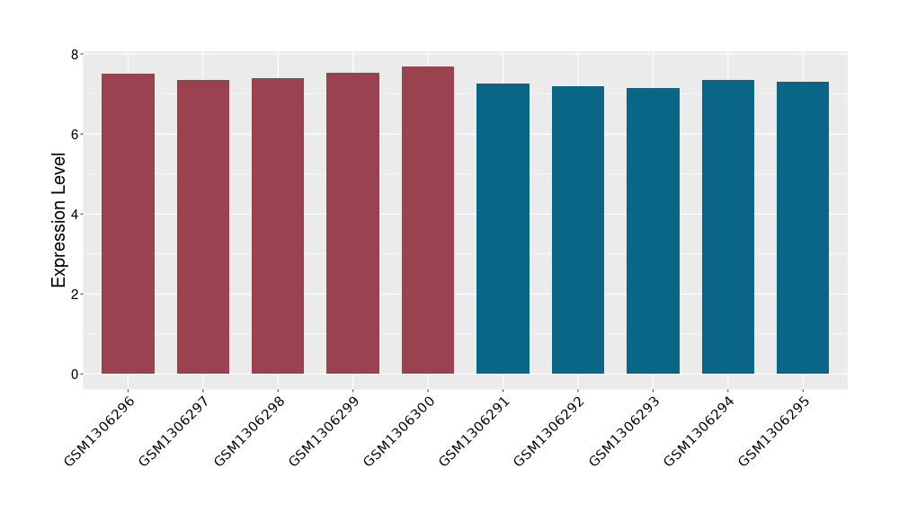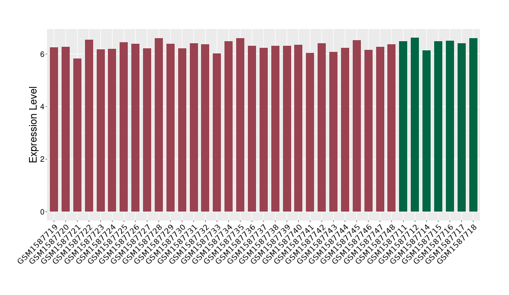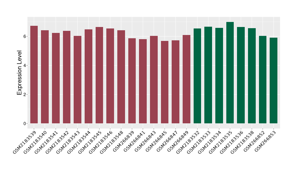 The Expression Level of Disease Section Compare with the Healthy Individual Tissue | p-value:6.65E-08; Fold-change:-0.333637435; Z-score:-1.238029314 | ||||
