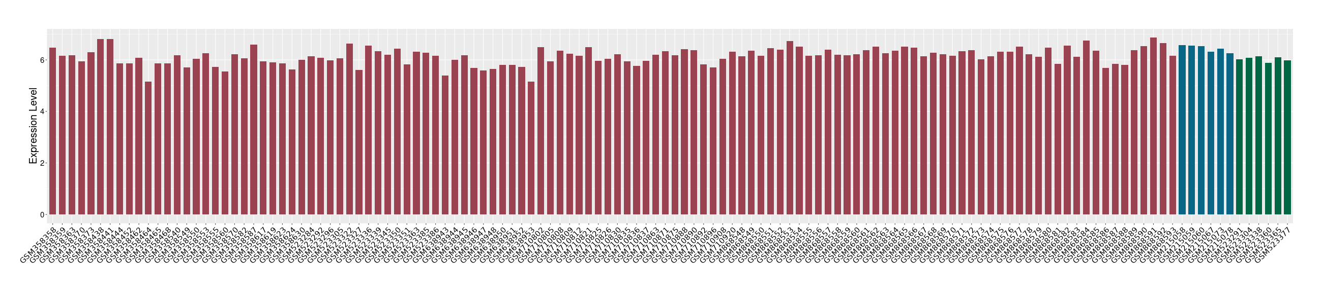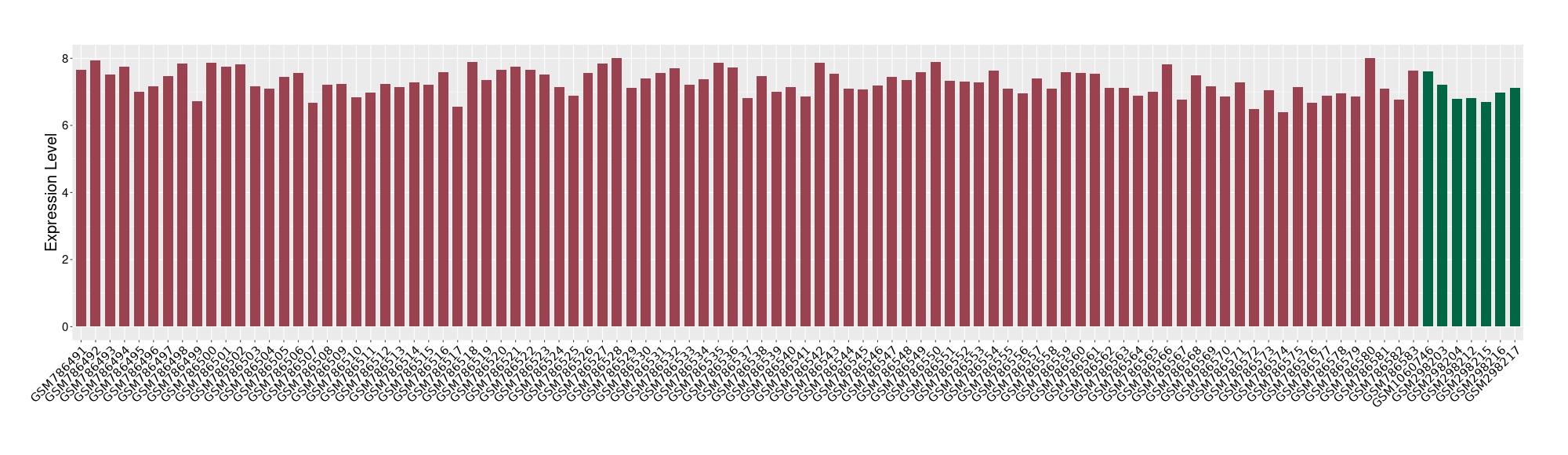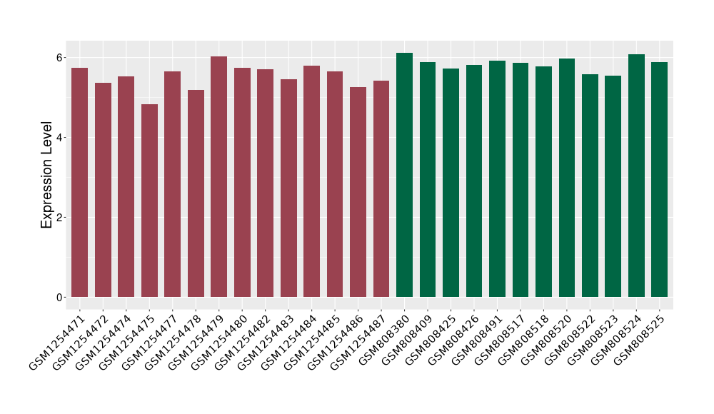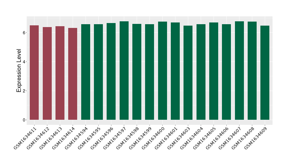 The Expression Level of Disease Section Compare with the Healthy Individual Tissue | p-value:0.0127576; Fold-change:-0.160821067; Z-score:-1.235165015 | ||||