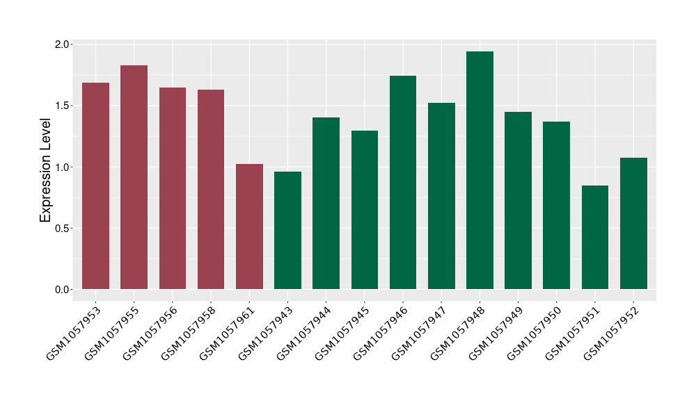 The Expression Level of Disease Section Compare with the Healthy Individual Tissue | p-value:0.021075951; Fold-change:0.351378479; Z-score:1.883141337 | ||||