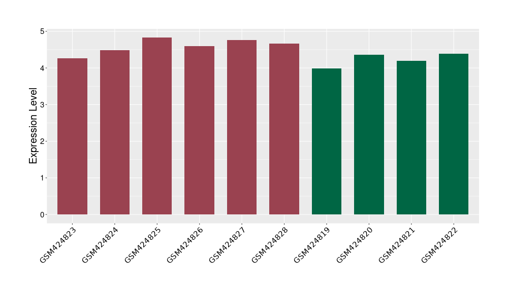 The Expression Level of Disease Section Compare with the Healthy Individual Tissue | p-value:0.138657107; Fold-change:-0.378753891; Z-score:-1.073230191 | ||||