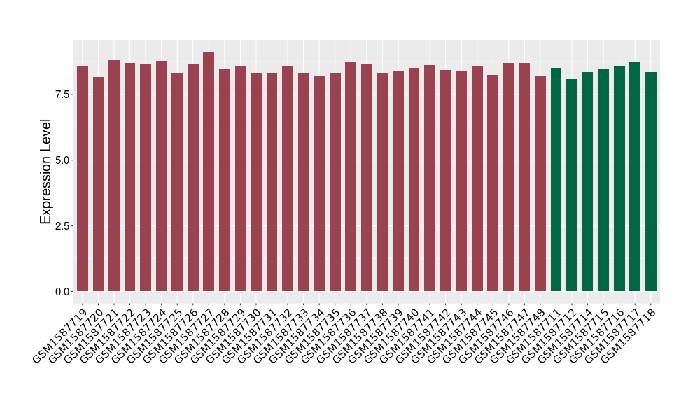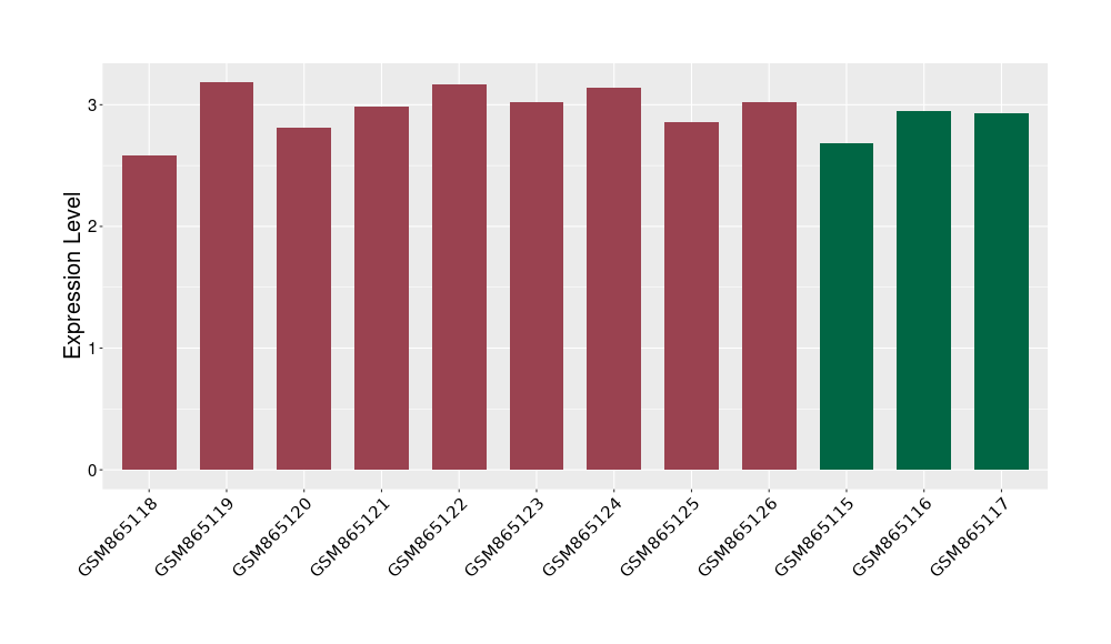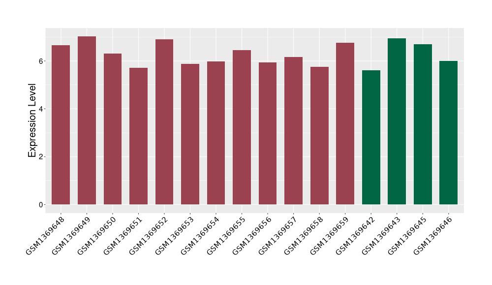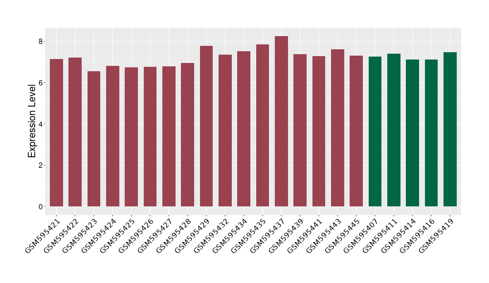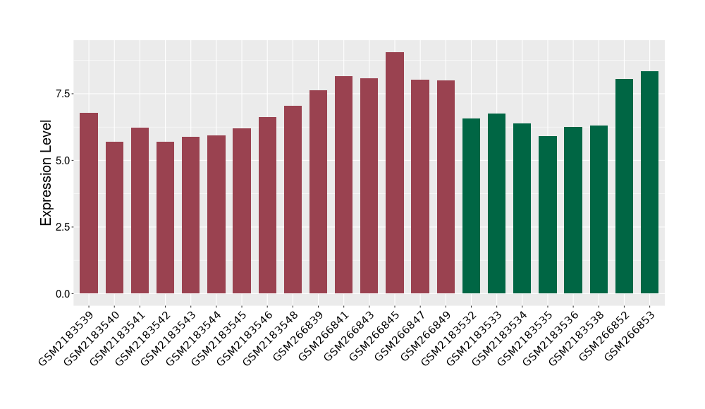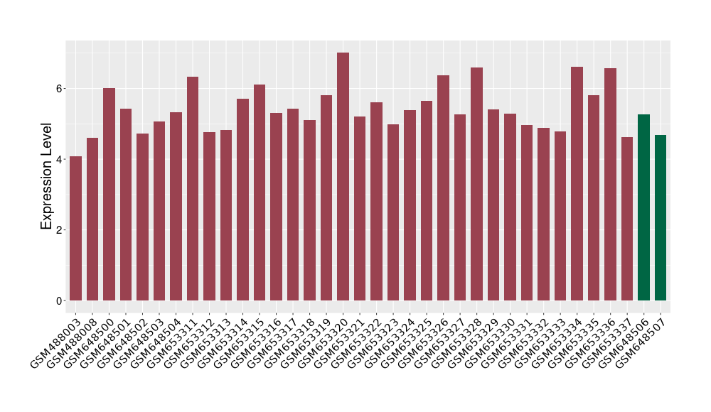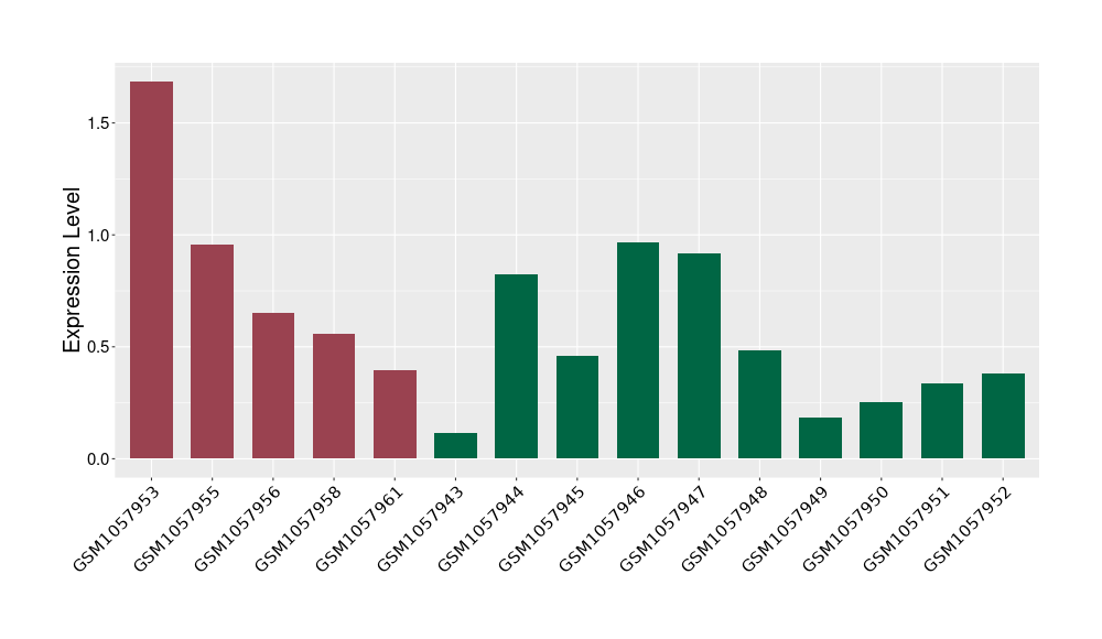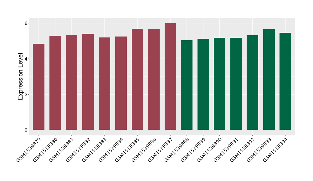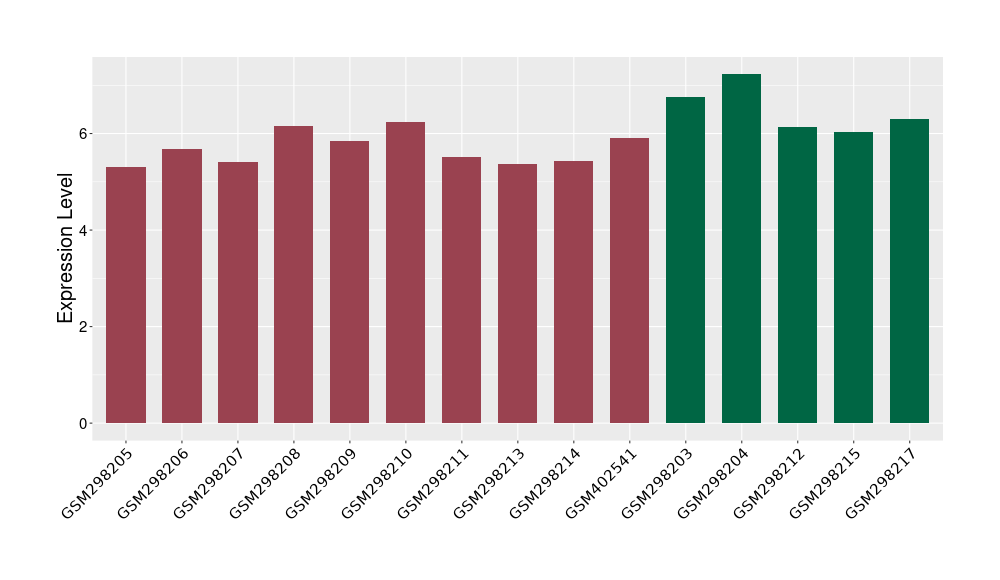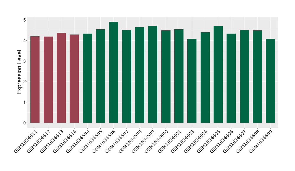 The Expression Level of Disease Section Compare with the Healthy Individual Tissue | p-value:0.003081691; Fold-change:-0.278084623; Z-score:-1.458912433 | ||||