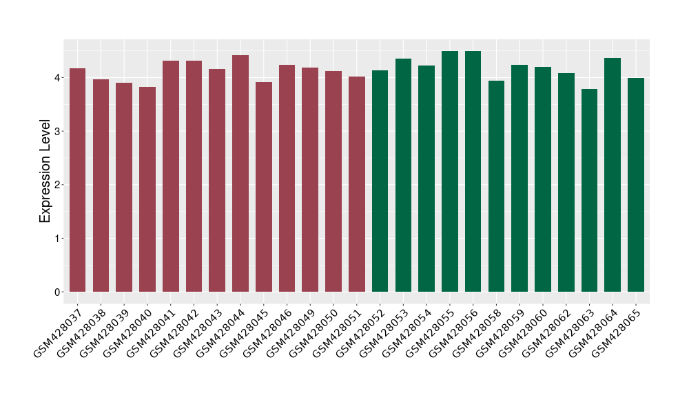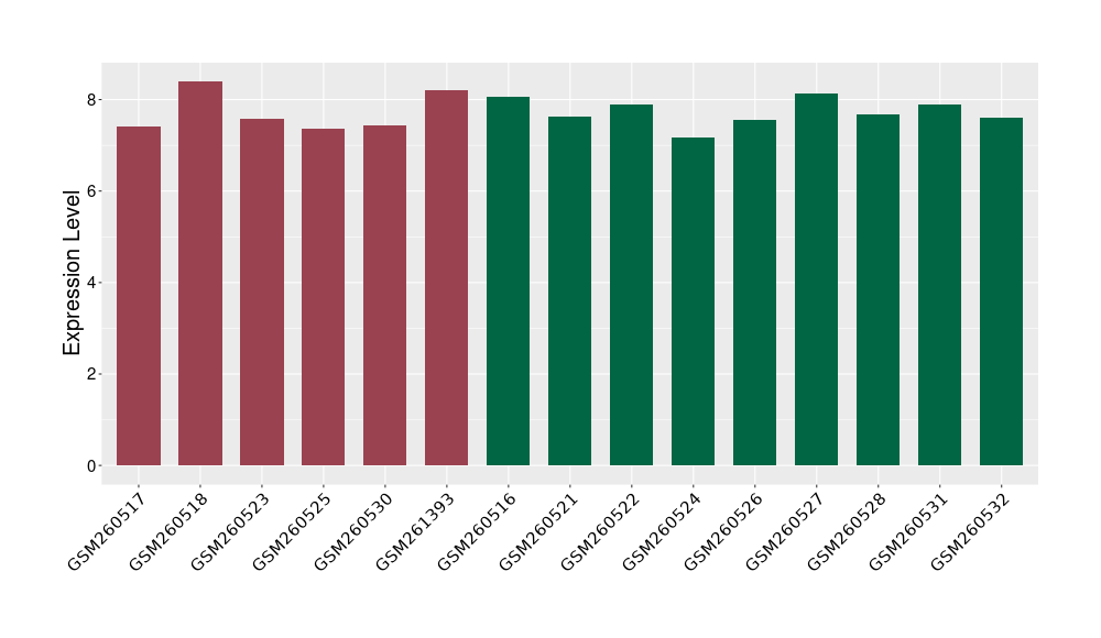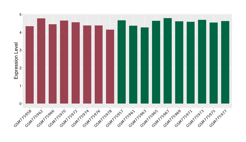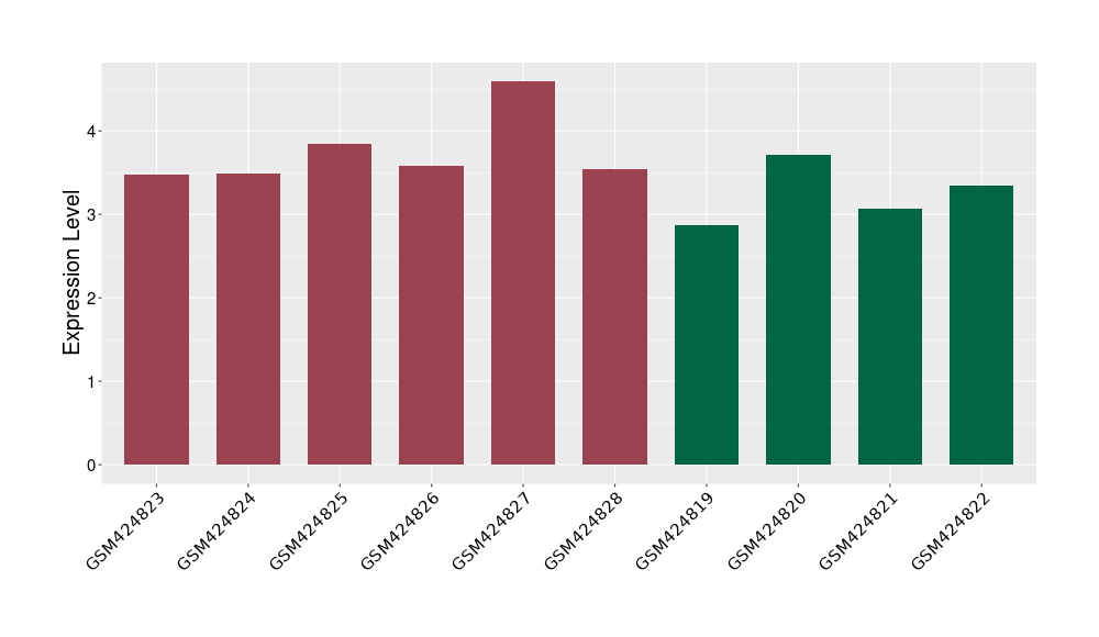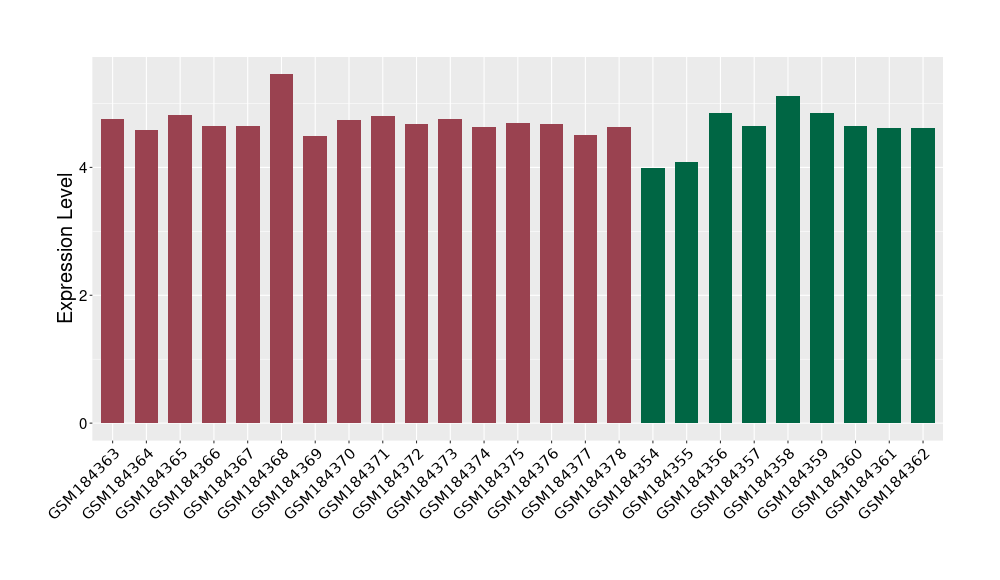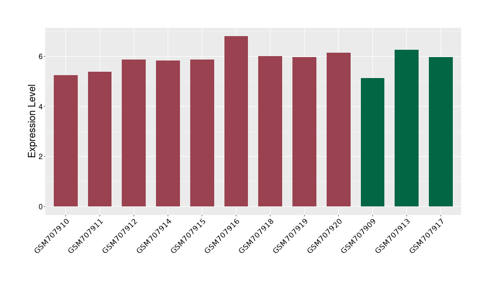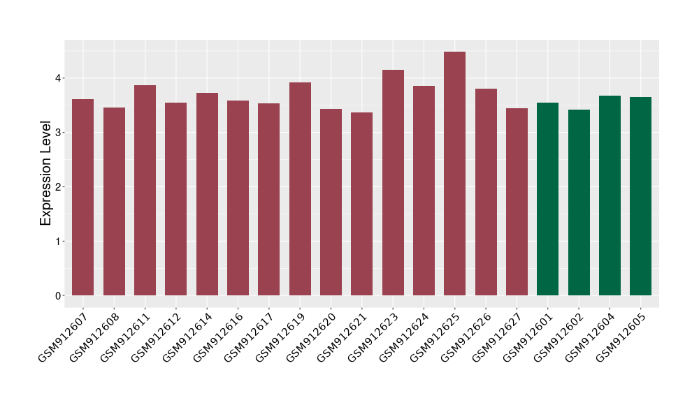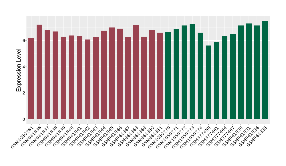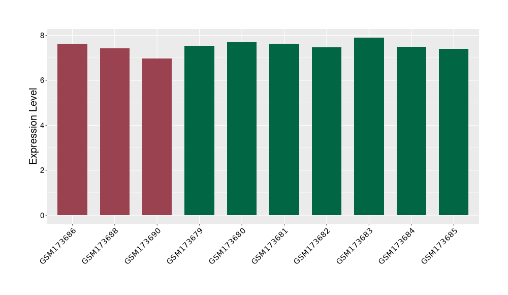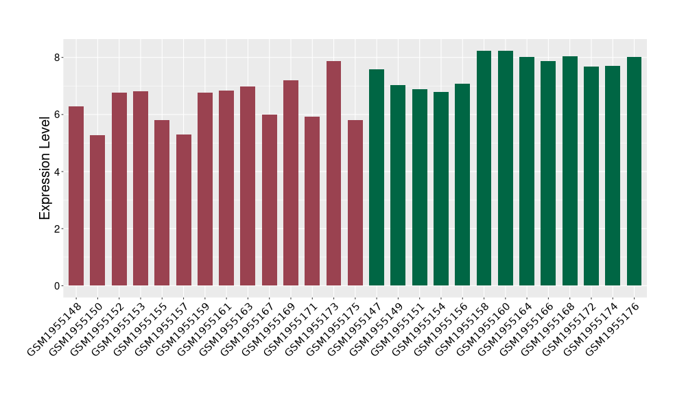 The Expression Level of Disease Section Compare with the Healthy Individual Tissue | p-value:0.003081691; Fold-change:-0.278084623; Z-score:-1.458912433 | ||||