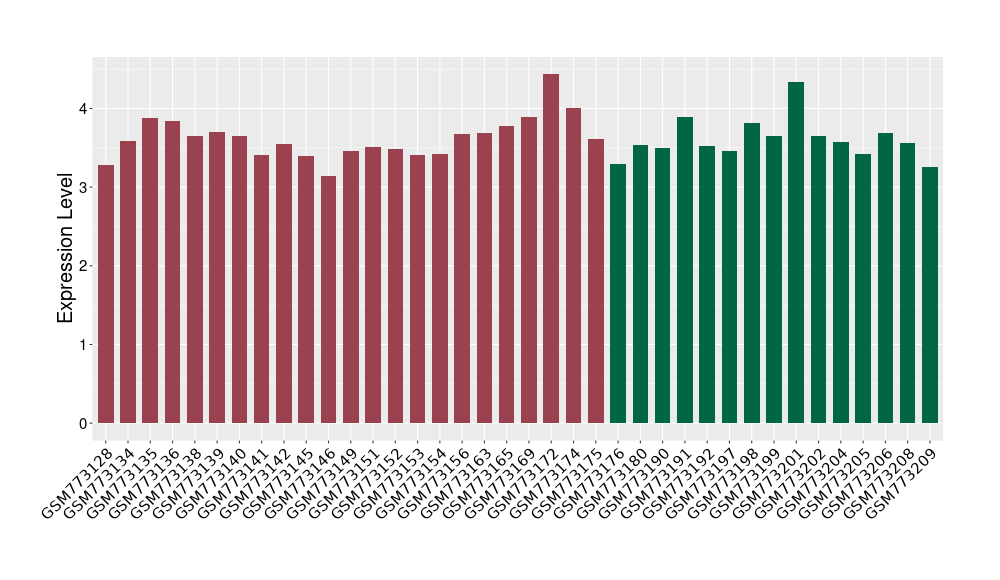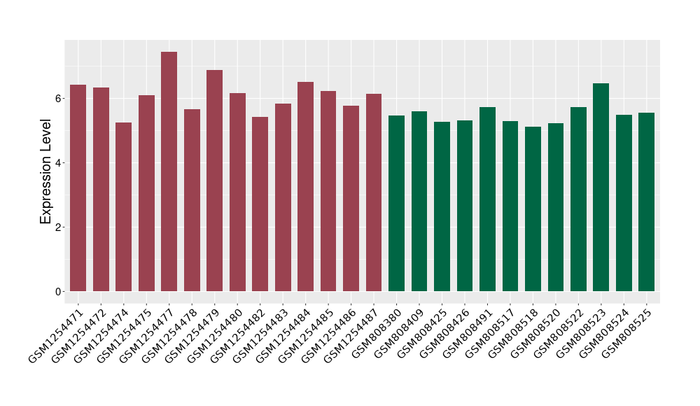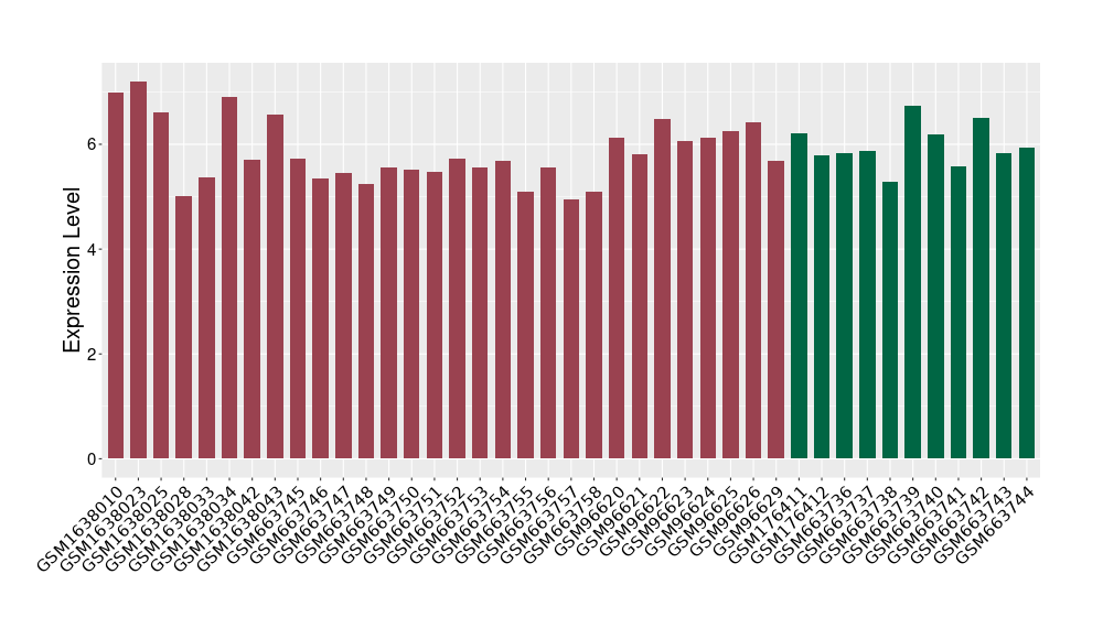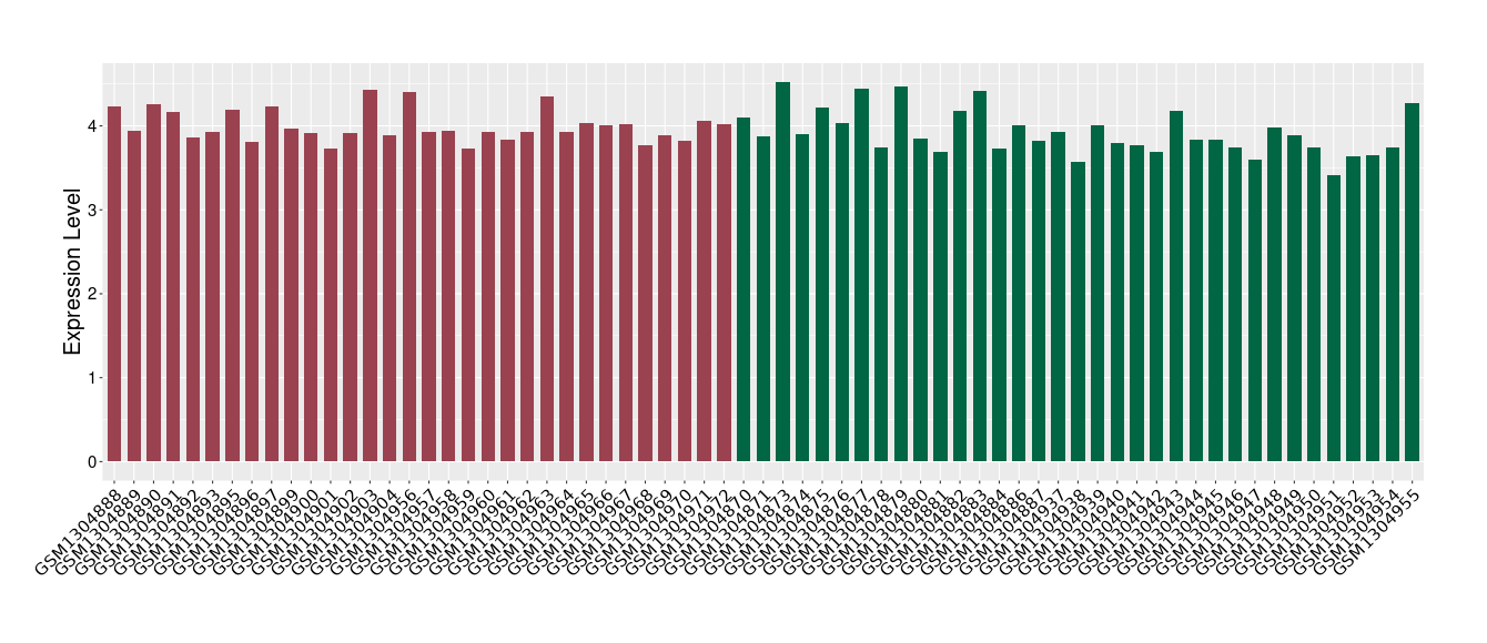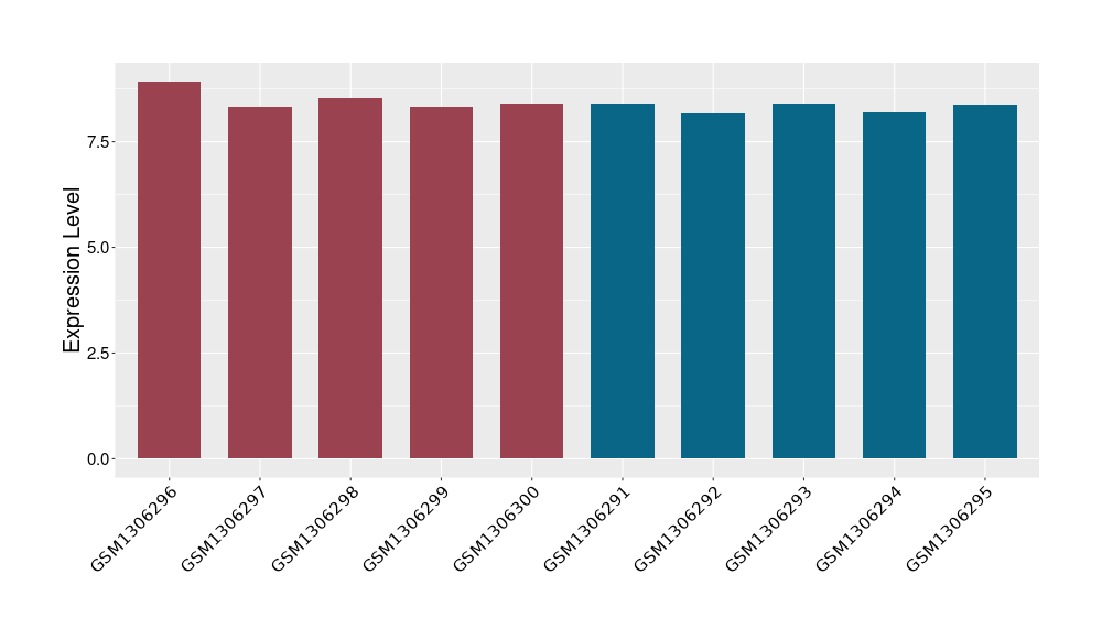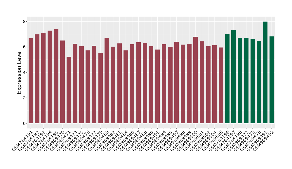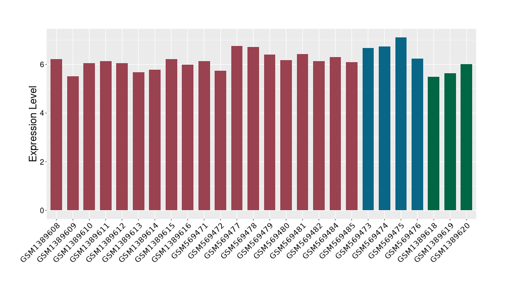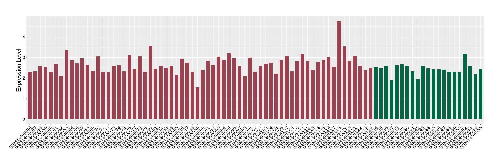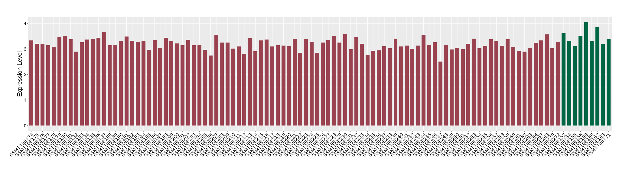 The Expression Level of Disease Section Compare with the Healthy Individual Tissue | p-value:0.003081691; Fold-change:-0.278084623; Z-score:-1.458912433 | ||||