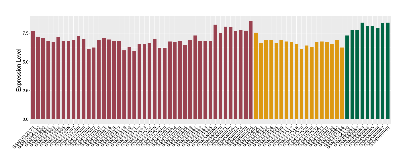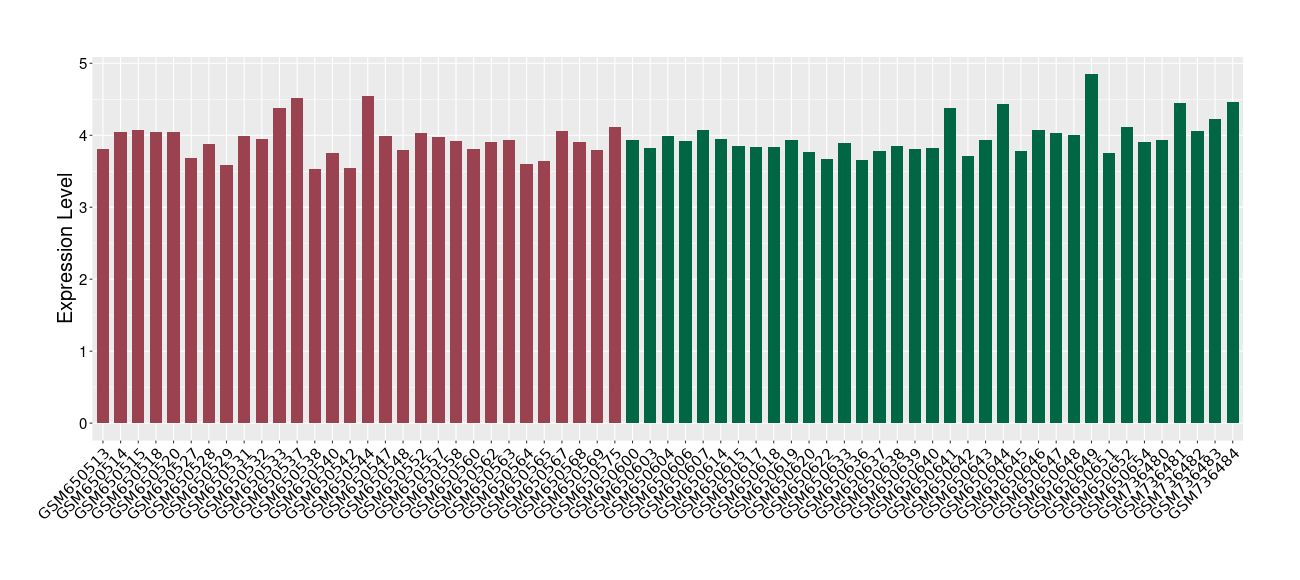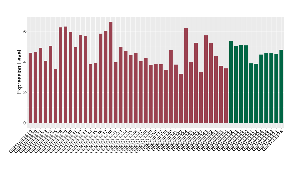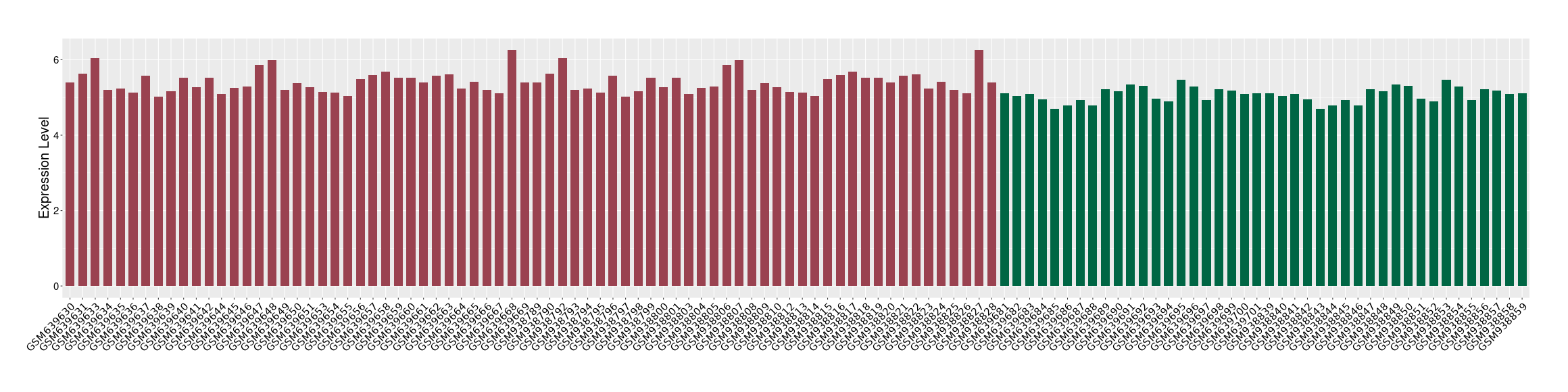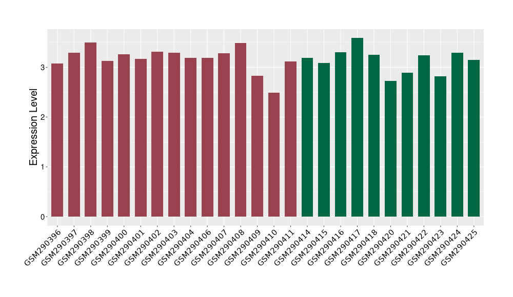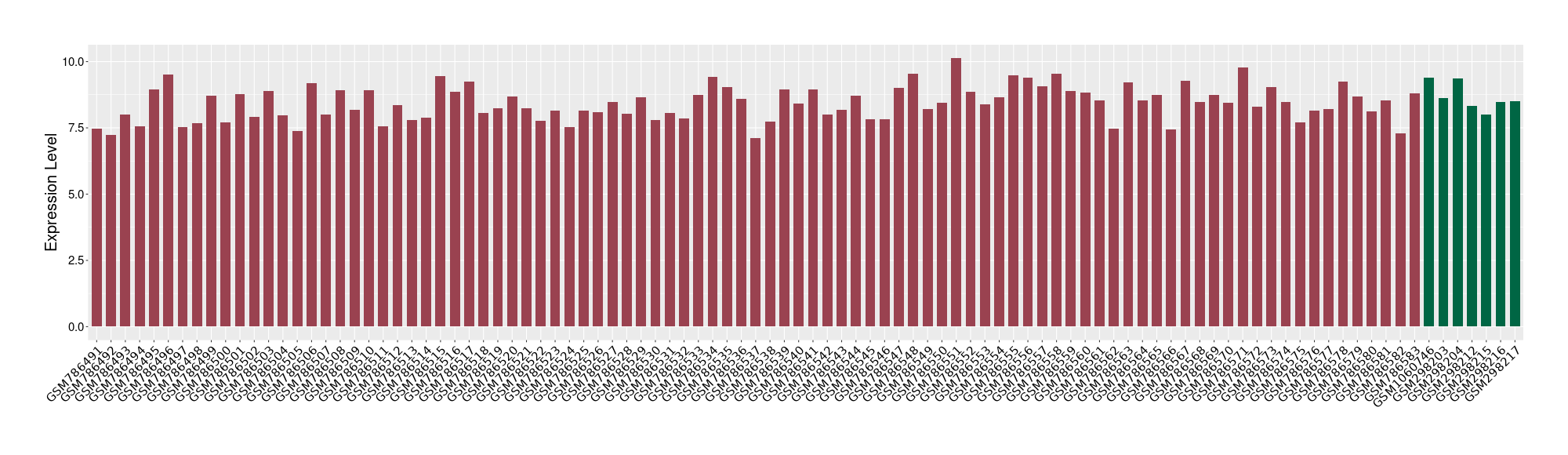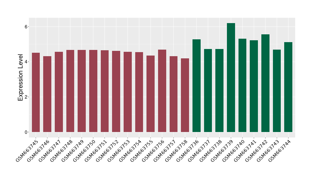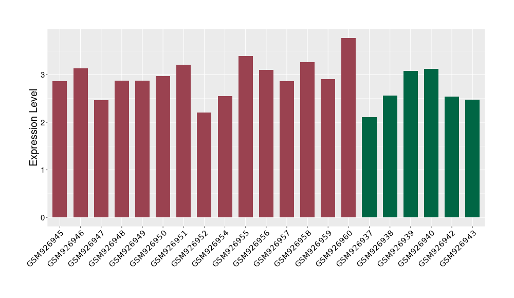 The Expression Level of Disease Section Compare with the Healthy Individual Tissue | p-value:0.003081691; Fold-change:-0.278084623; Z-score:-1.458912433 | ||||