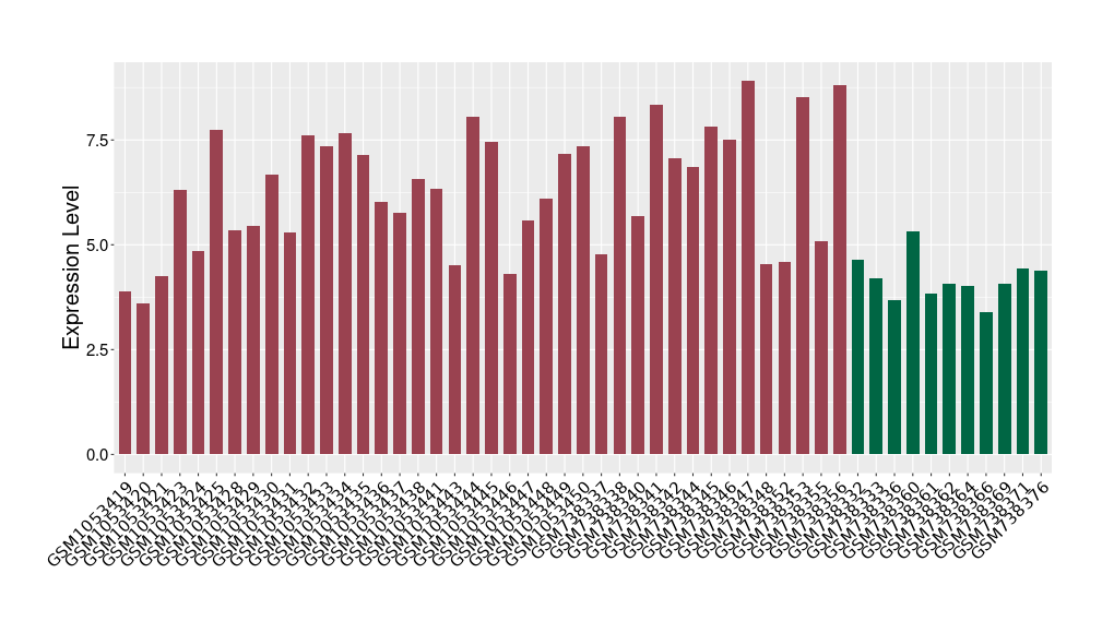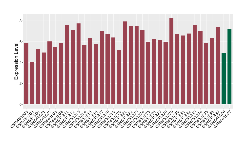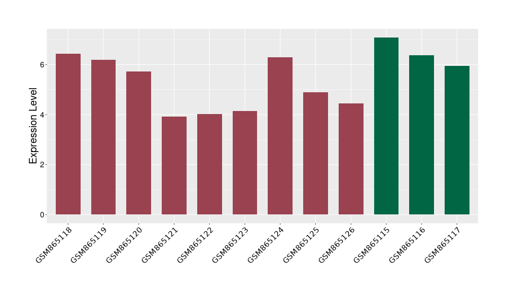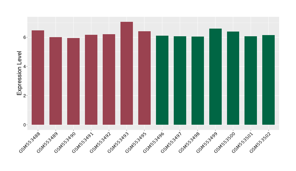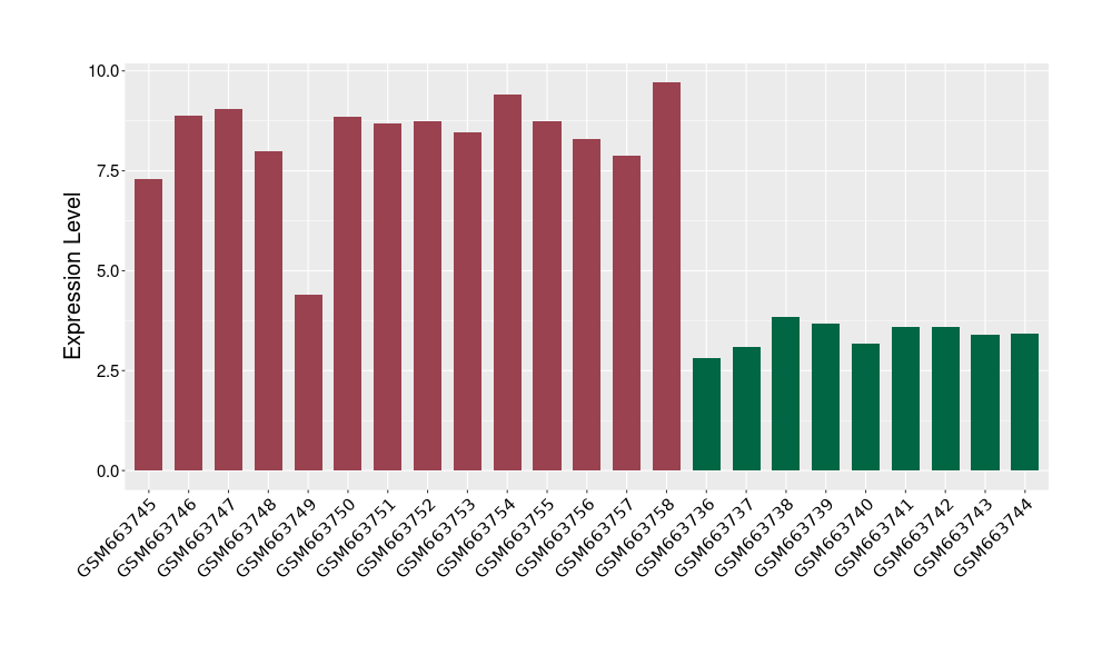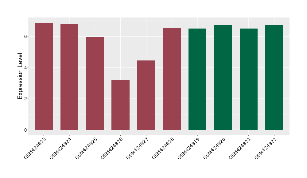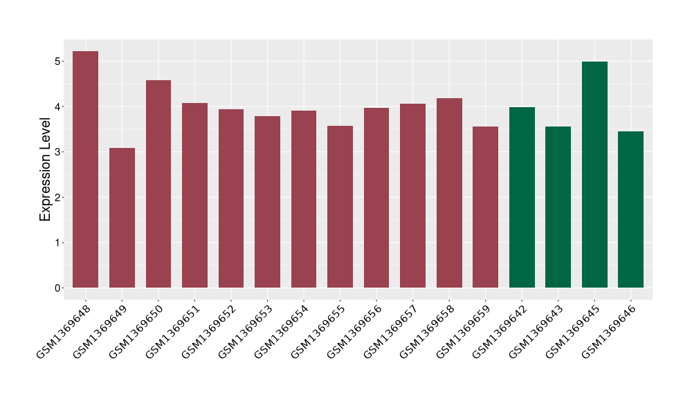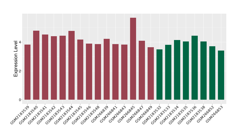 The Expression Level of Disease Section Compare with the Healthy Individual Tissue | p-value:6.44E-05; Fold-change:0.93273757; Z-score:1.523753505 | ||||