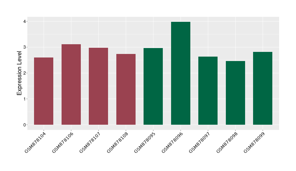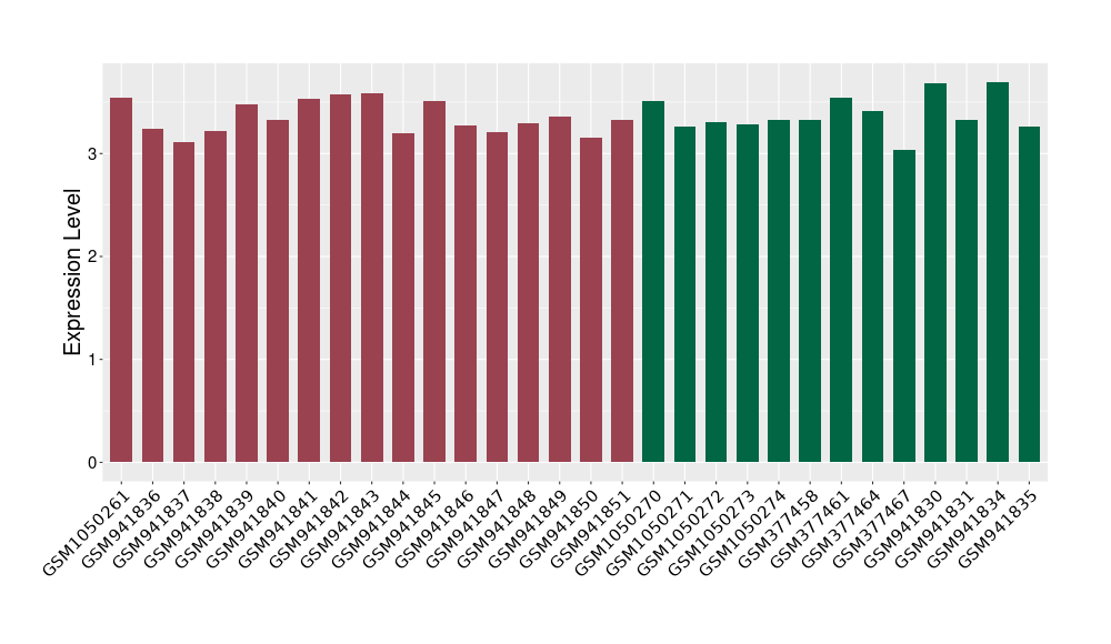 The Expression Level of Disease Section Compare with the Healthy Individual Tissue | p-value:0.000170861; Fold-change:0.917733354; Z-score:1.71701213 | ||||