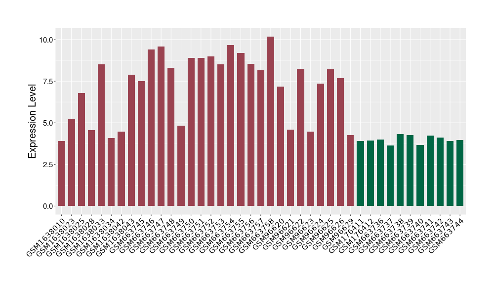 The Expression Level of Disease Section Compare with the Healthy Individual Tissue | p-value:5.06E-10; Fold-change:2.389053726; Z-score:4.636002328 | ||||