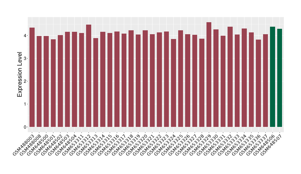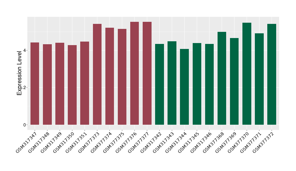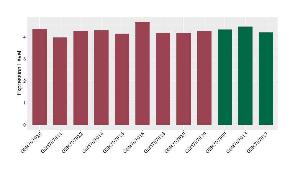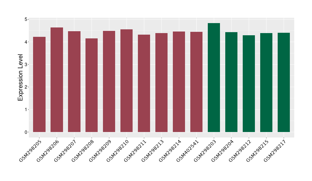 The Expression Level of Disease Section Compare with the Healthy Individual Tissue | p-value:0.932031496; Fold-change:-0.076319766; Z-score:-0.476558423 | ||||