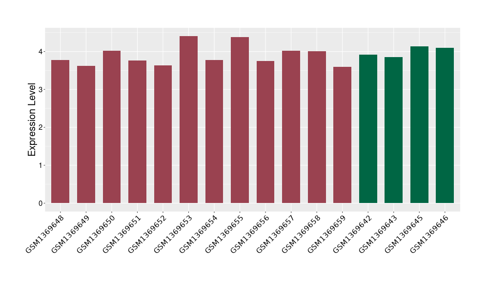 The Expression Level of Disease Section Compare with the Healthy Individual Tissue | p-value:0.427815656; Fold-change:-0.128815581; Z-score:-0.418396621 | ||||