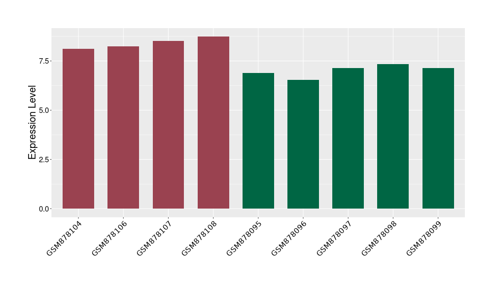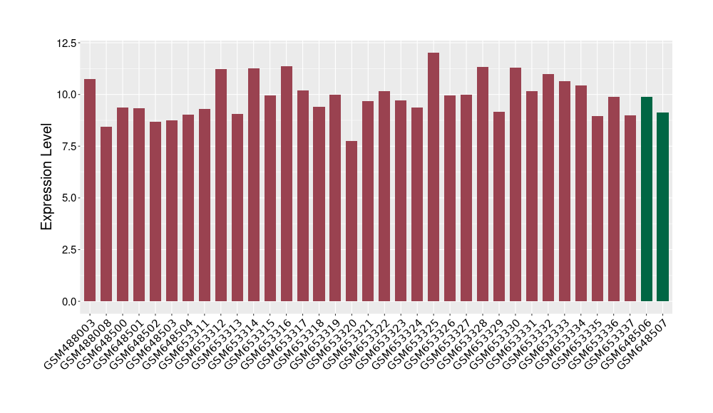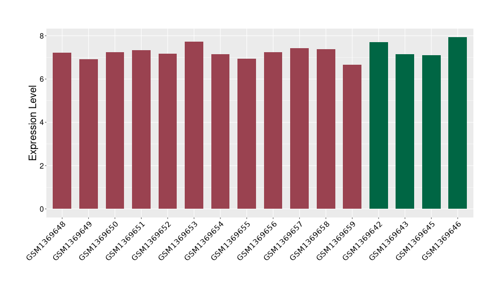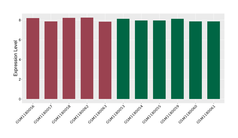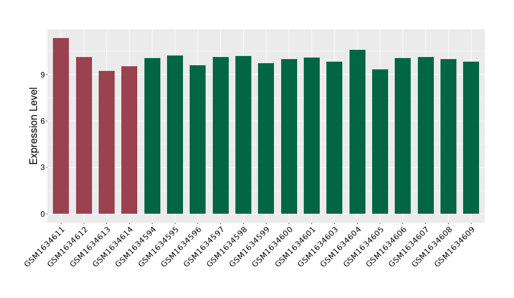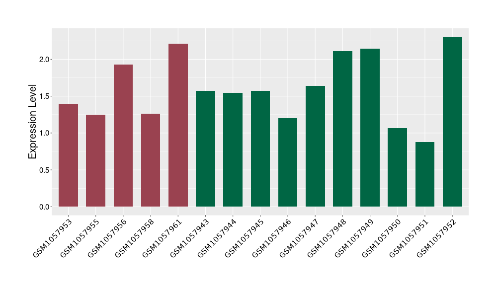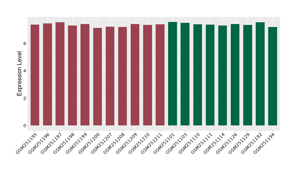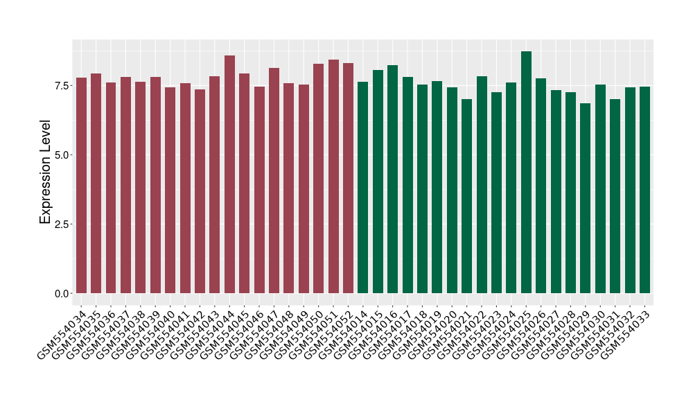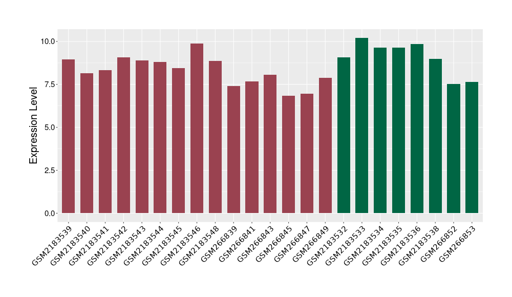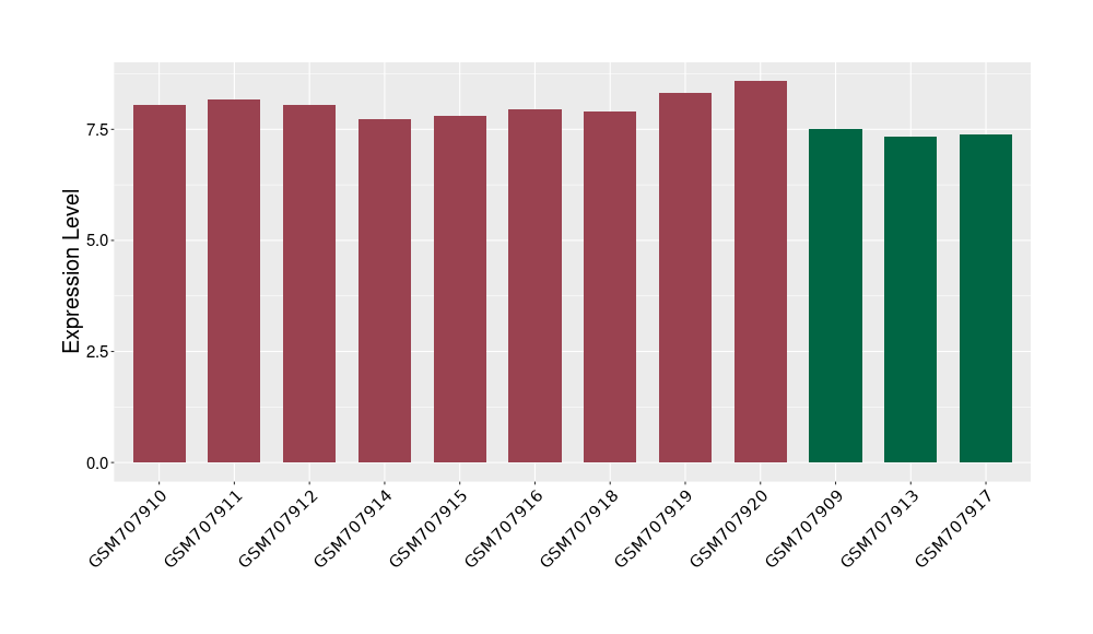 The Expression Level of Disease Section Compare with the Healthy Individual Tissue | p-value:0.077027641; Fold-change:-1.0312186; Z-score:-1.033765015 | ||||