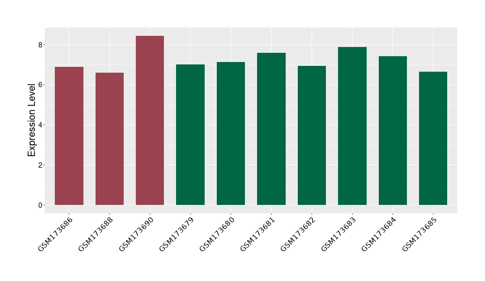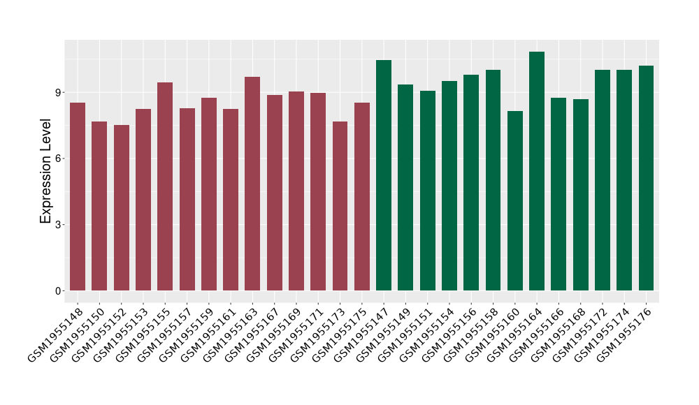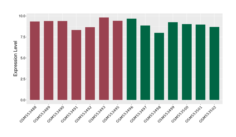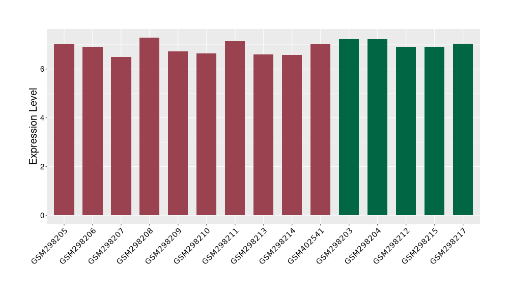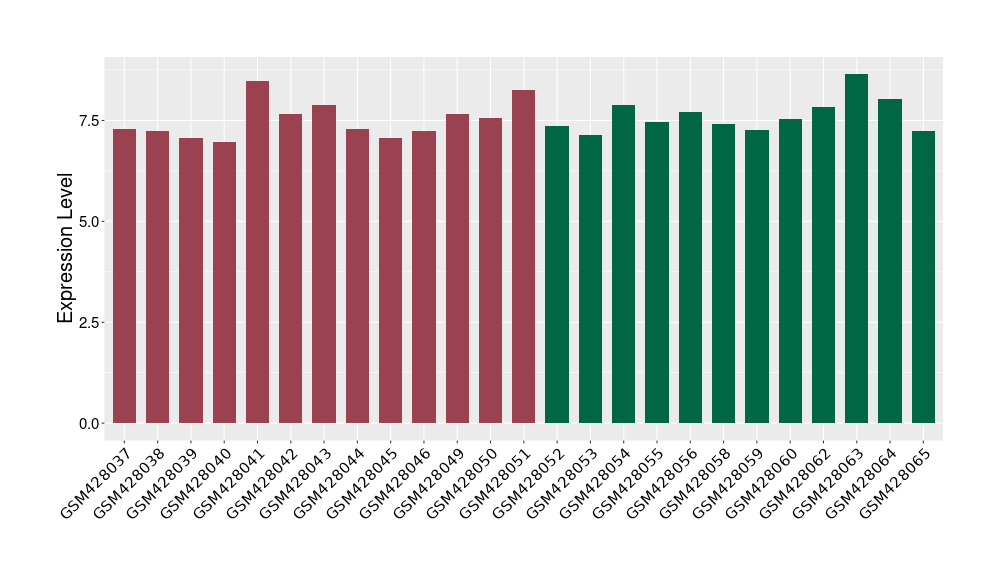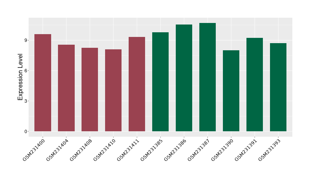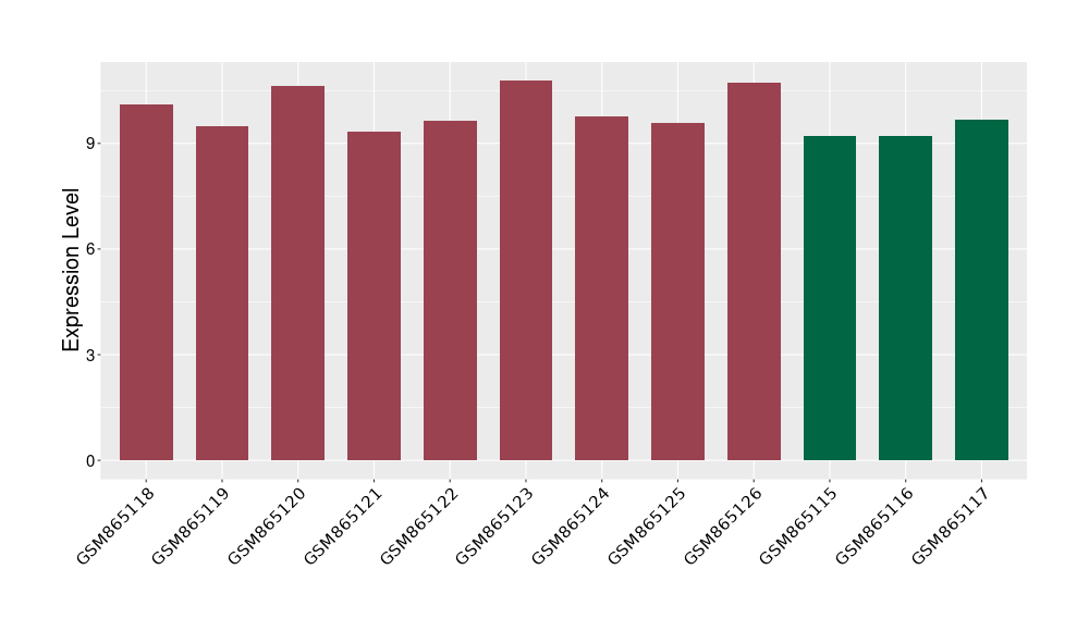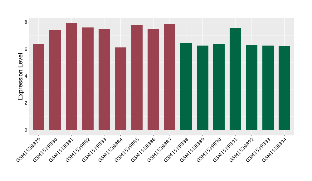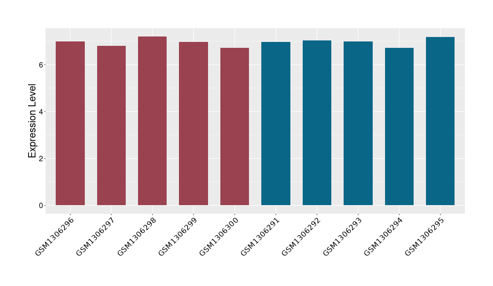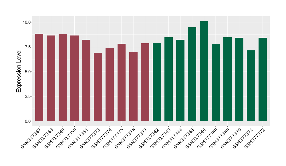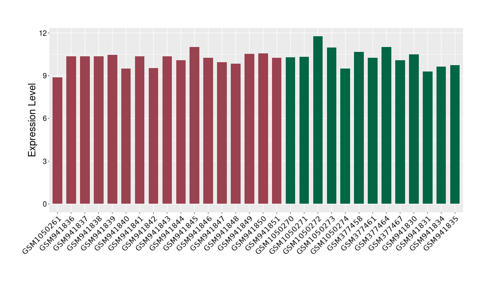 The Expression Level of Disease Section Compare with the Healthy Individual Tissue | p-value:0.077027641; Fold-change:-1.0312186; Z-score:-1.033765015 | ||||