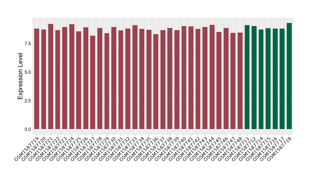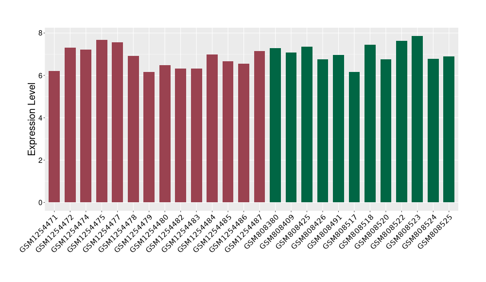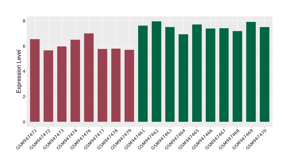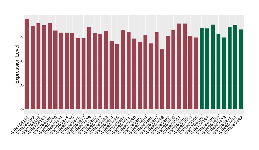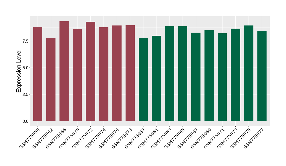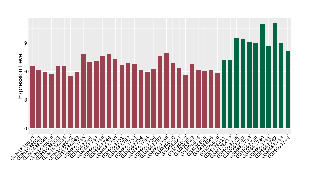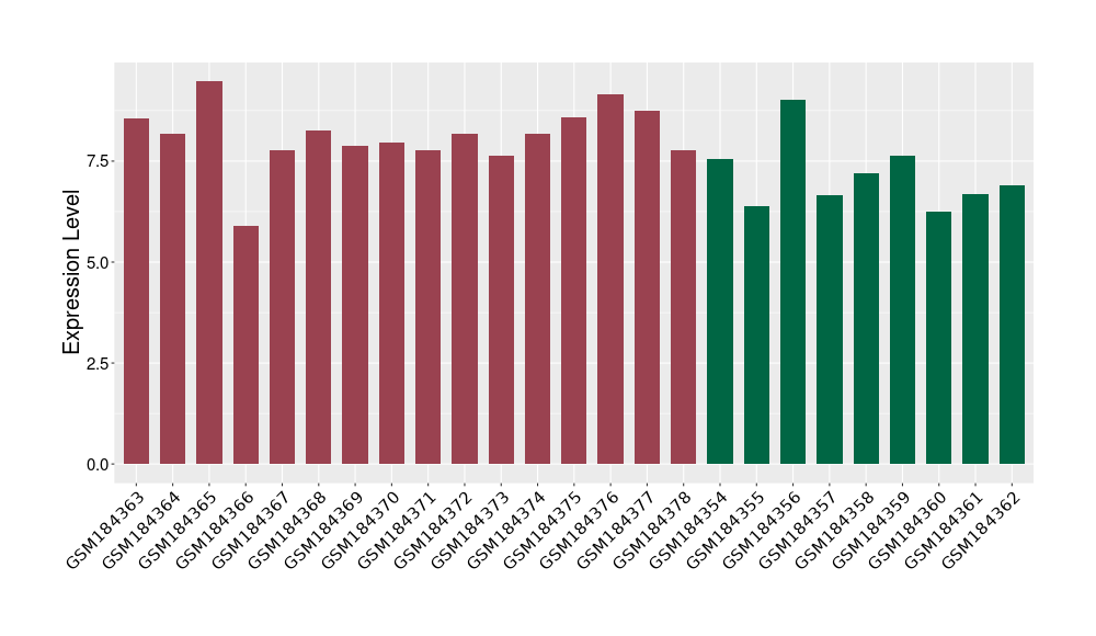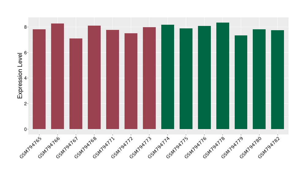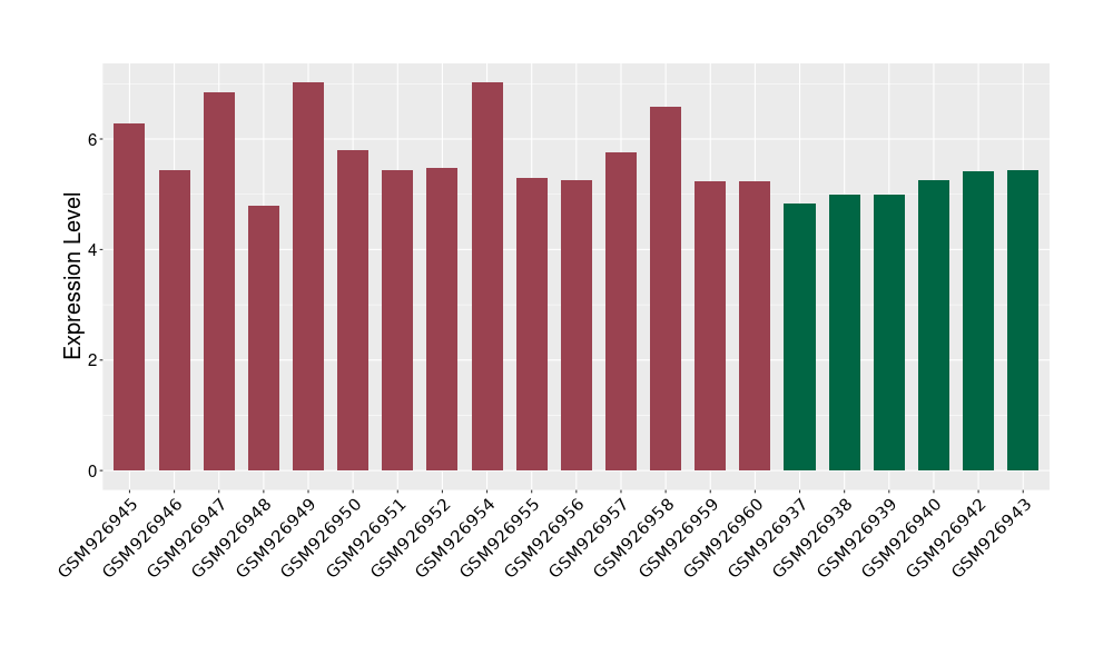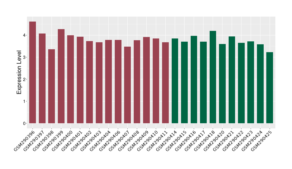 The Expression Level of Disease Section Compare with the Healthy Individual Tissue | p-value:0.077027641; Fold-change:-1.0312186; Z-score:-1.033765015 | ||||