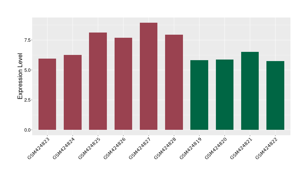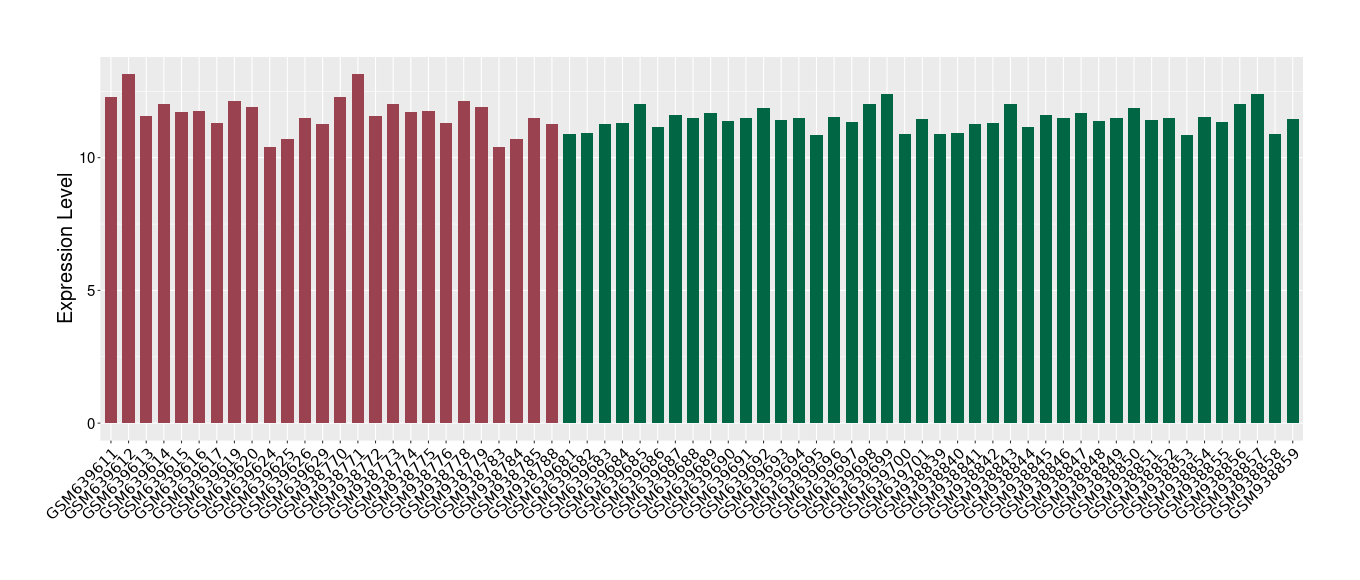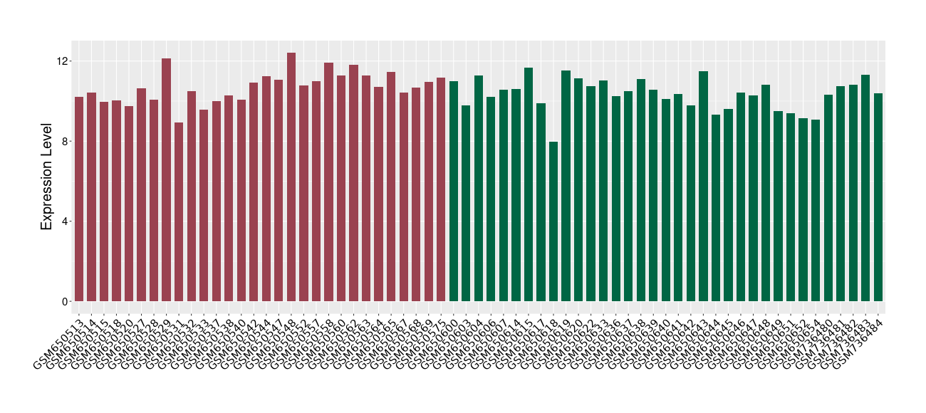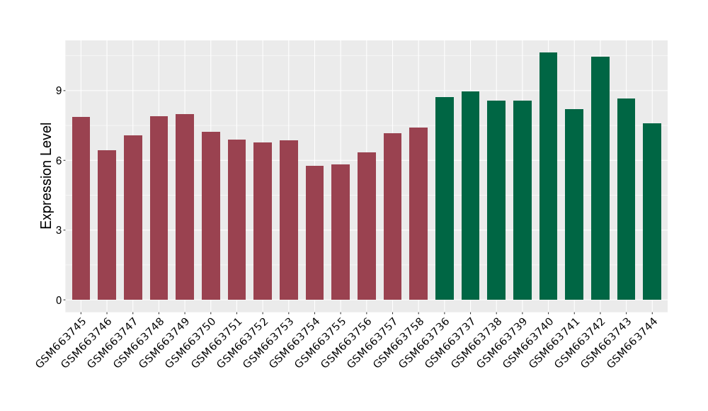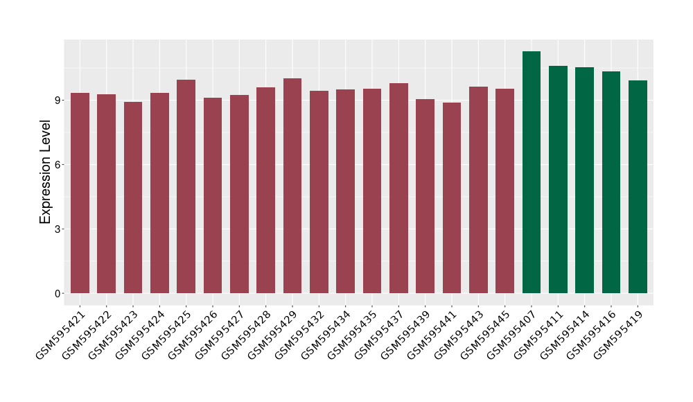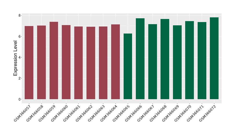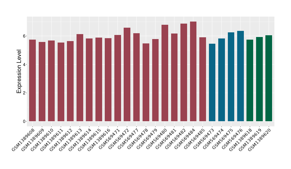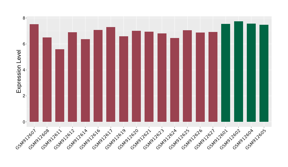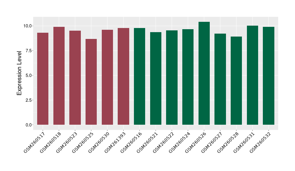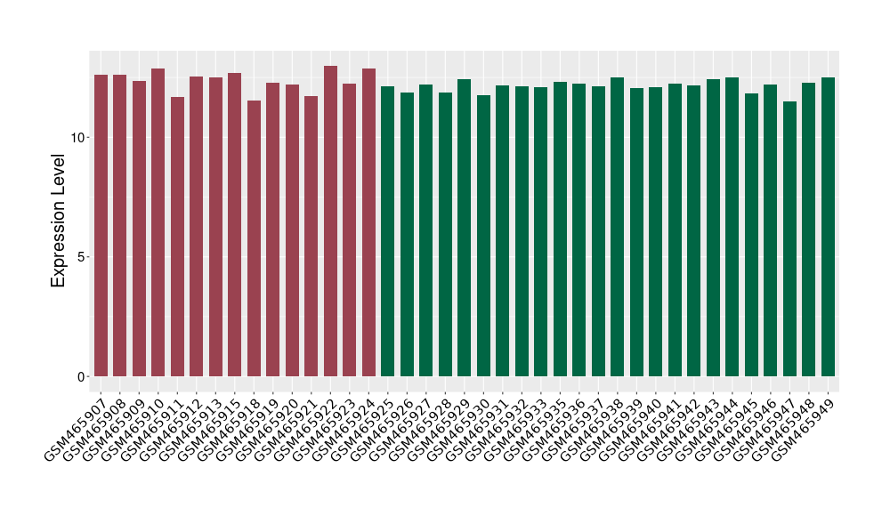 The Expression Level of Disease Section Compare with the Healthy Individual Tissue | p-value:0.077027641; Fold-change:-1.0312186; Z-score:-1.033765015 | ||||
