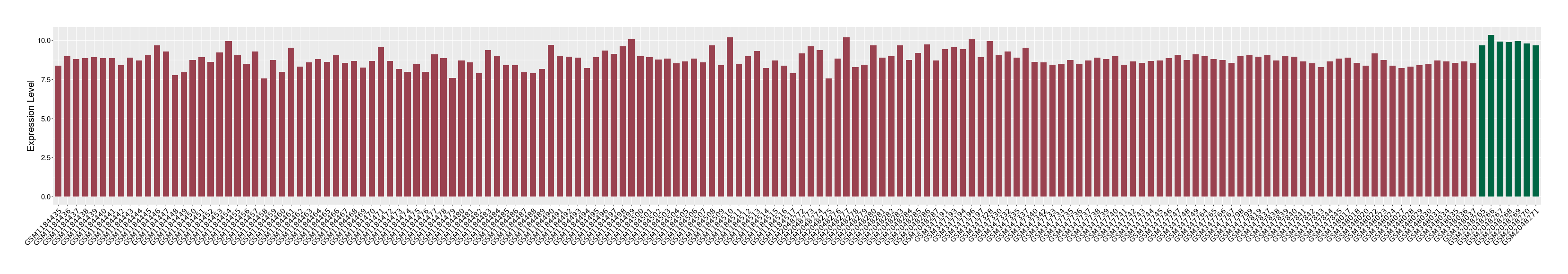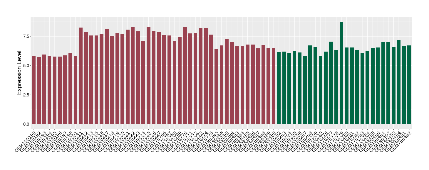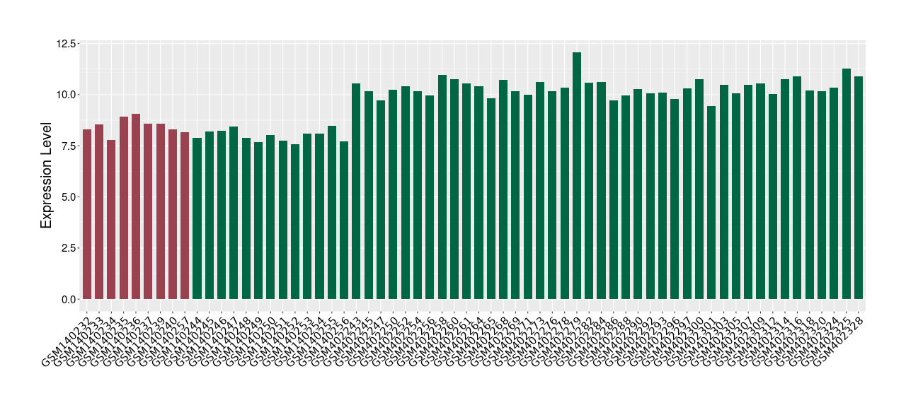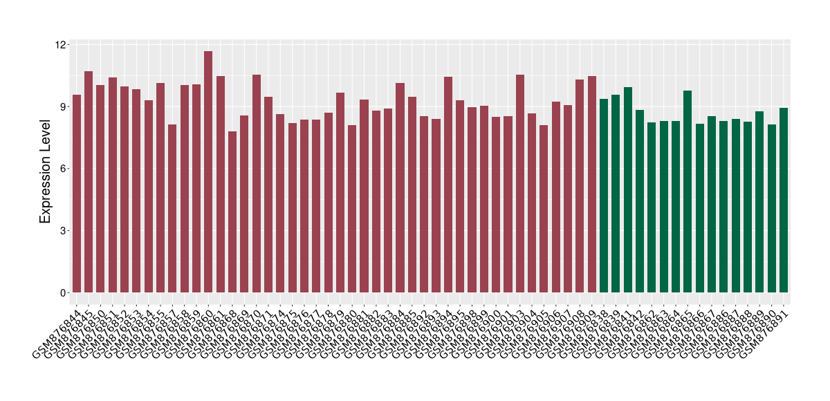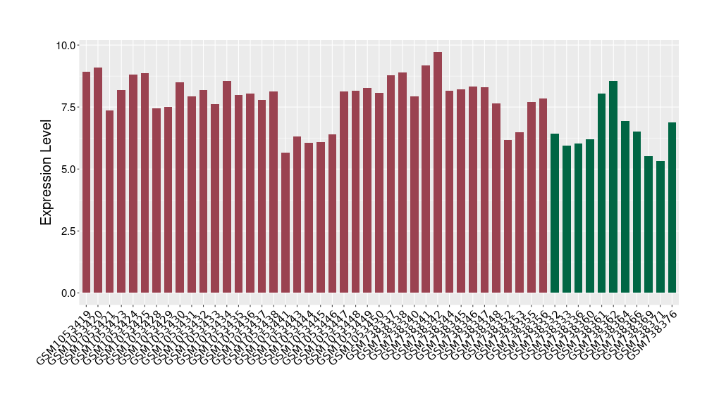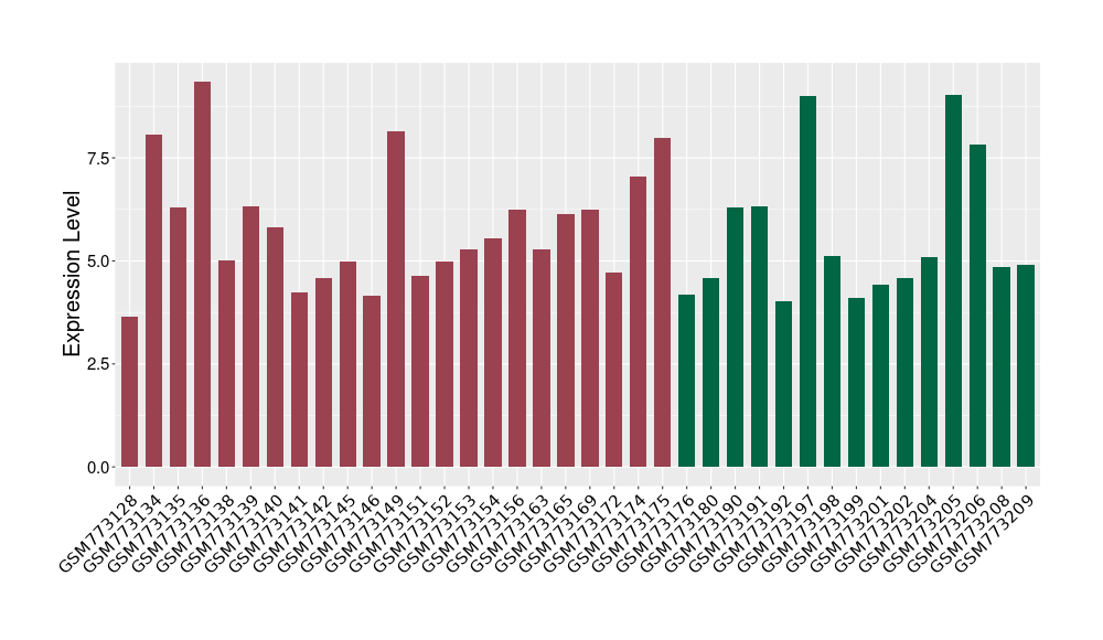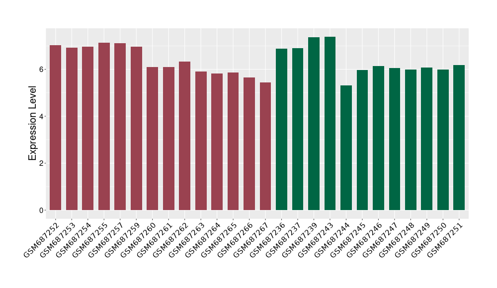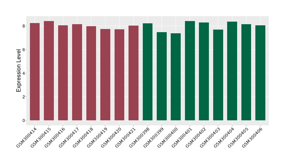 The Expression Level of Disease Section Compare with the Healthy Individual Tissue | p-value:0.077027641; Fold-change:-1.0312186; Z-score:-1.033765015 | ||||