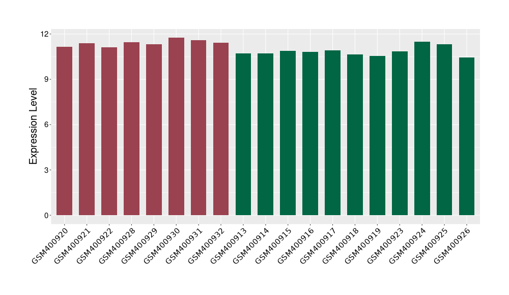 The Expression Level of Disease Section Compare with the Healthy Individual Tissue | p-value:0.000383287; Fold-change:0.936709537; Z-score:1.607084267 | ||||