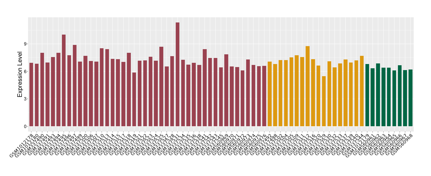 The Expression Level of Disease Section Compare with the Healthy Individual Tissue | p-value:0.85556281; Fold-change:-0.117885862; Z-score:-0.302914413 | ||||