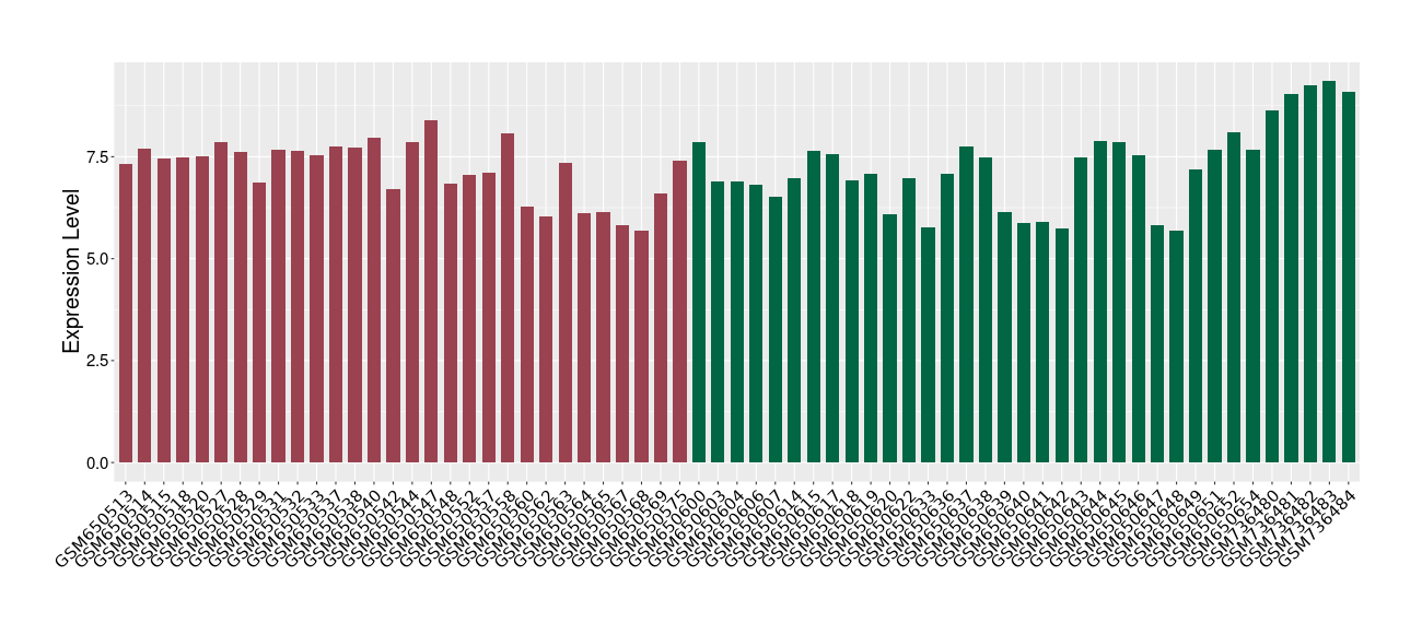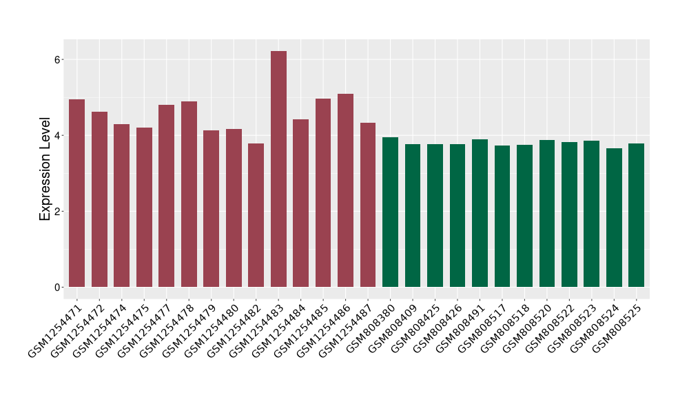 The Expression Level of Disease Section Compare with the Healthy Individual Tissue | p-value:0.016820779; Fold-change:0.315611786; Z-score:1.273882146 | ||||