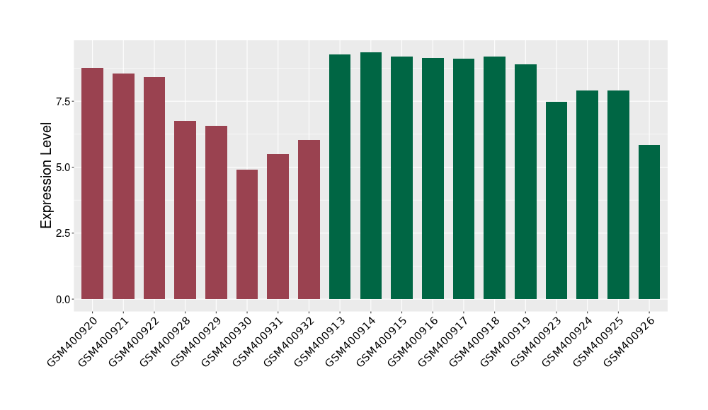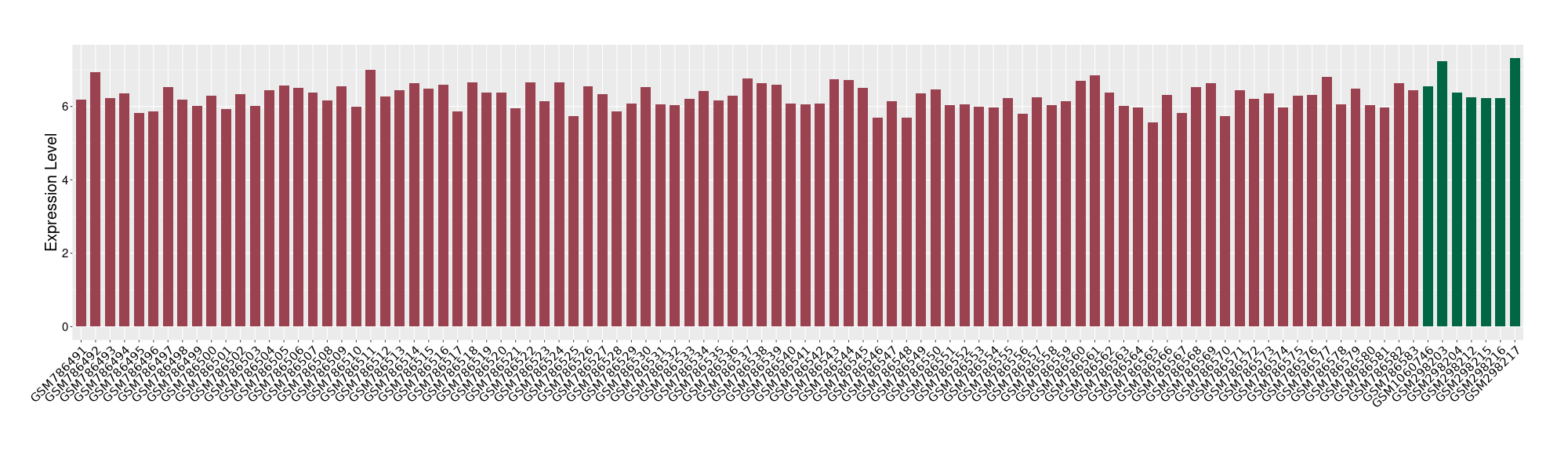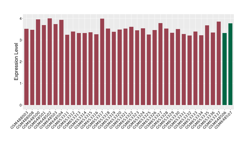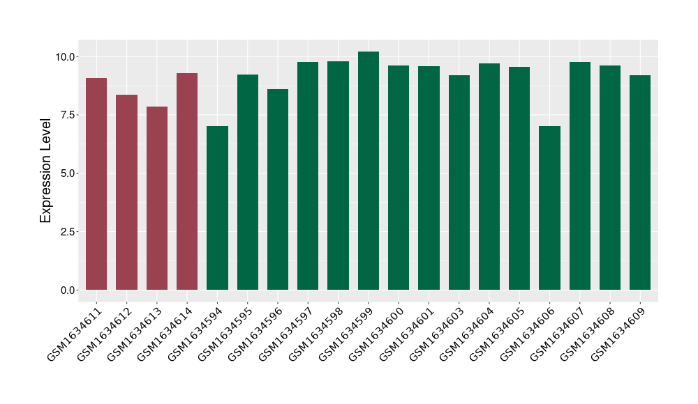 The Expression Level of Disease Section Compare with the Healthy Individual Tissue | p-value:0.006214858; Fold-change:-0.36757466; Z-score:-0.737050148 | ||||