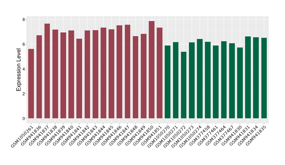 The Expression Level of Disease Section Compare with the Healthy Individual Tissue | p-value:0.15748373; Fold-change:0.146750252; Z-score:1.885685984 | ||||