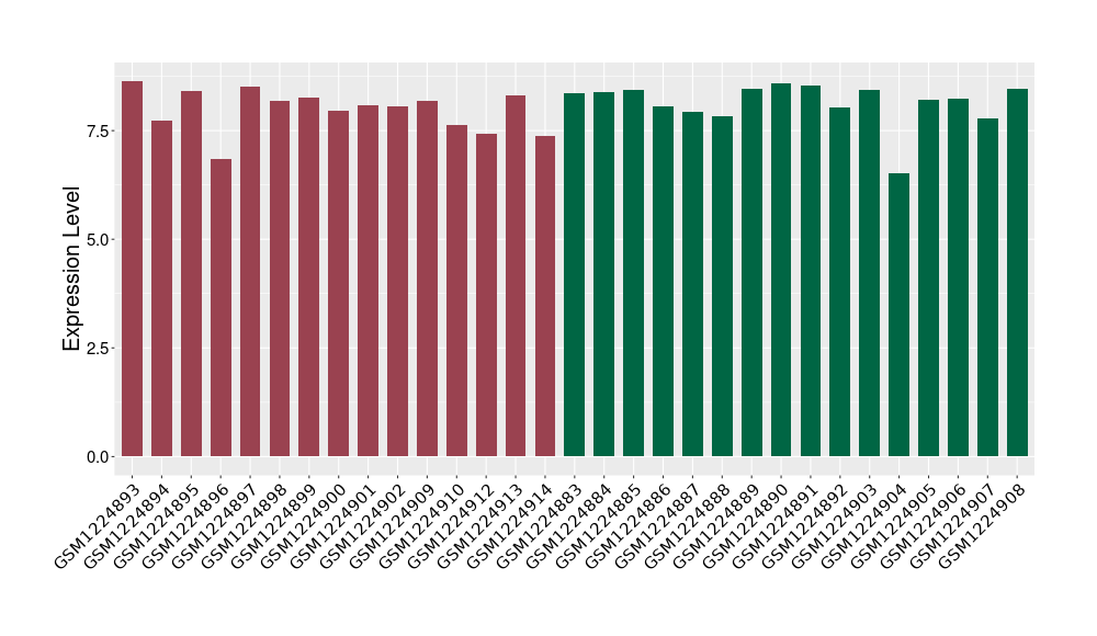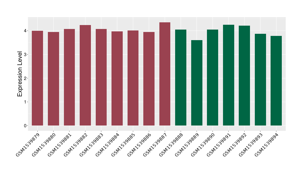 The Expression Level of Disease Section Compare with the Healthy Individual Tissue | p-value:0.66501391; Fold-change:-0.105937476; Z-score:-0.151535695 | ||||