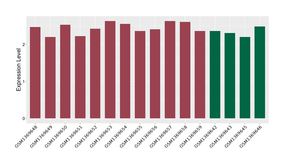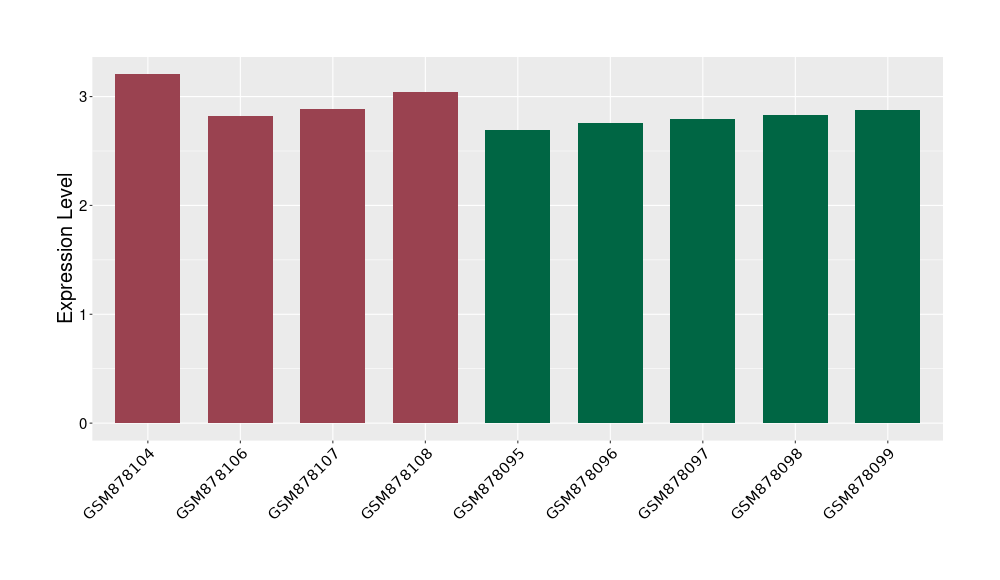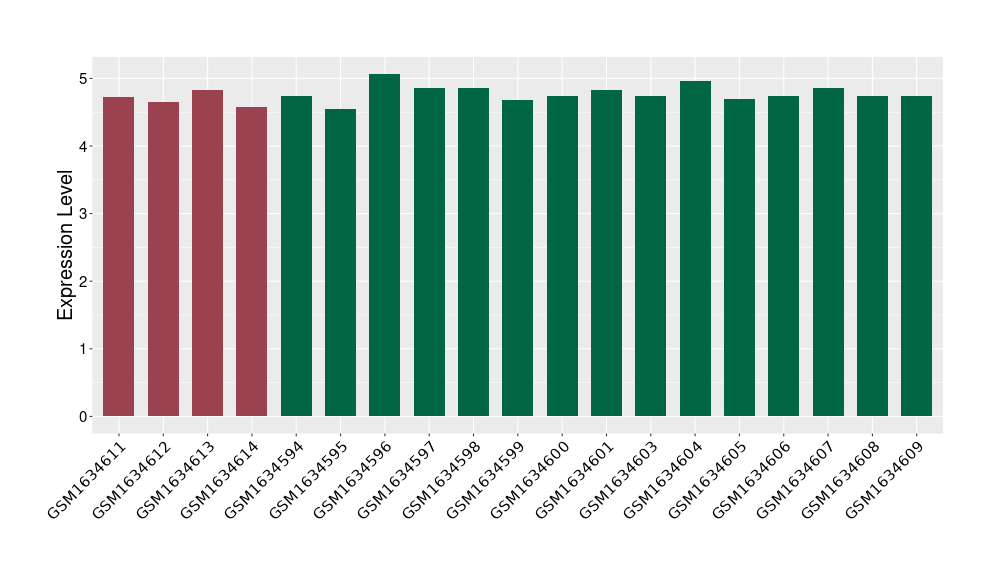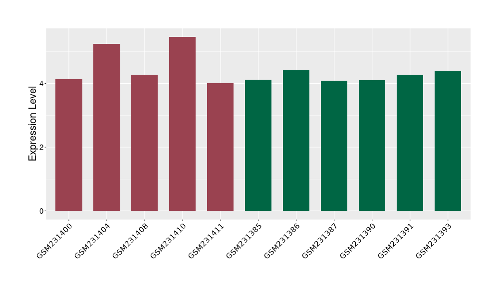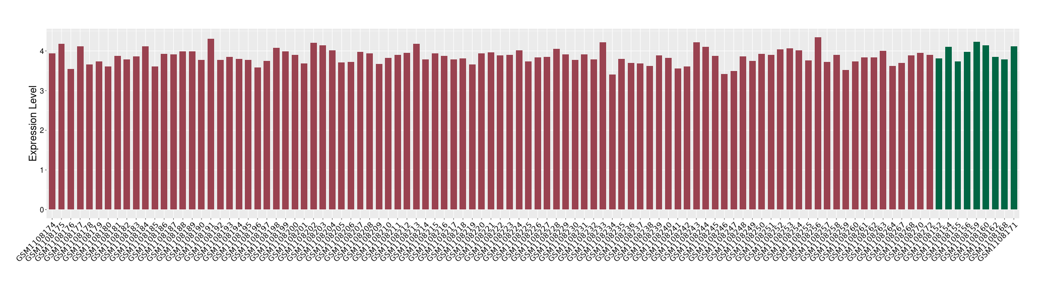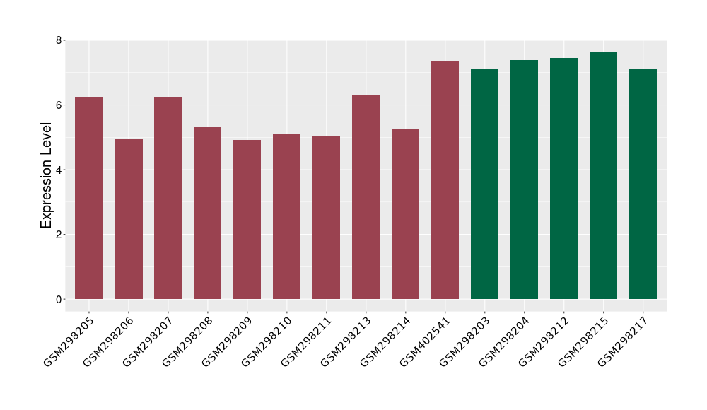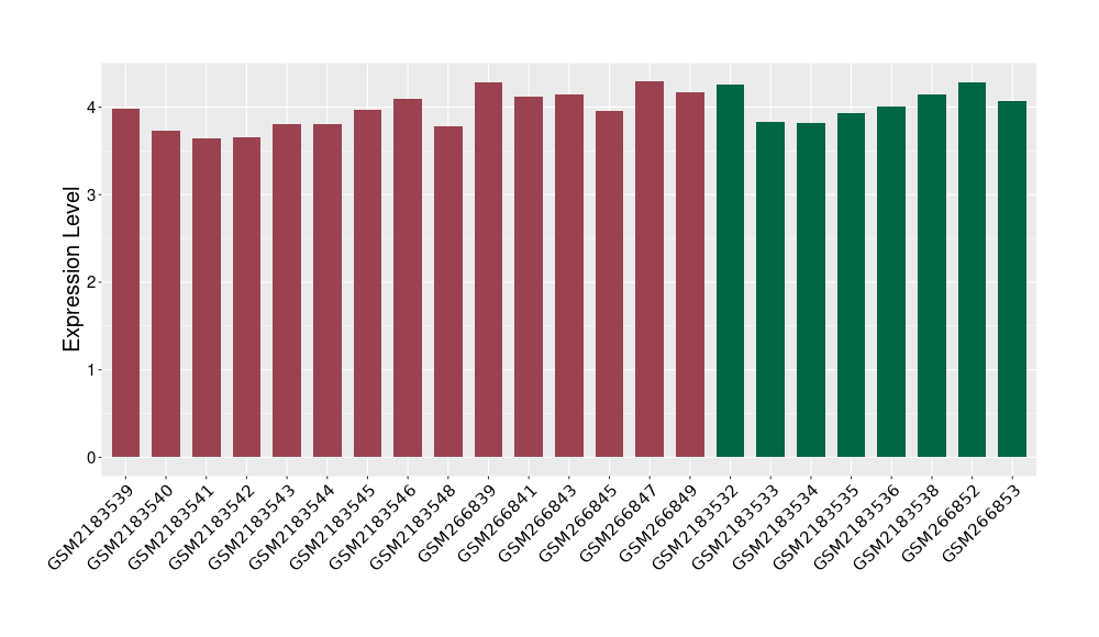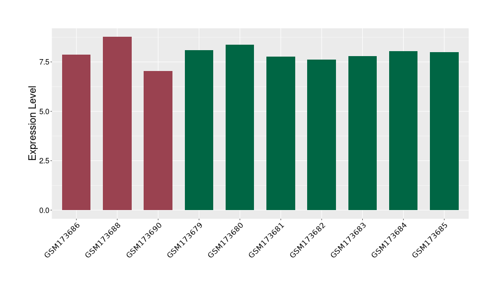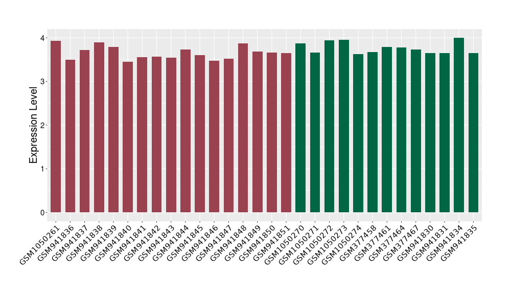 The Expression Level of Disease Section Compare with the Healthy Individual Tissue | p-value:0.9057599; Fold-change:-0.136018257; Z-score:-0.545152463 | ||||
