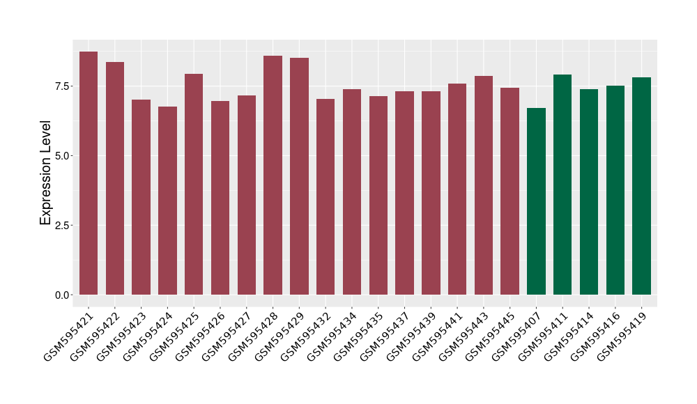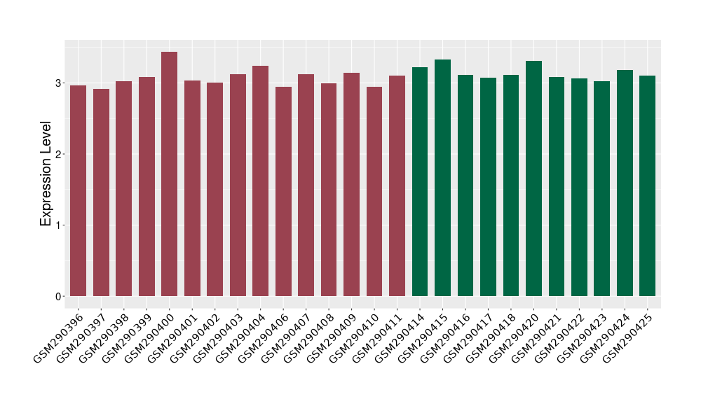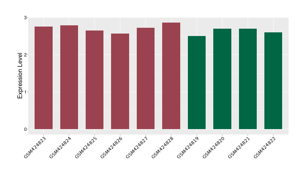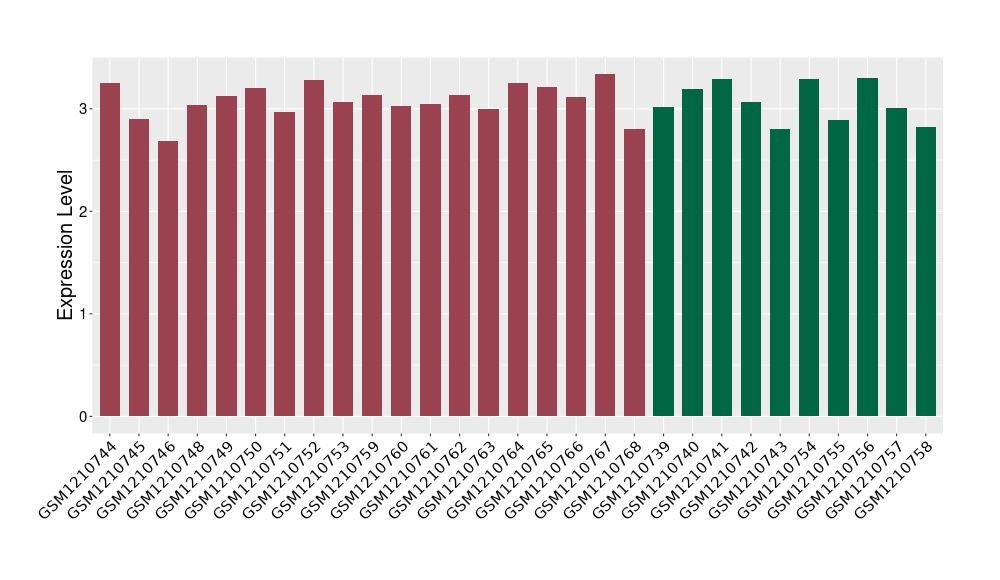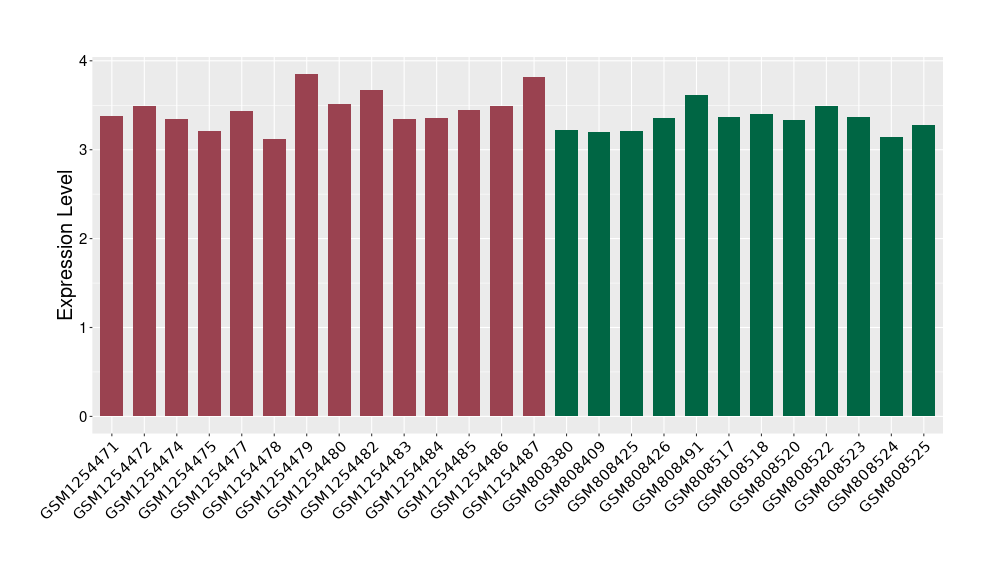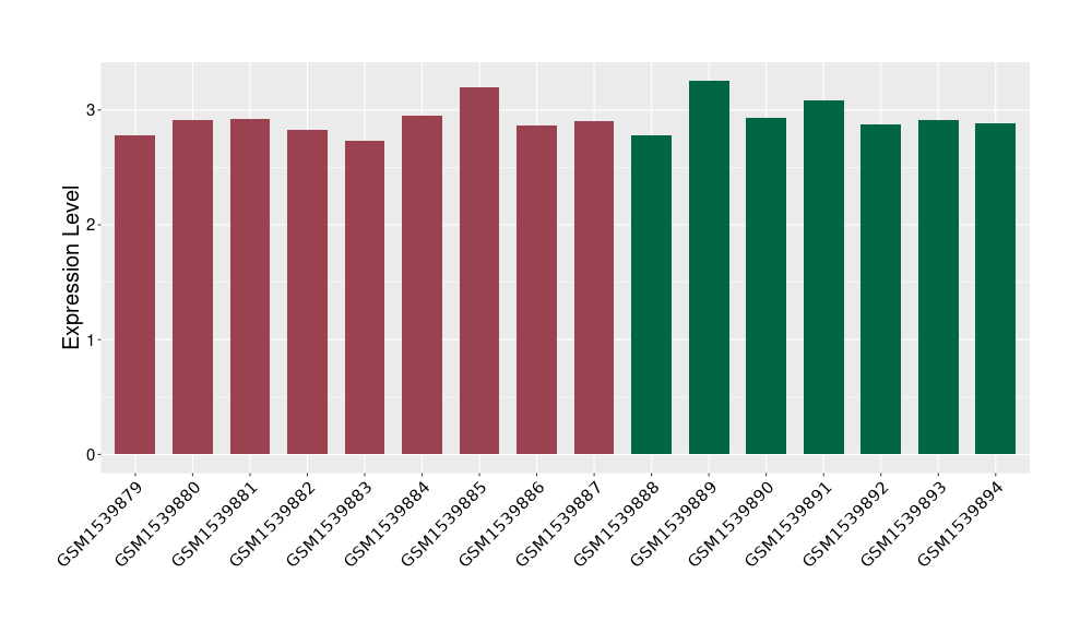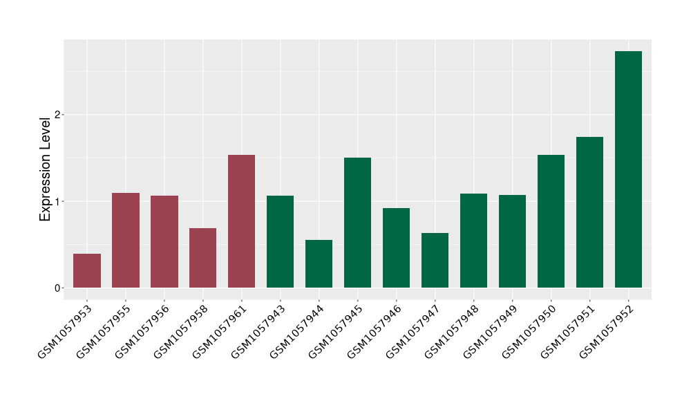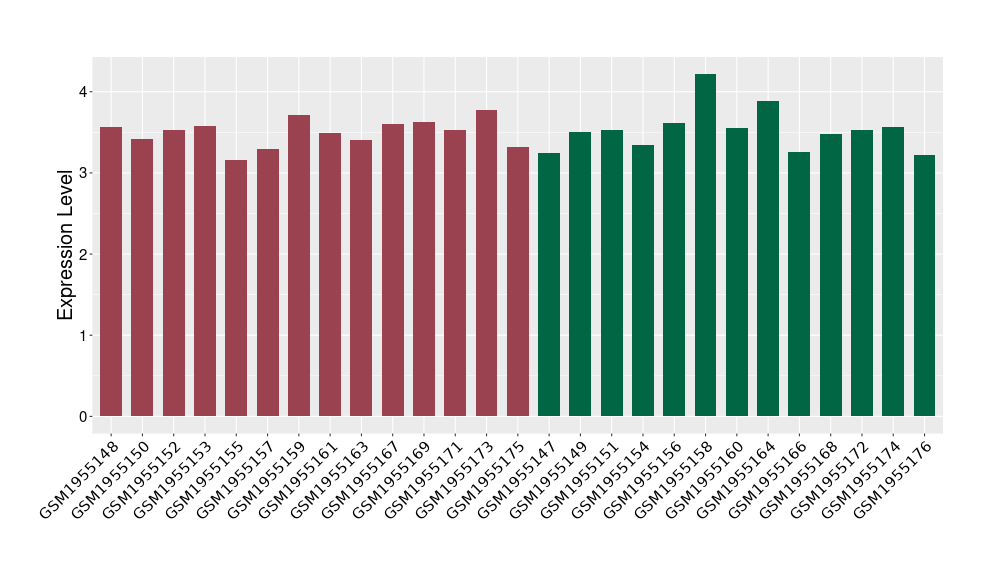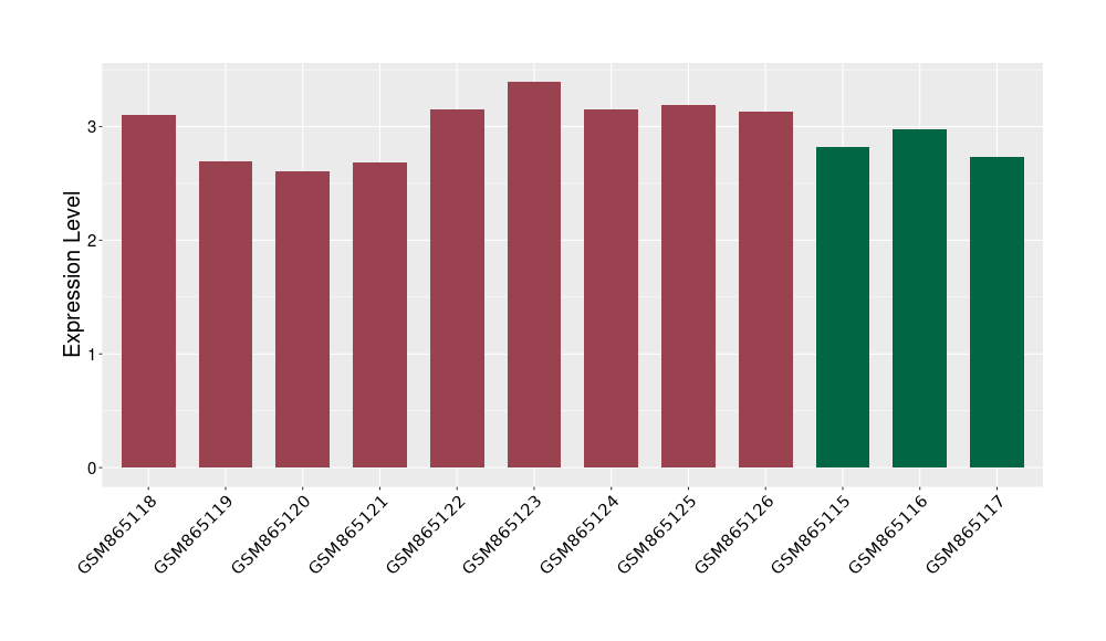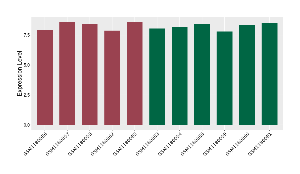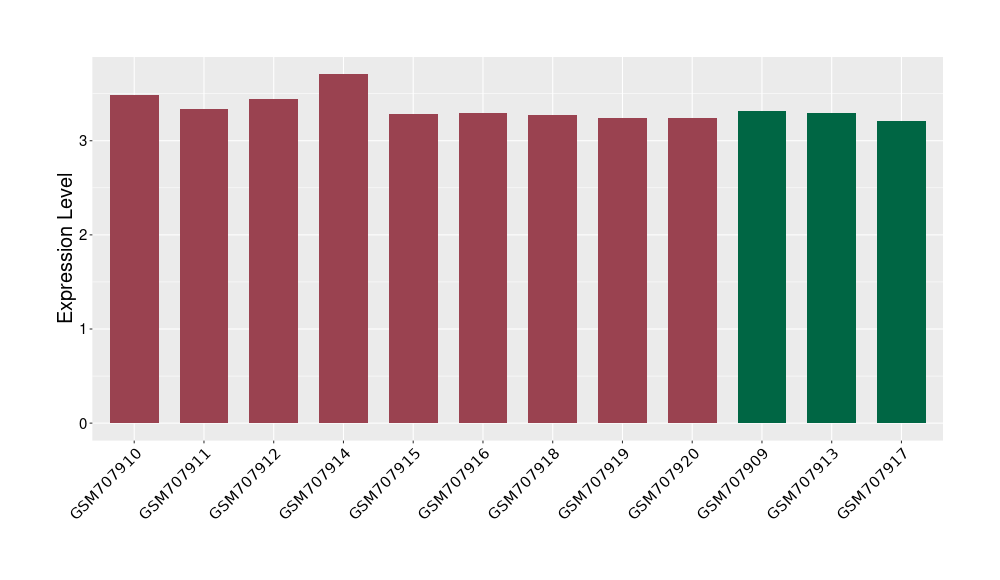 The Expression Level of Disease Section Compare with the Healthy Individual Tissue | p-value:0.9057599; Fold-change:-0.136018257; Z-score:-0.545152463 | ||||