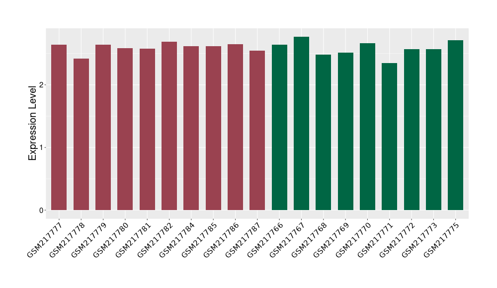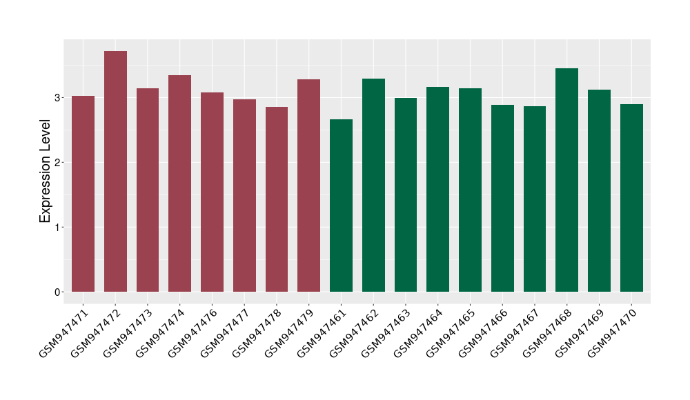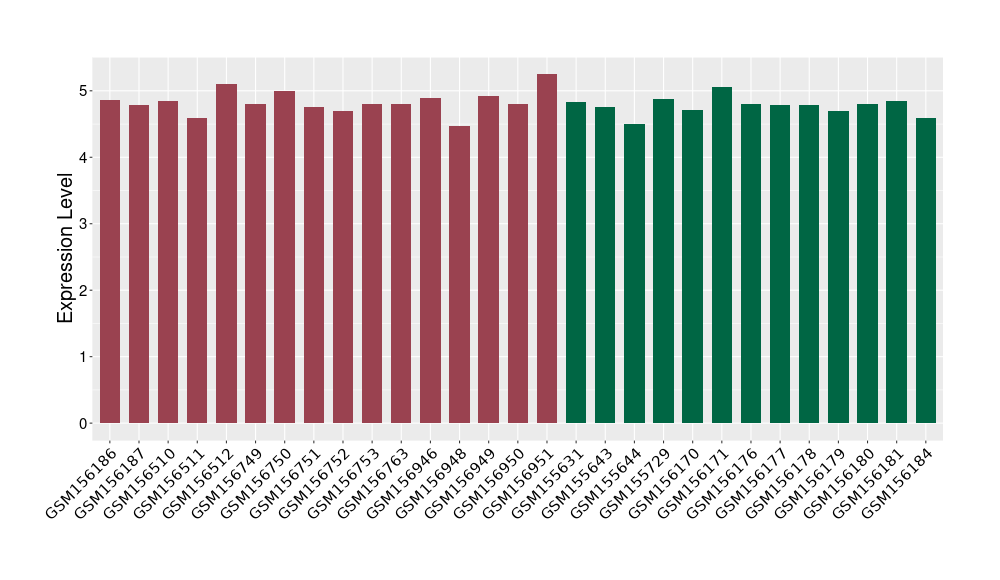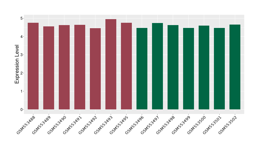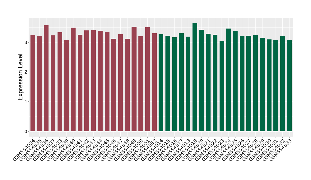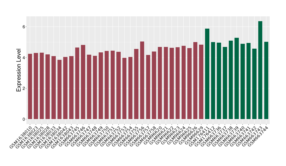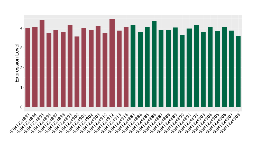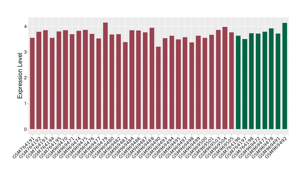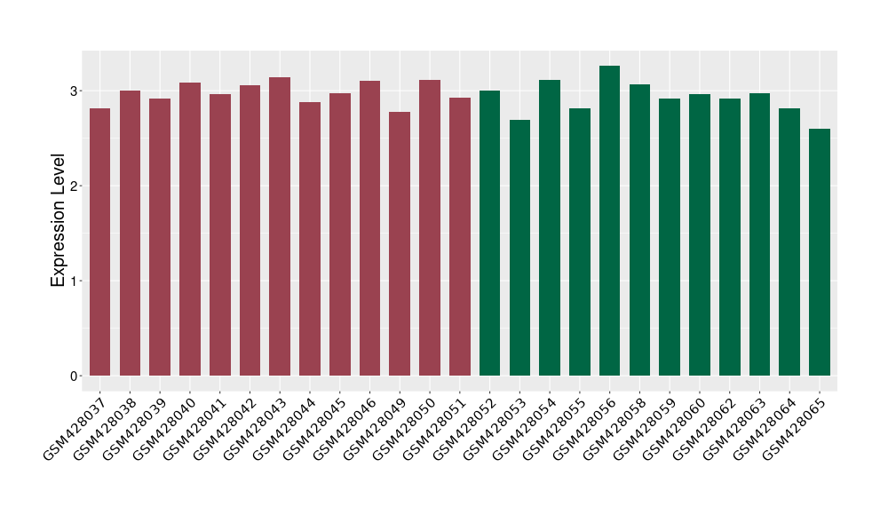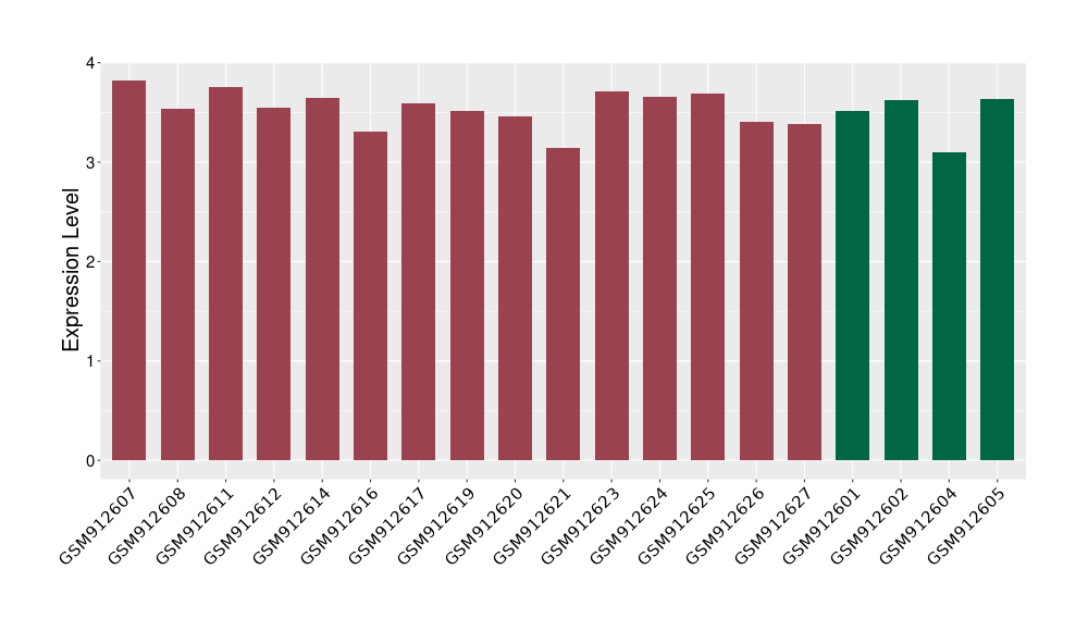 The Expression Level of Disease Section Compare with the Healthy Individual Tissue | p-value:0.9057599; Fold-change:-0.136018257; Z-score:-0.545152463 | ||||