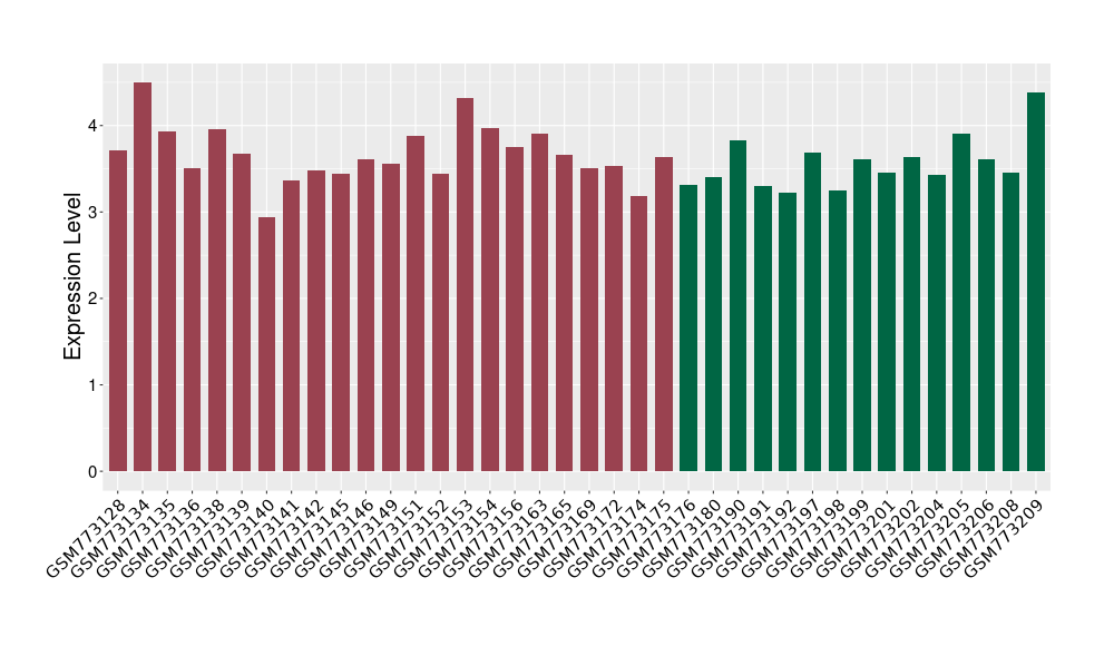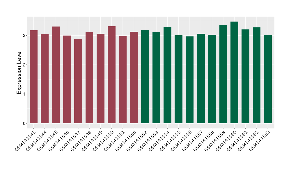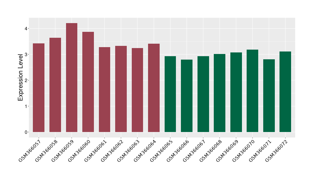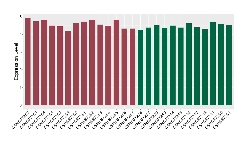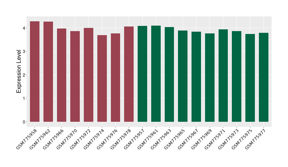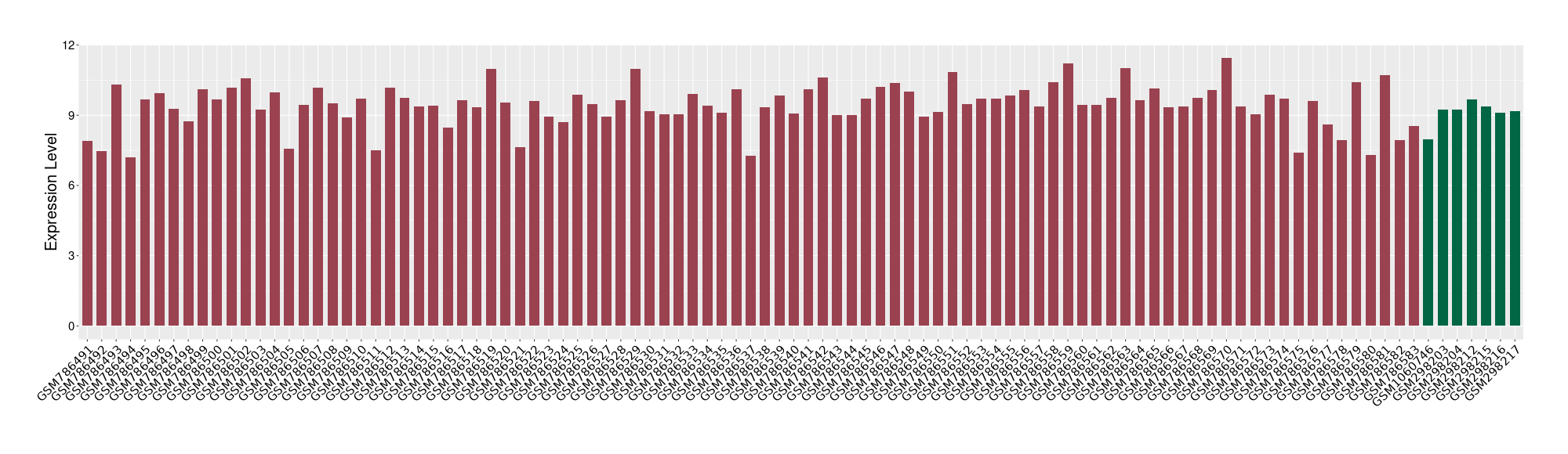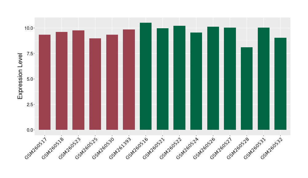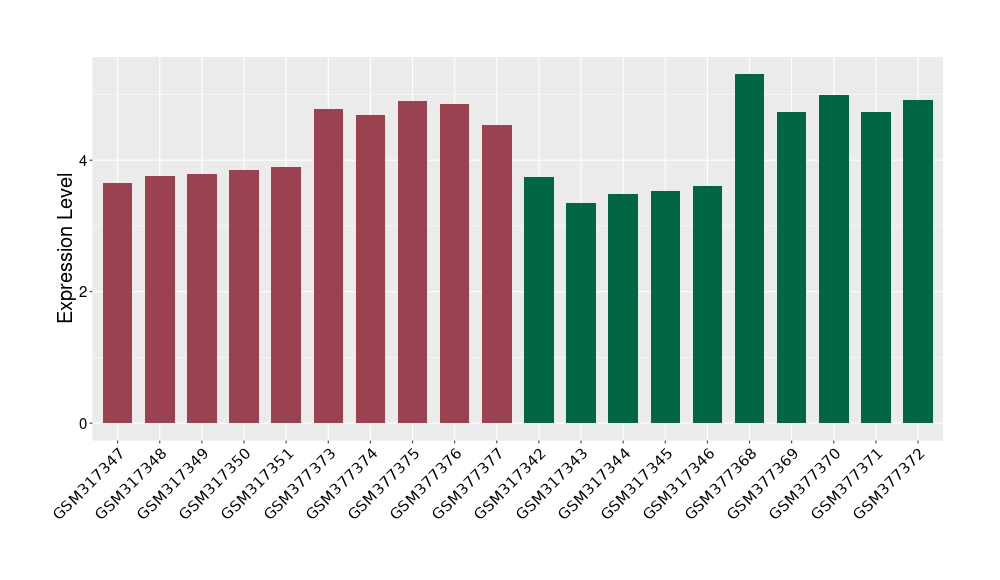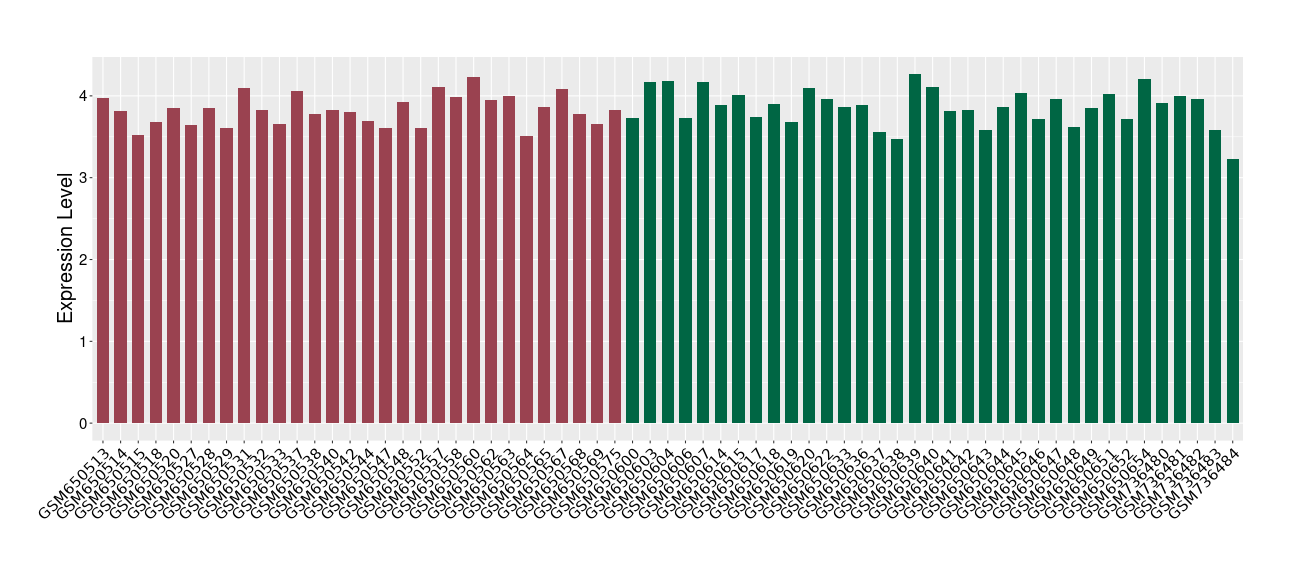 The Expression Level of Disease Section Compare with the Healthy Individual Tissue | p-value:0.9057599; Fold-change:-0.136018257; Z-score:-0.545152463 | ||||