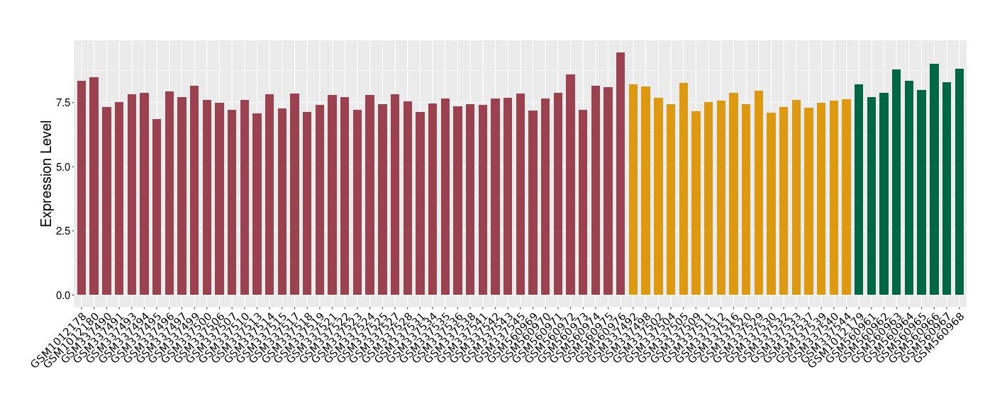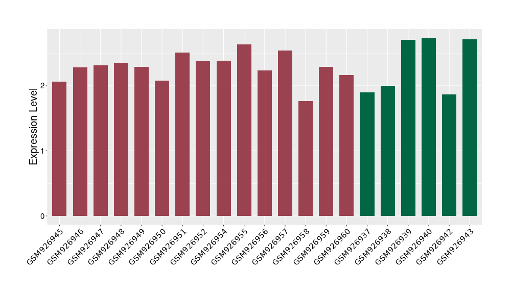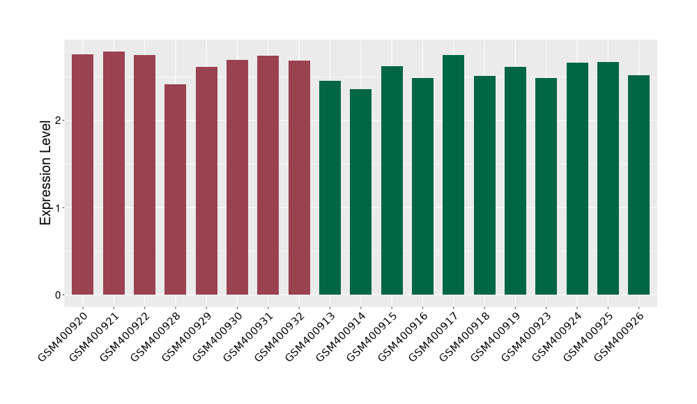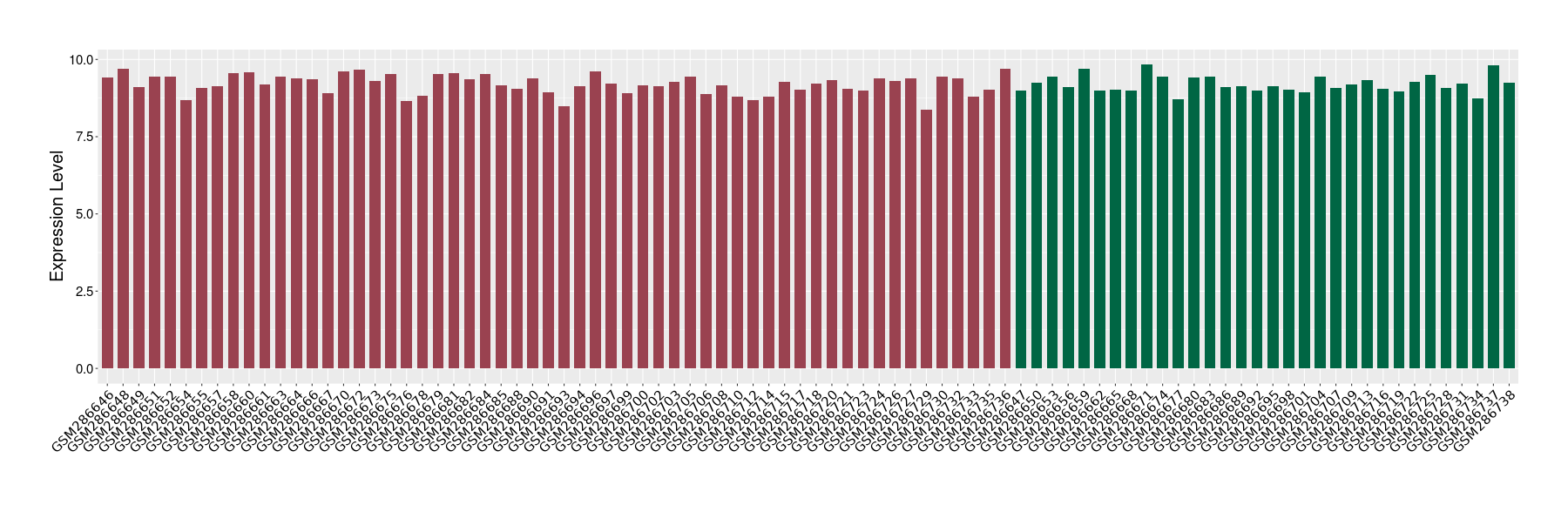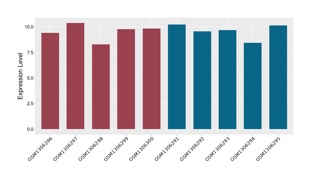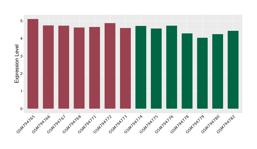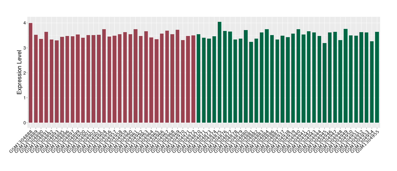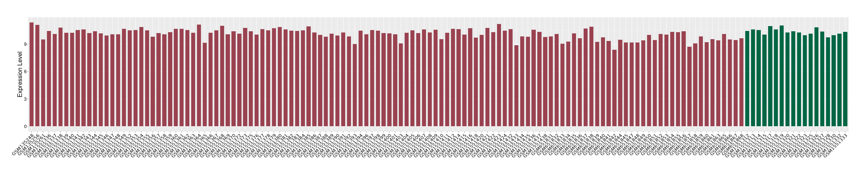 The Expression Level of Disease Section Compare with the Healthy Individual Tissue | p-value:0.9057599; Fold-change:-0.136018257; Z-score:-0.545152463 | ||||