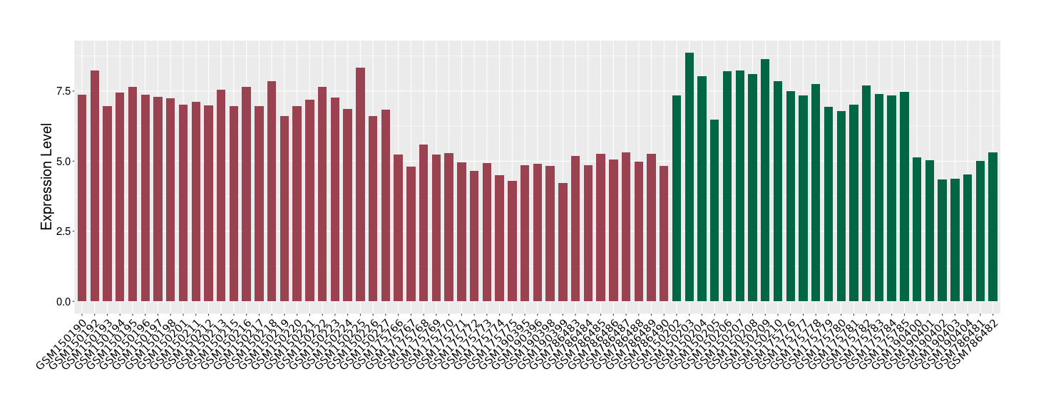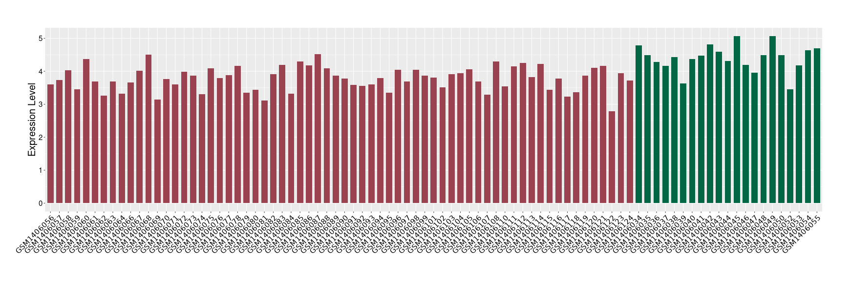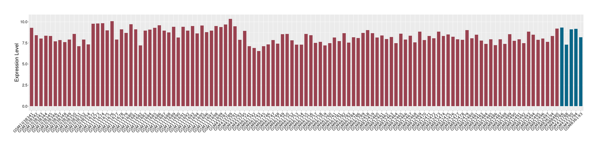 The Expression Level of Disease Section Compare with the Adjacent Tissue | p-value:6.23E-43; Fold-change:-1.090166193; Z-score:-4.034988638 | ||||