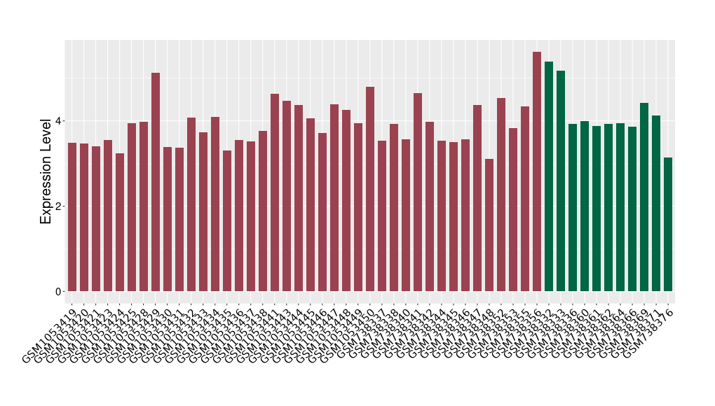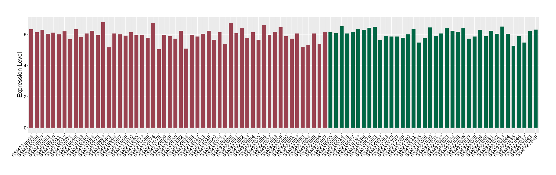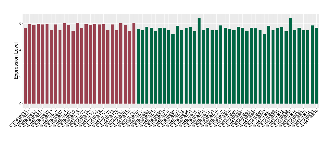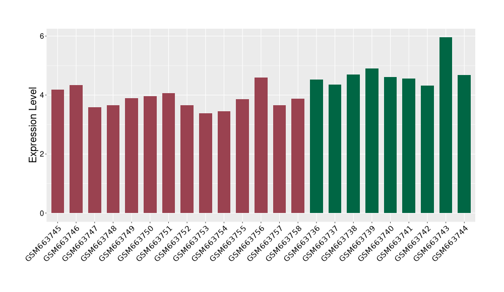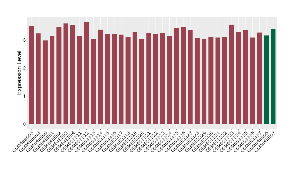 The Expression Level of Disease Section Compare with the Healthy Individual Tissue | p-value:0.593108948; Fold-change:-0.01635385; Z-score:-0.064229875 | ||||
