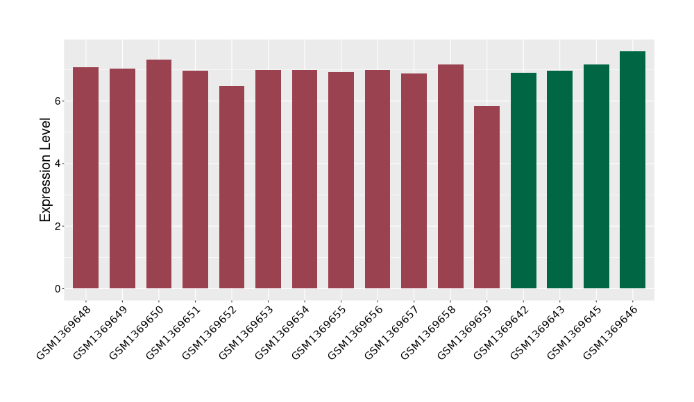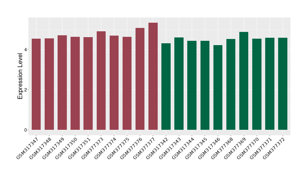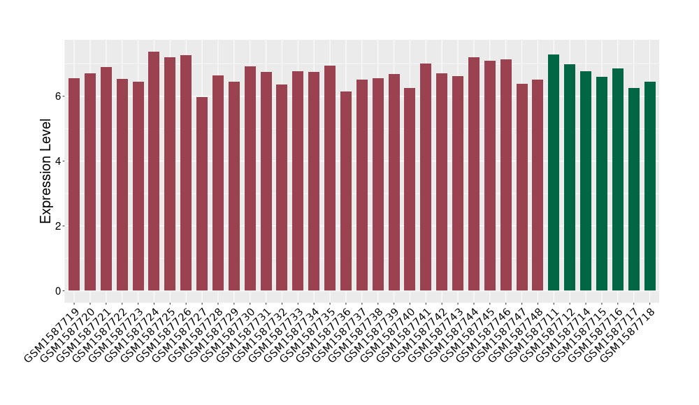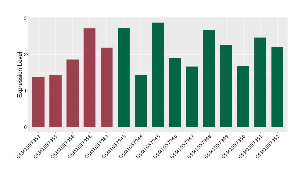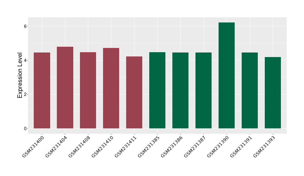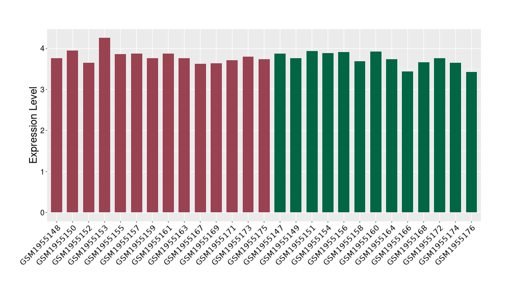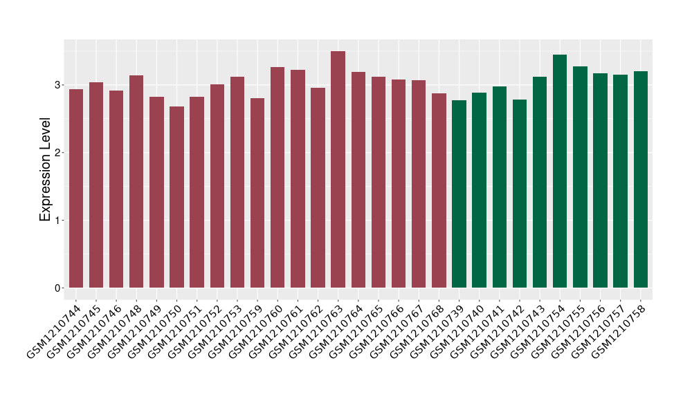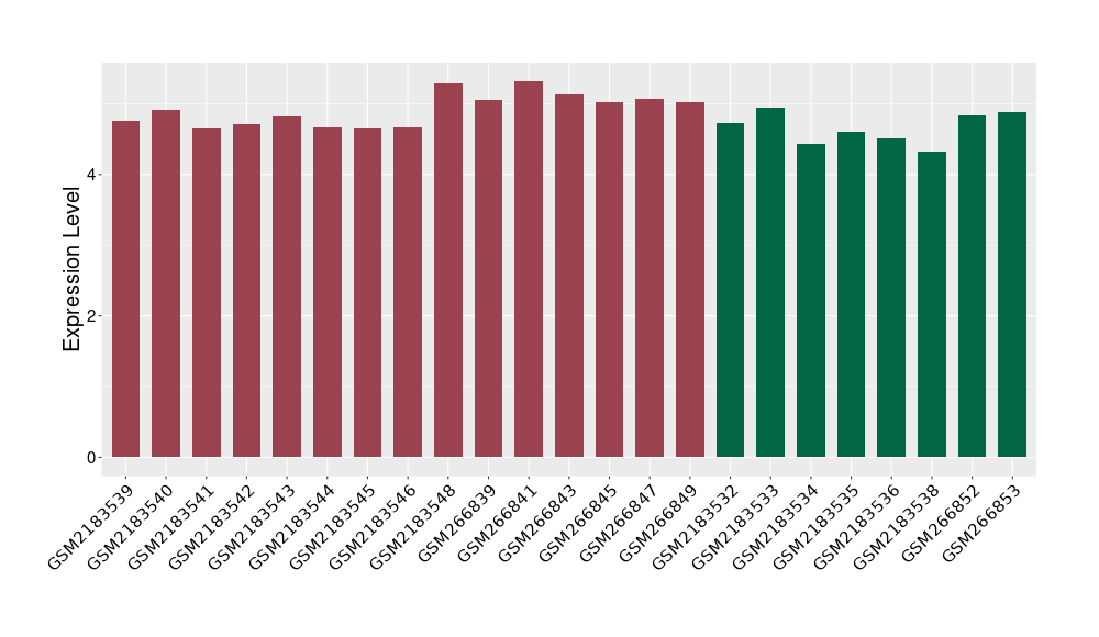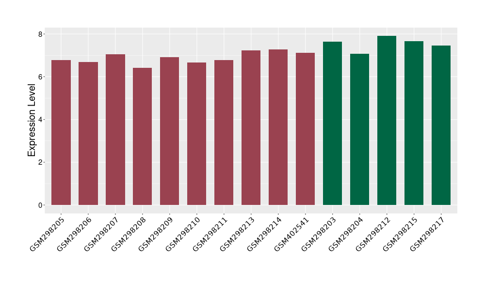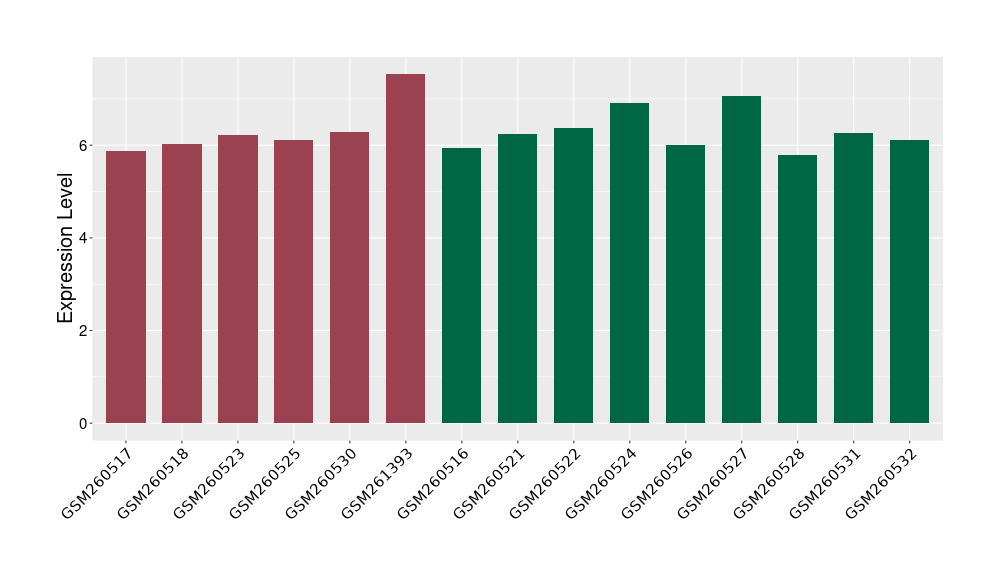 | The Expression Level of Disease Section Compare with the Healthy Individual Tissue | p-value:0.000634175; Fold-change:-0.987519728; Z-score:-1.453786598 | ||||