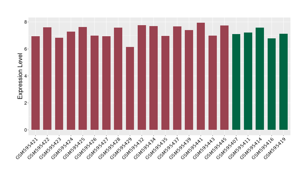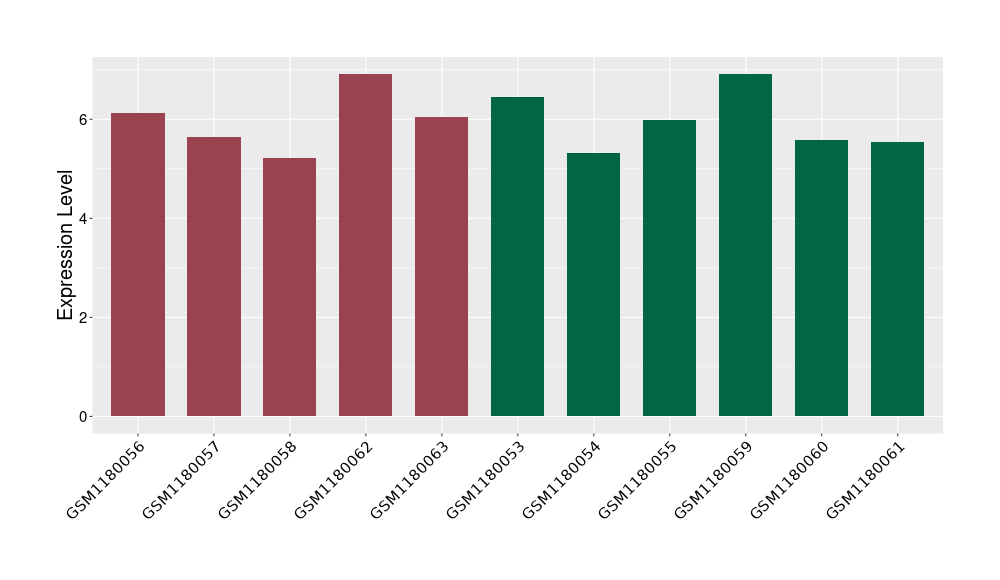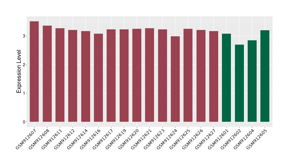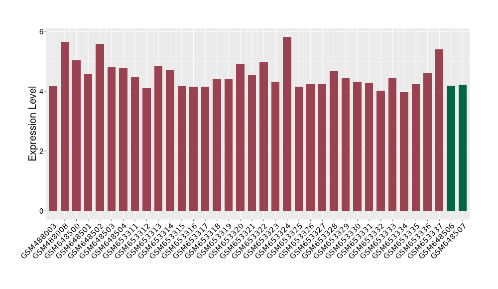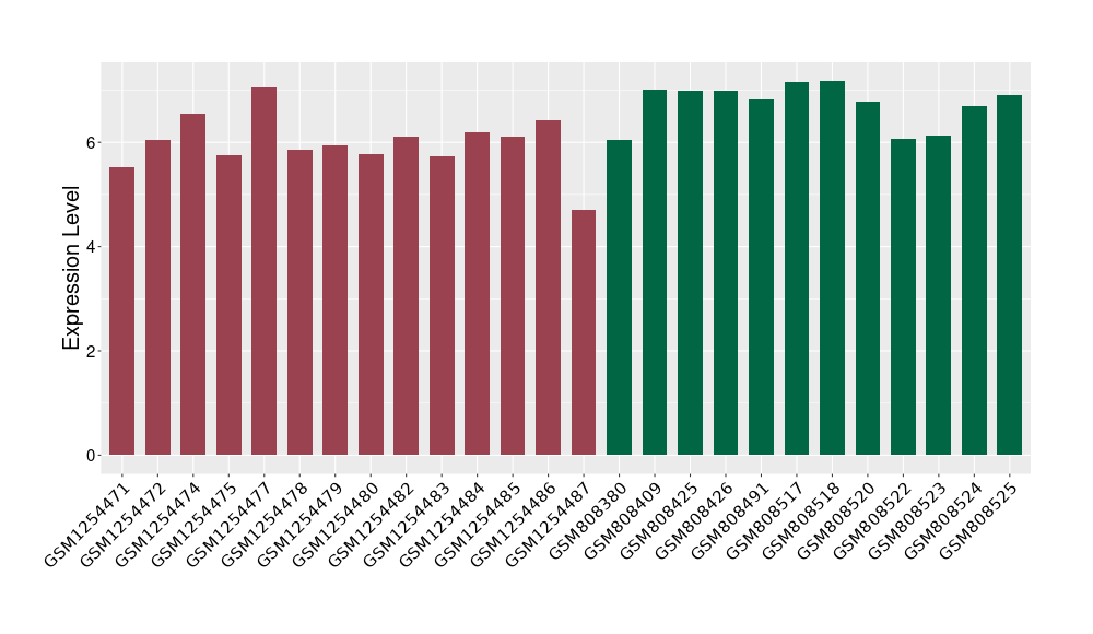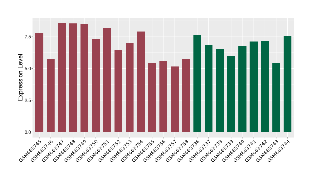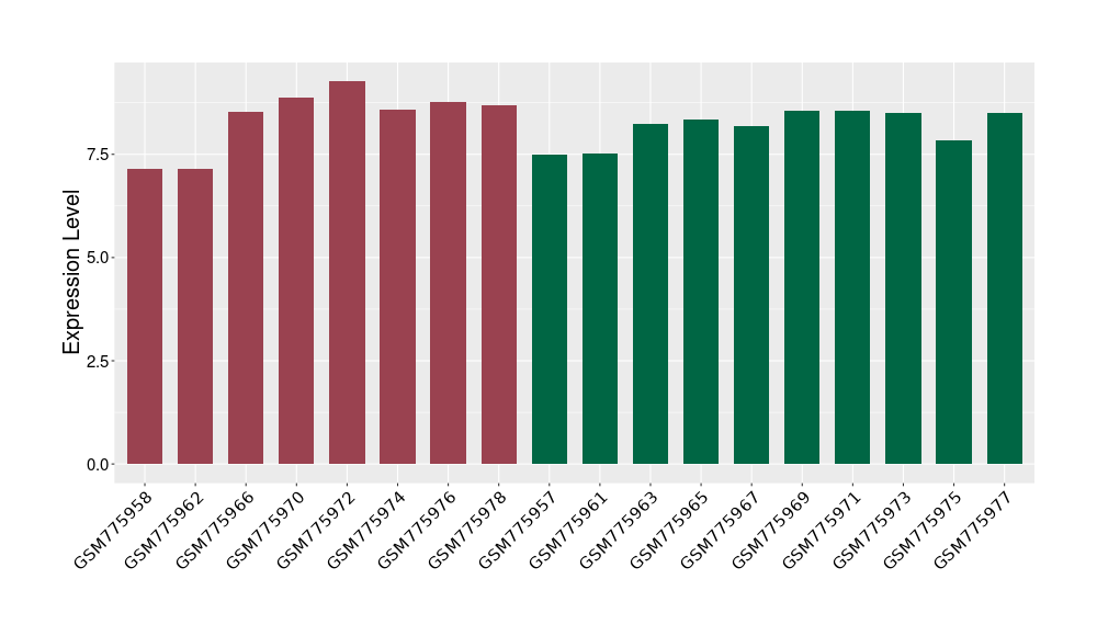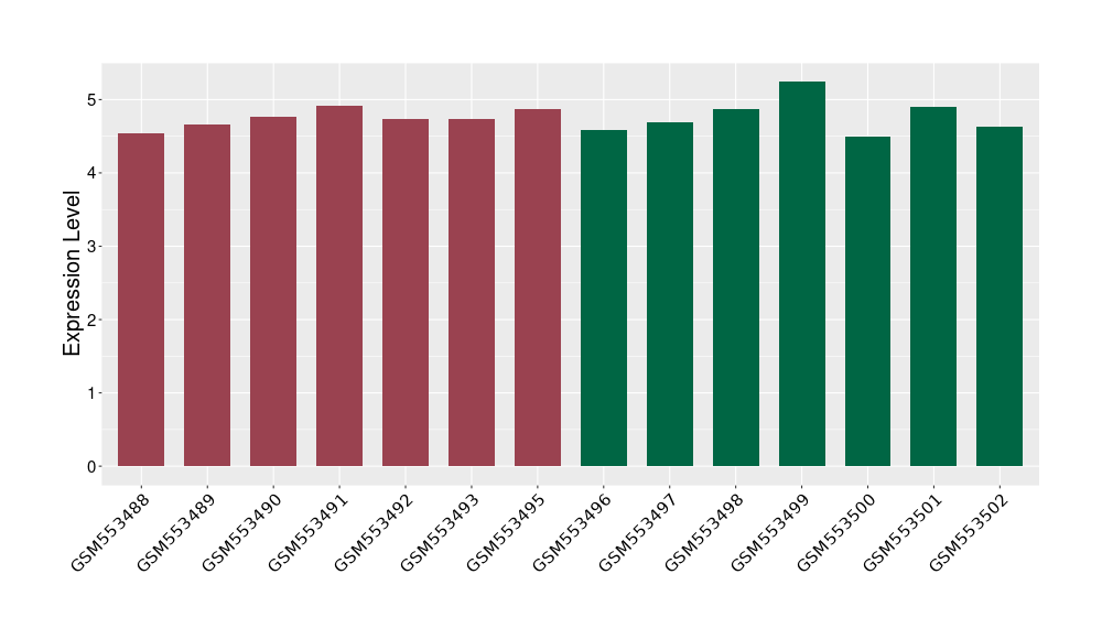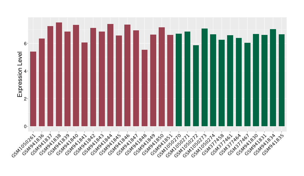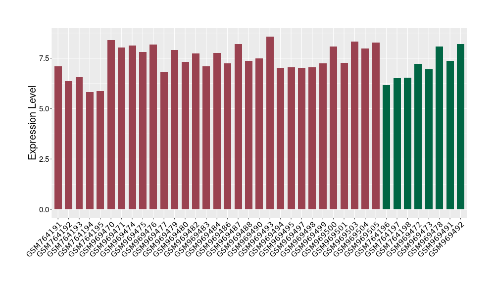 | The Expression Level of Disease Section Compare with the Healthy Individual Tissue | p-value:0.000634175; Fold-change:-0.987519728; Z-score:-1.453786598 | ||||