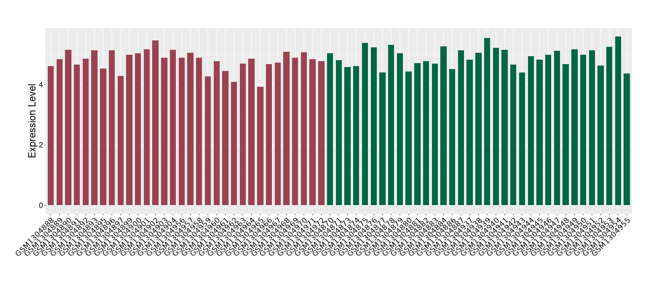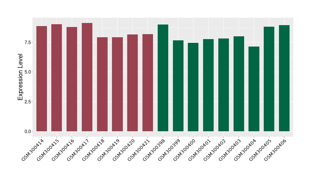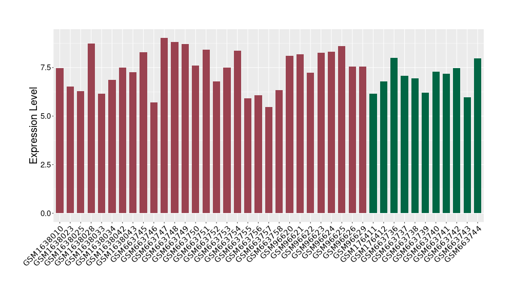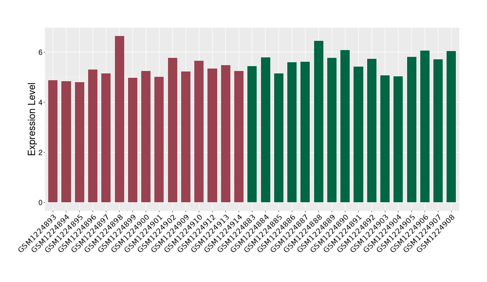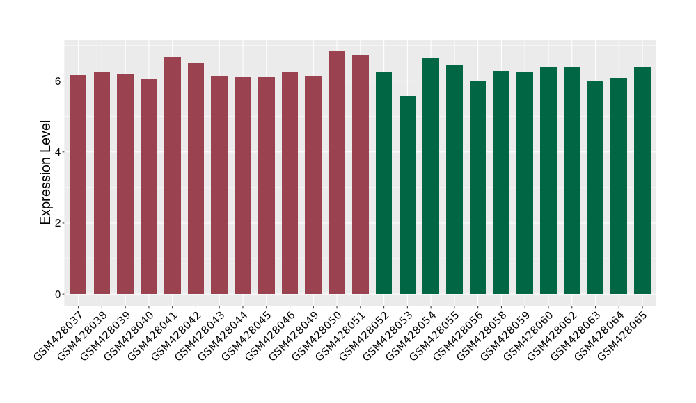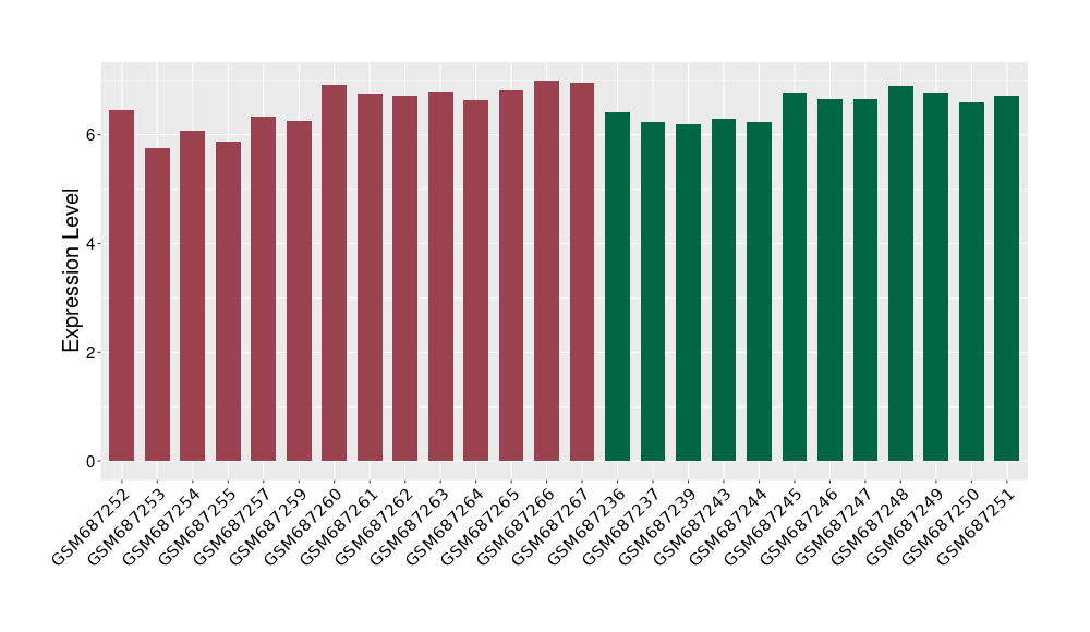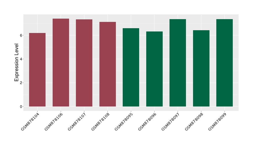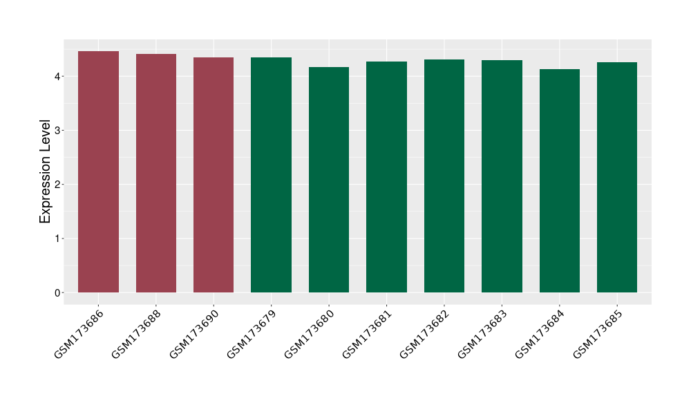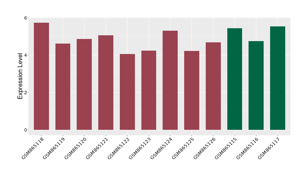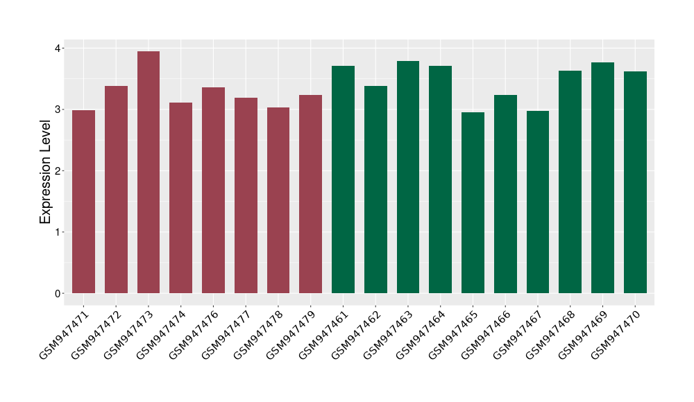 | The Expression Level of Disease Section Compare with the Healthy Individual Tissue | p-value:0.000634175; Fold-change:-0.987519728; Z-score:-1.453786598 | ||||
