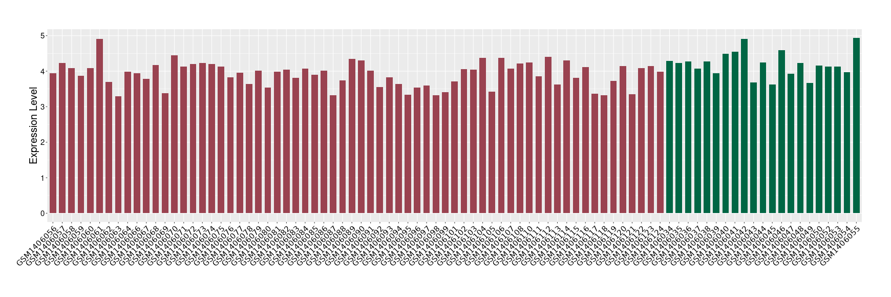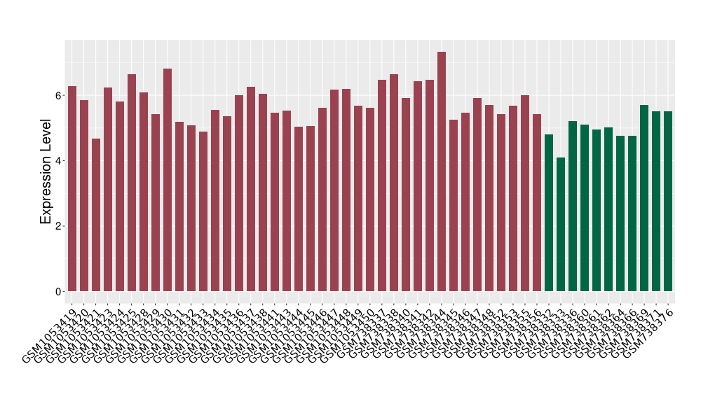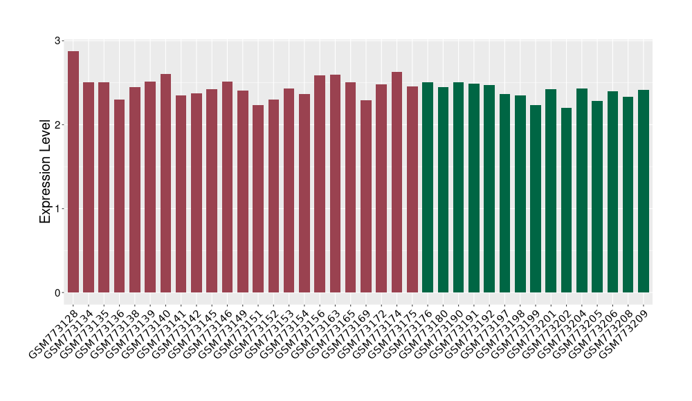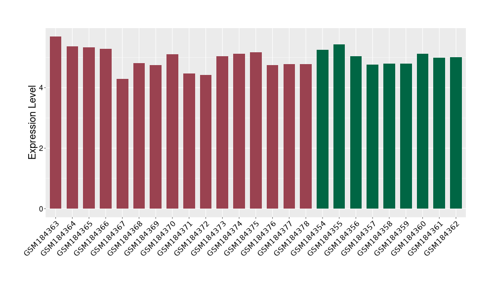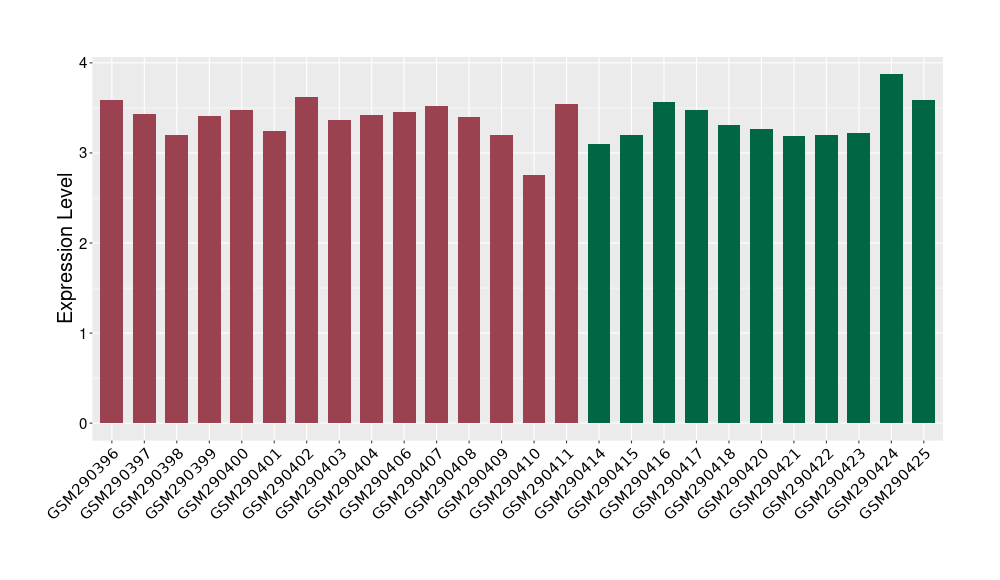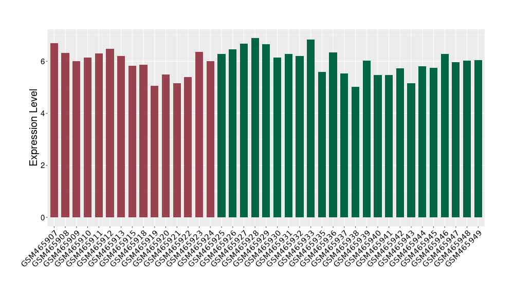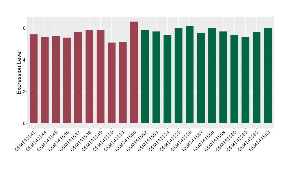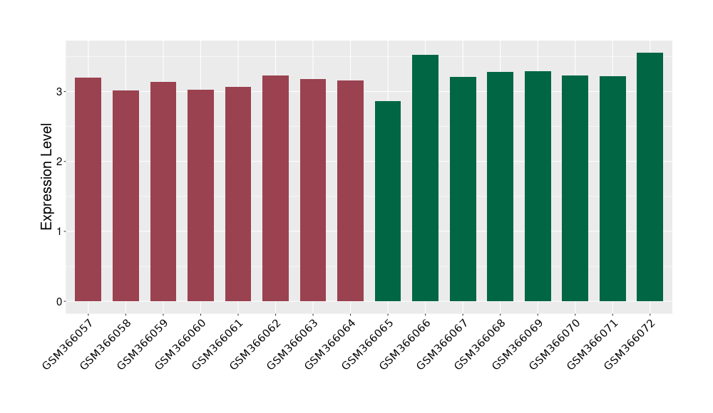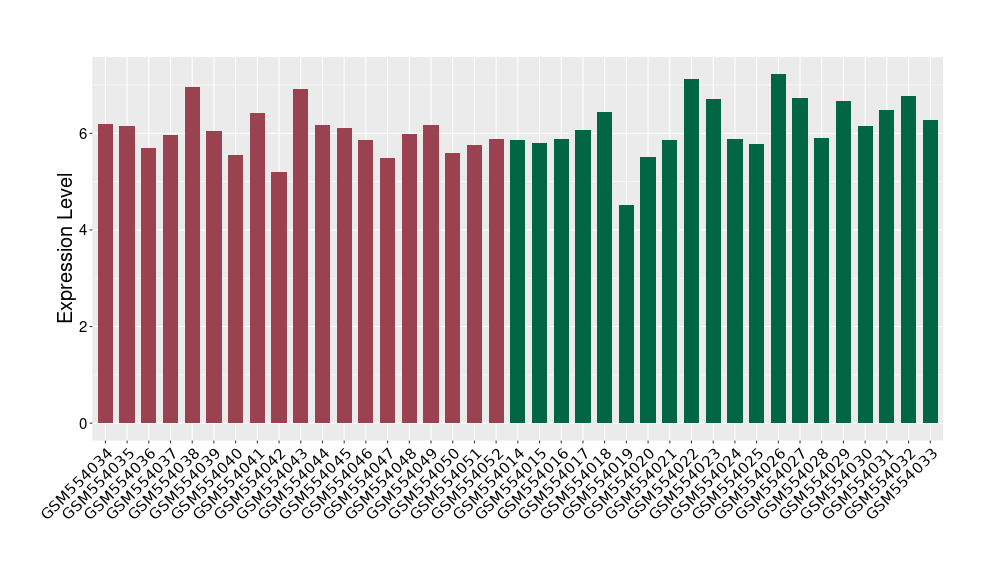 | The Expression Level of Disease Section Compare with the Healthy Individual Tissue | p-value:0.000634175; Fold-change:-0.987519728; Z-score:-1.453786598 | ||||
