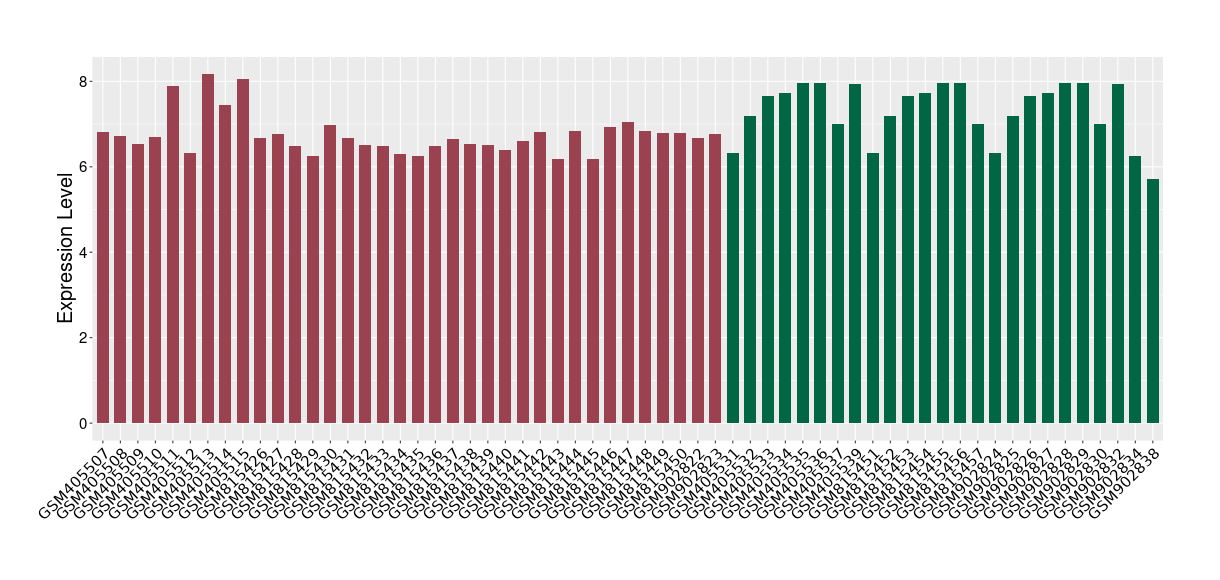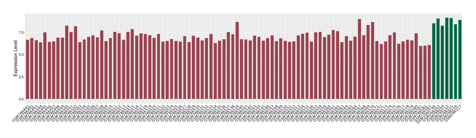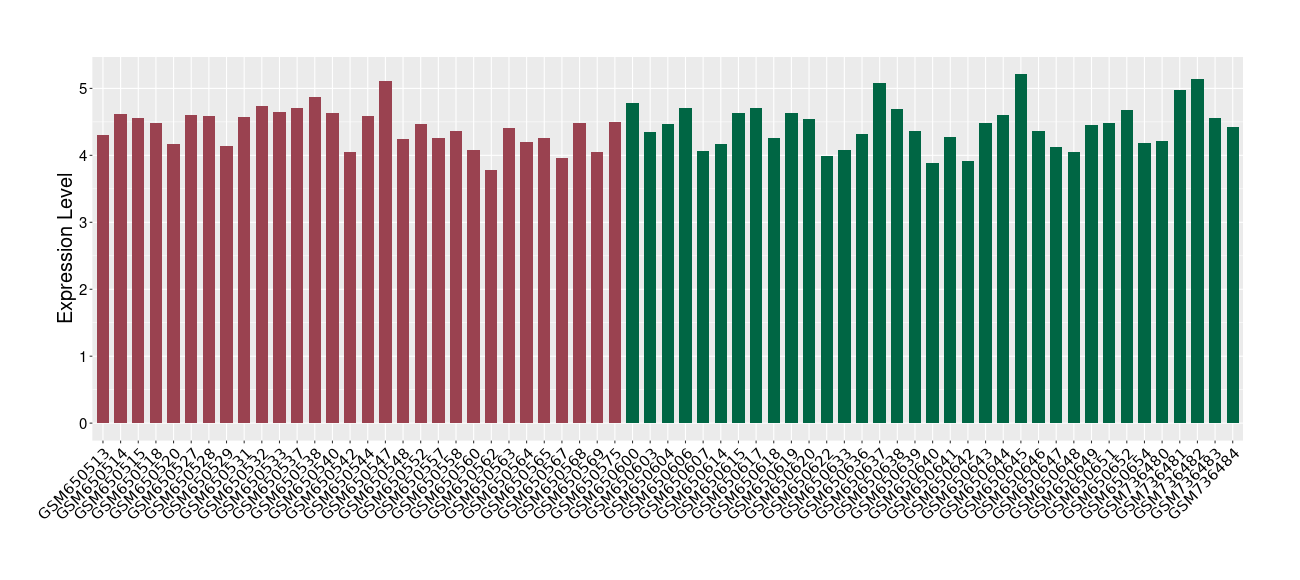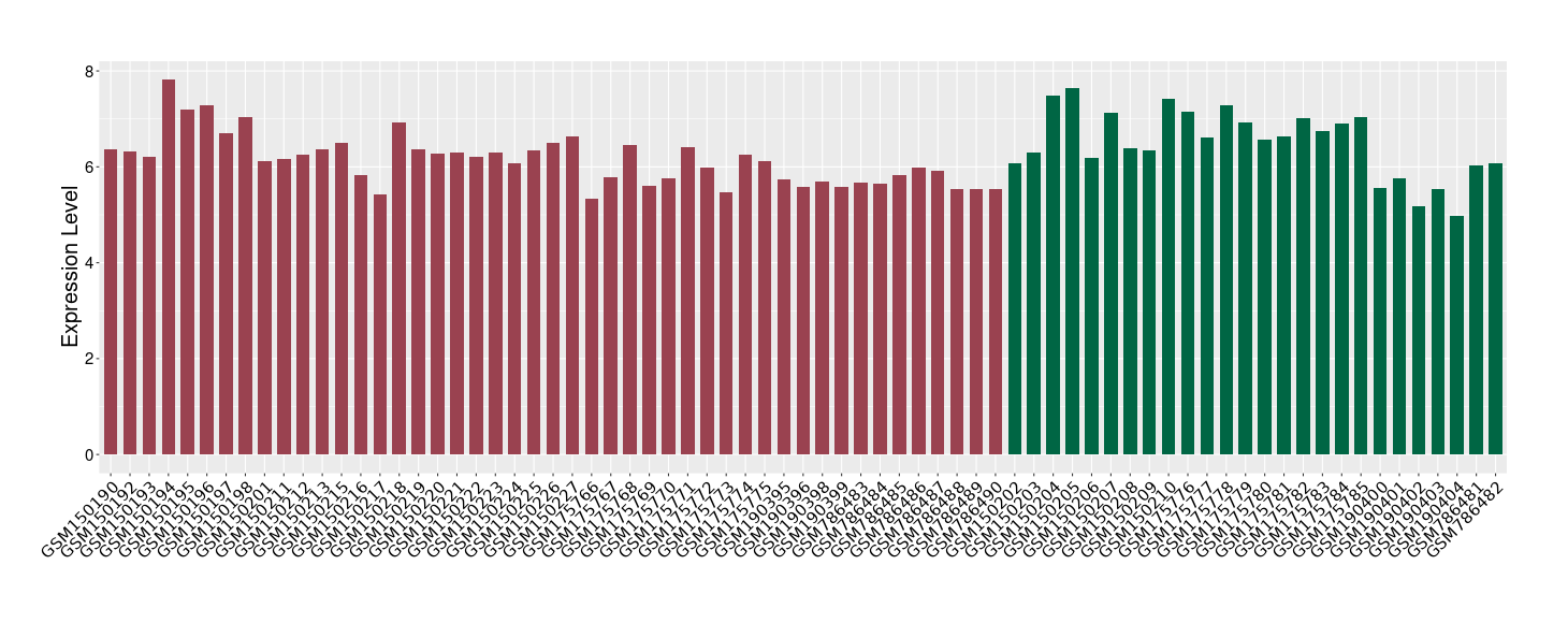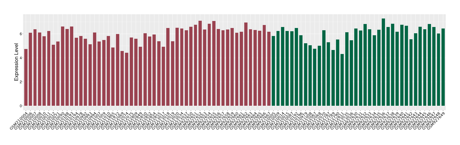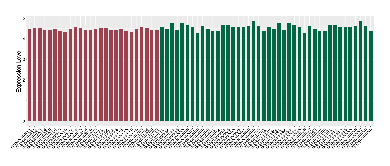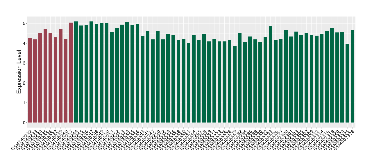 | The Expression Level of Disease Section Compare with the Healthy Individual Tissue | p-value:0.000634175; Fold-change:-0.987519728; Z-score:-1.453786598 | ||||