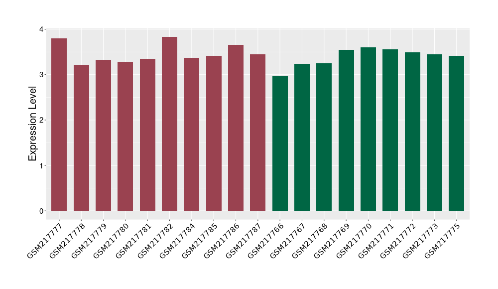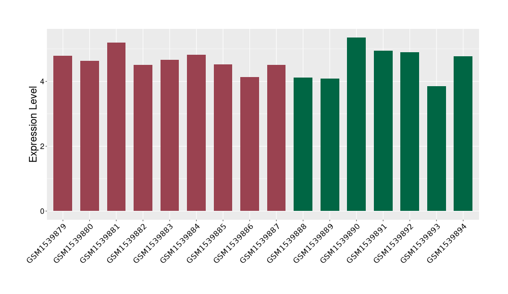 | The Expression Level of Disease Section Compare with the Healthy Individual Tissue | p-value:0.183755598; Fold-change:-0.772117672; Z-score:-1.768370954 | ||||