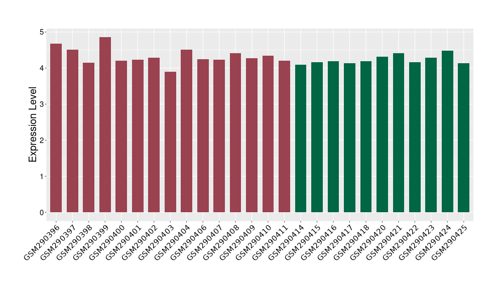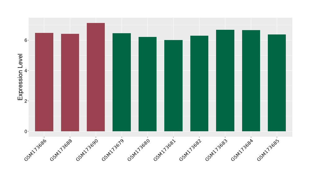 The Expression Level of Disease Section Compare with the Healthy Individual Tissue | p-value:0.172445959; Fold-change:-0.036443981; Z-score:-0.39682659 | ||||